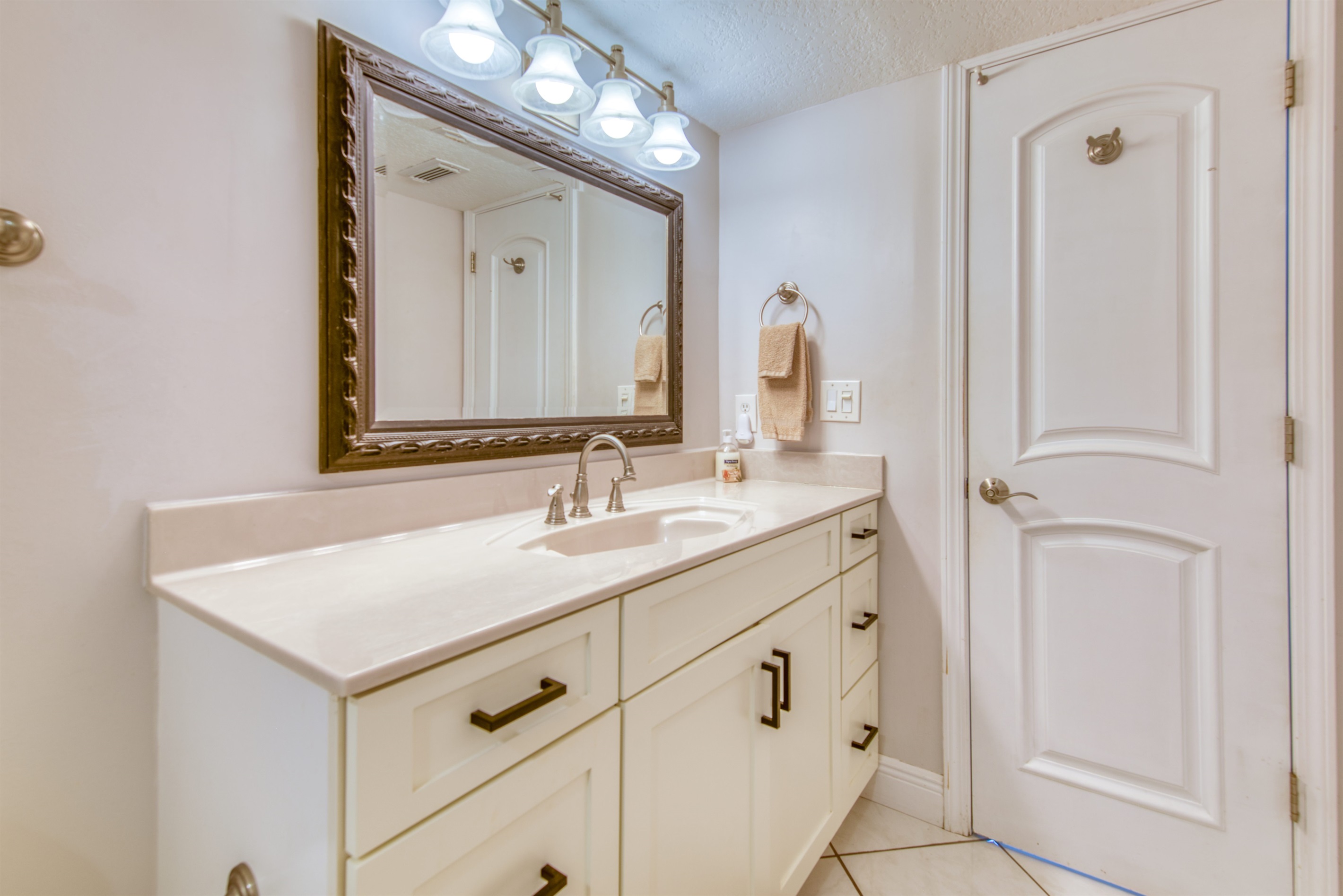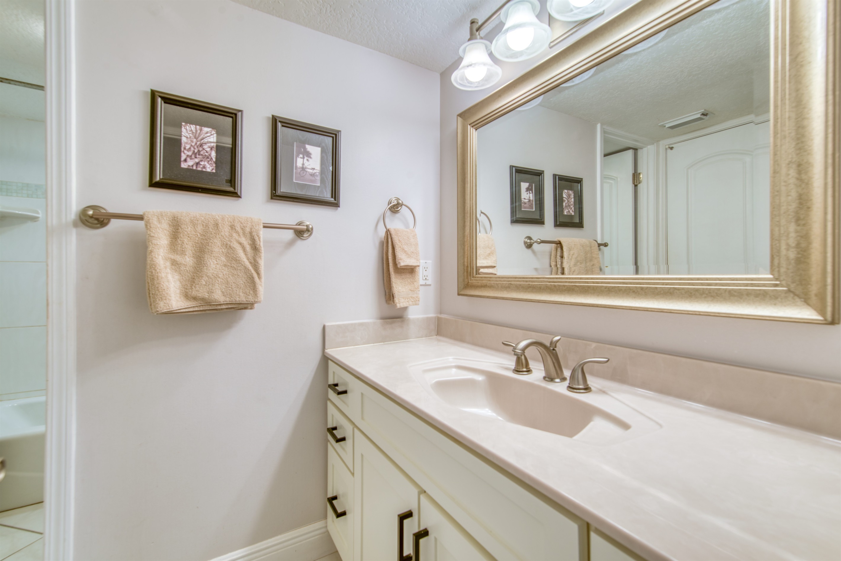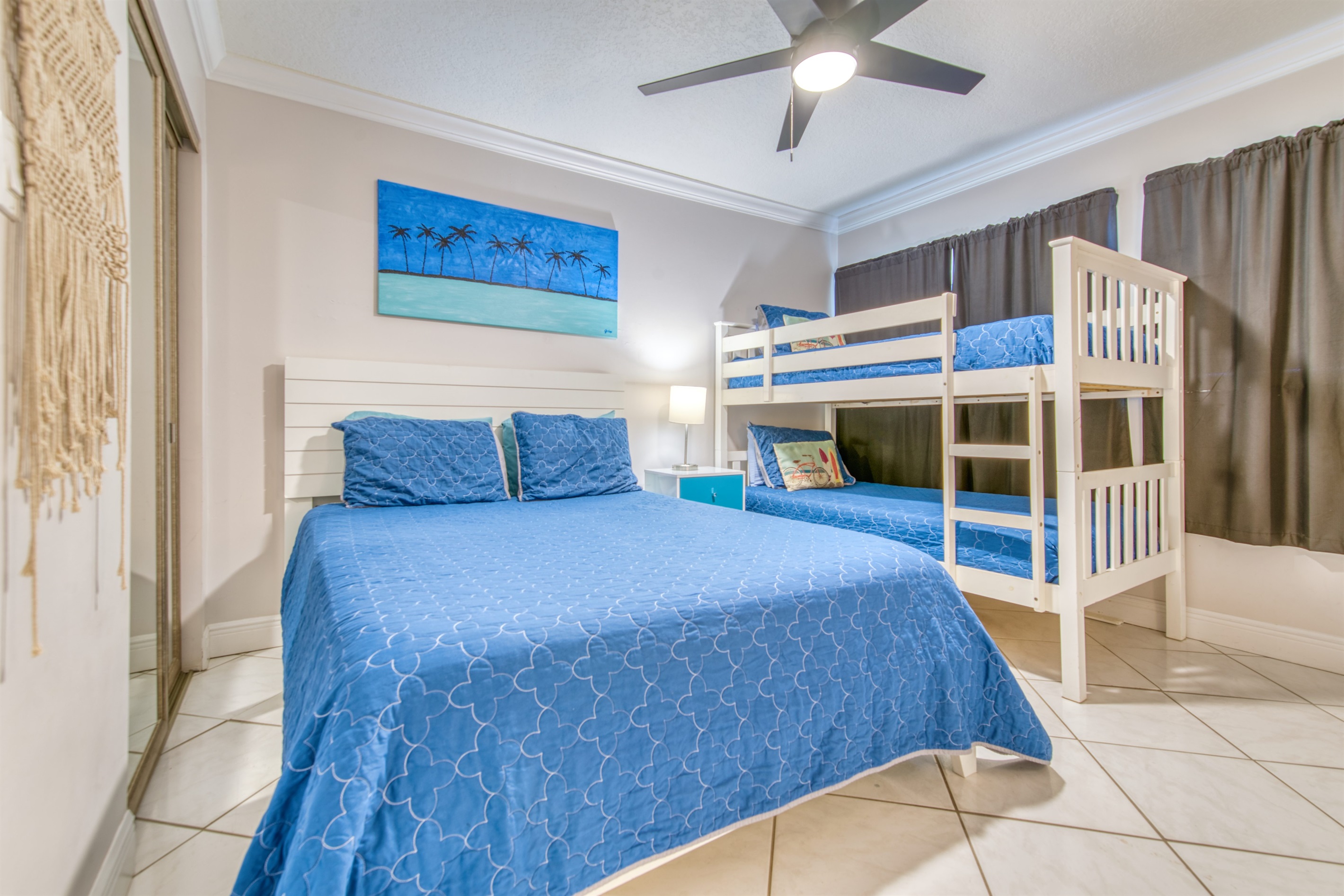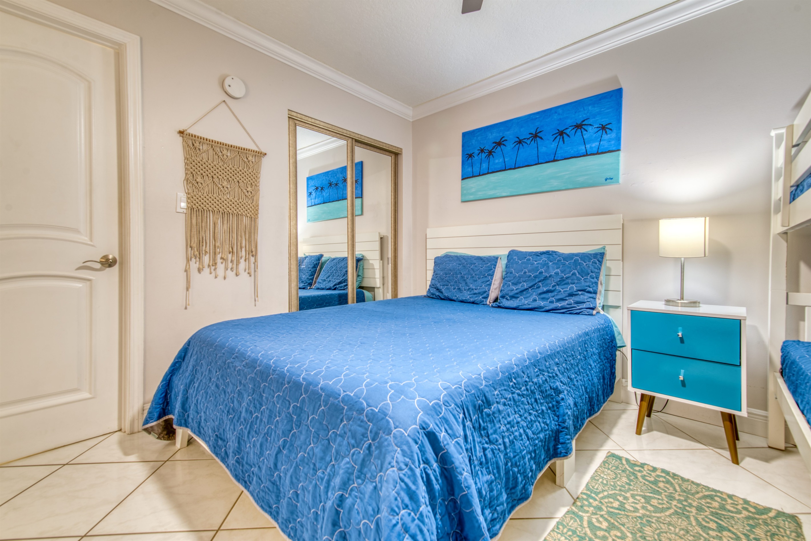 This condo can conveniently accommodate a party of 8. The master bedroom has a king-sized bed that comfortably sleeps 2, as well as a private, full bathroom attached to it. The guest bedroom has 1 queen size bed and 1 bunk bed along with an attached full bathroom that is also accessible from the living room area. The living room is equipped with plenty of comfortable seating for lounging and relaxing throughout the day during your breaks from the beach, as well as a pull-out sleeper sofa bed that can comfortably sleep 2. The total sleeping accommodations for this condo is 8 guests.