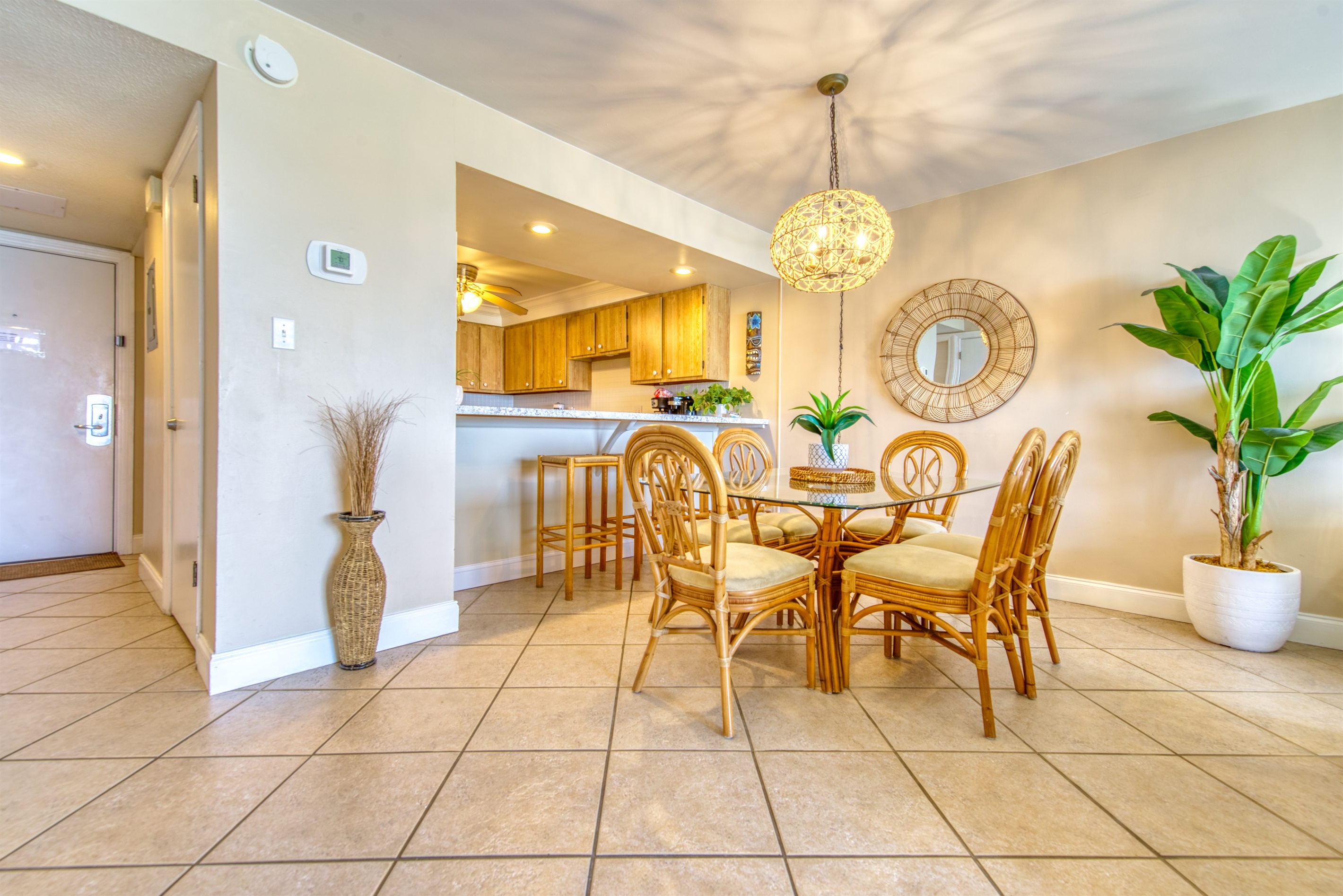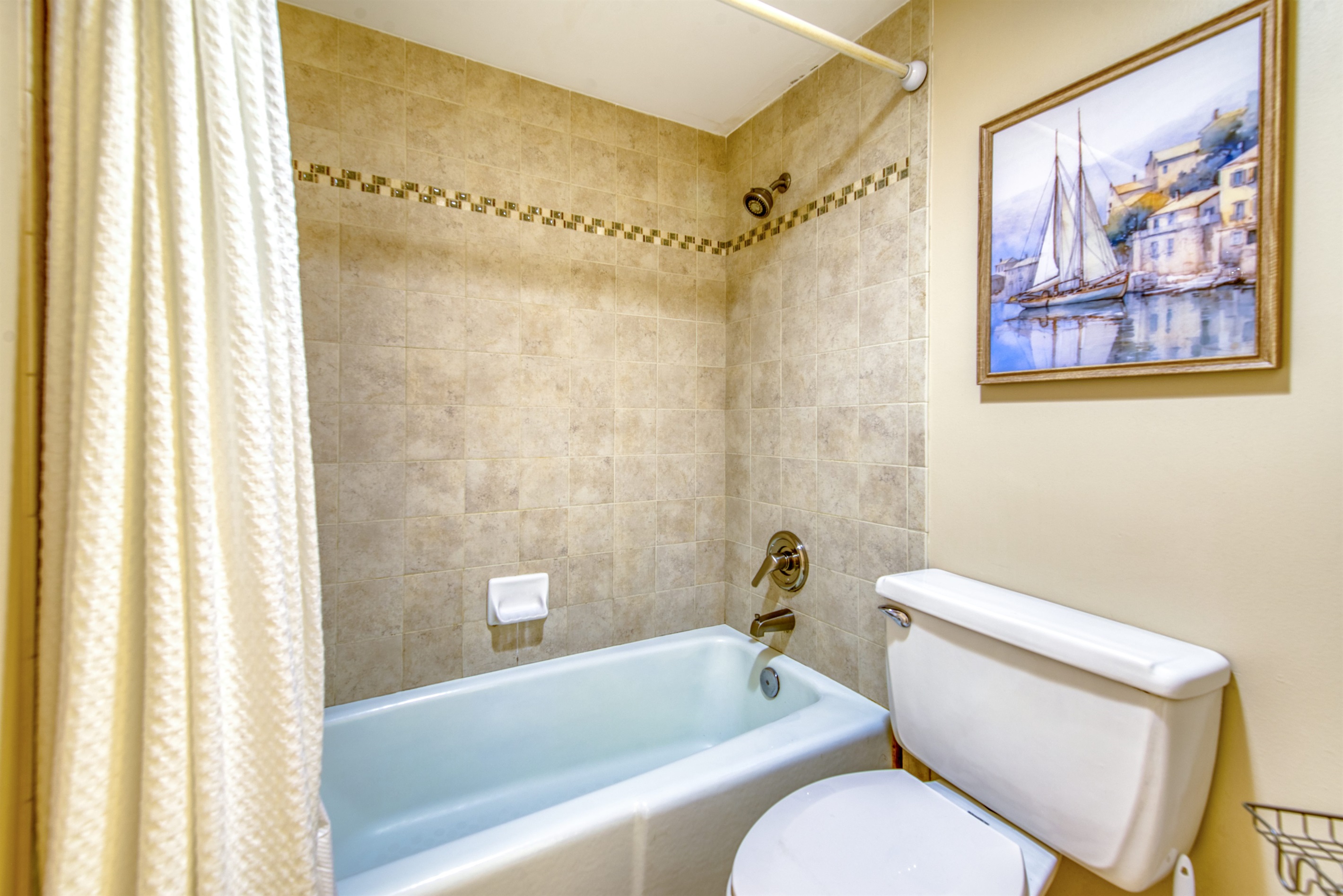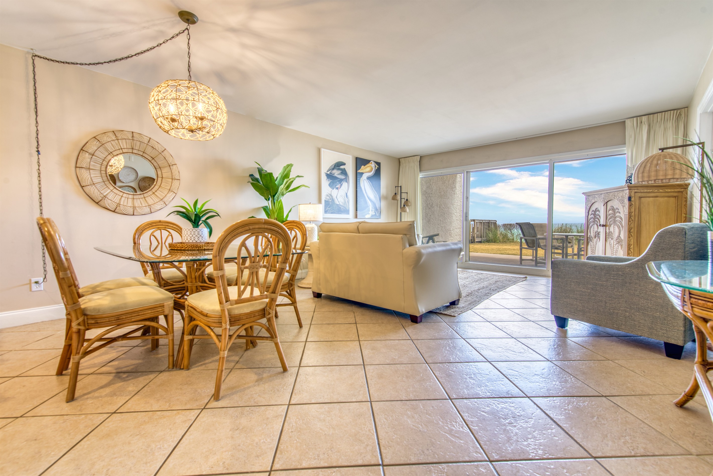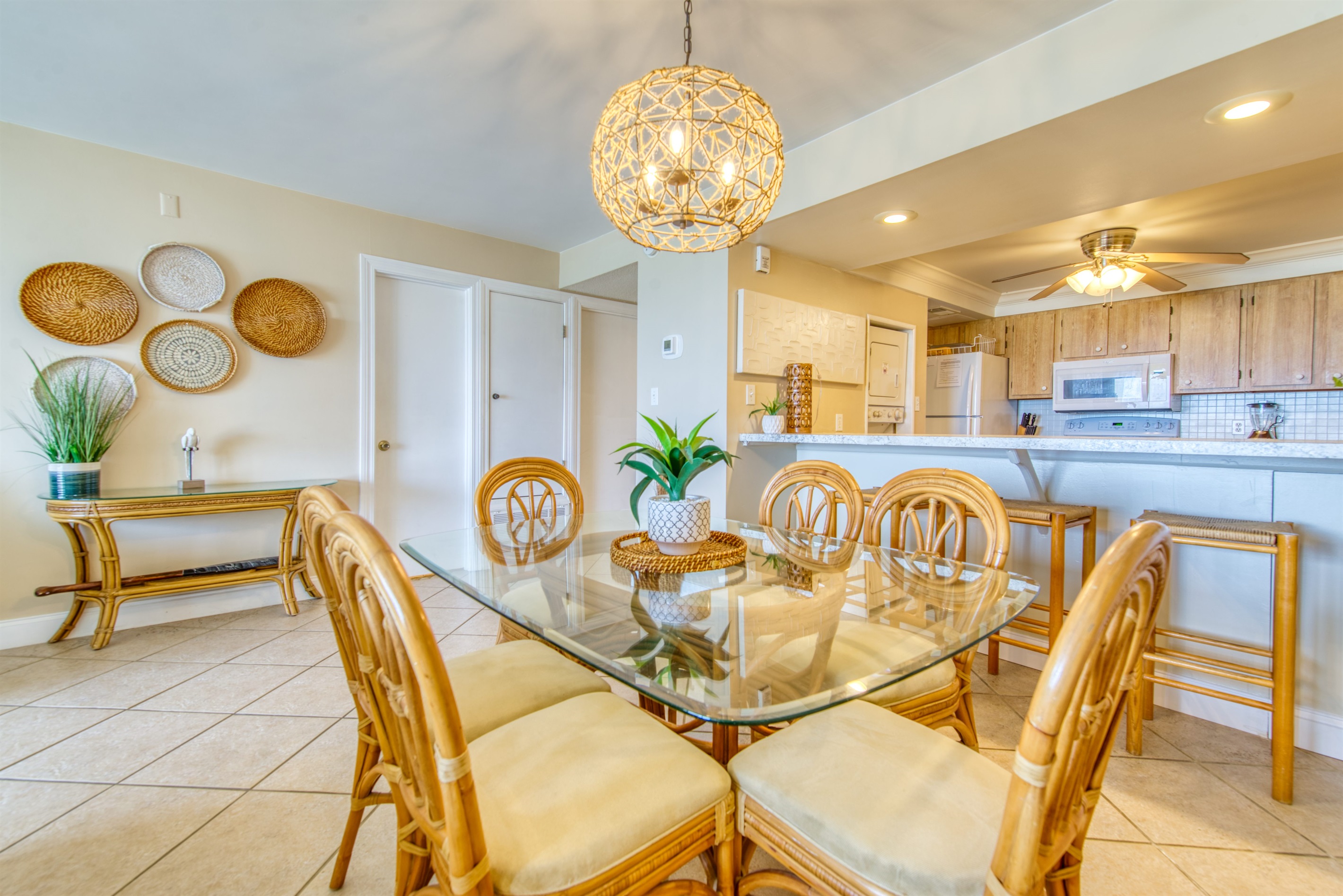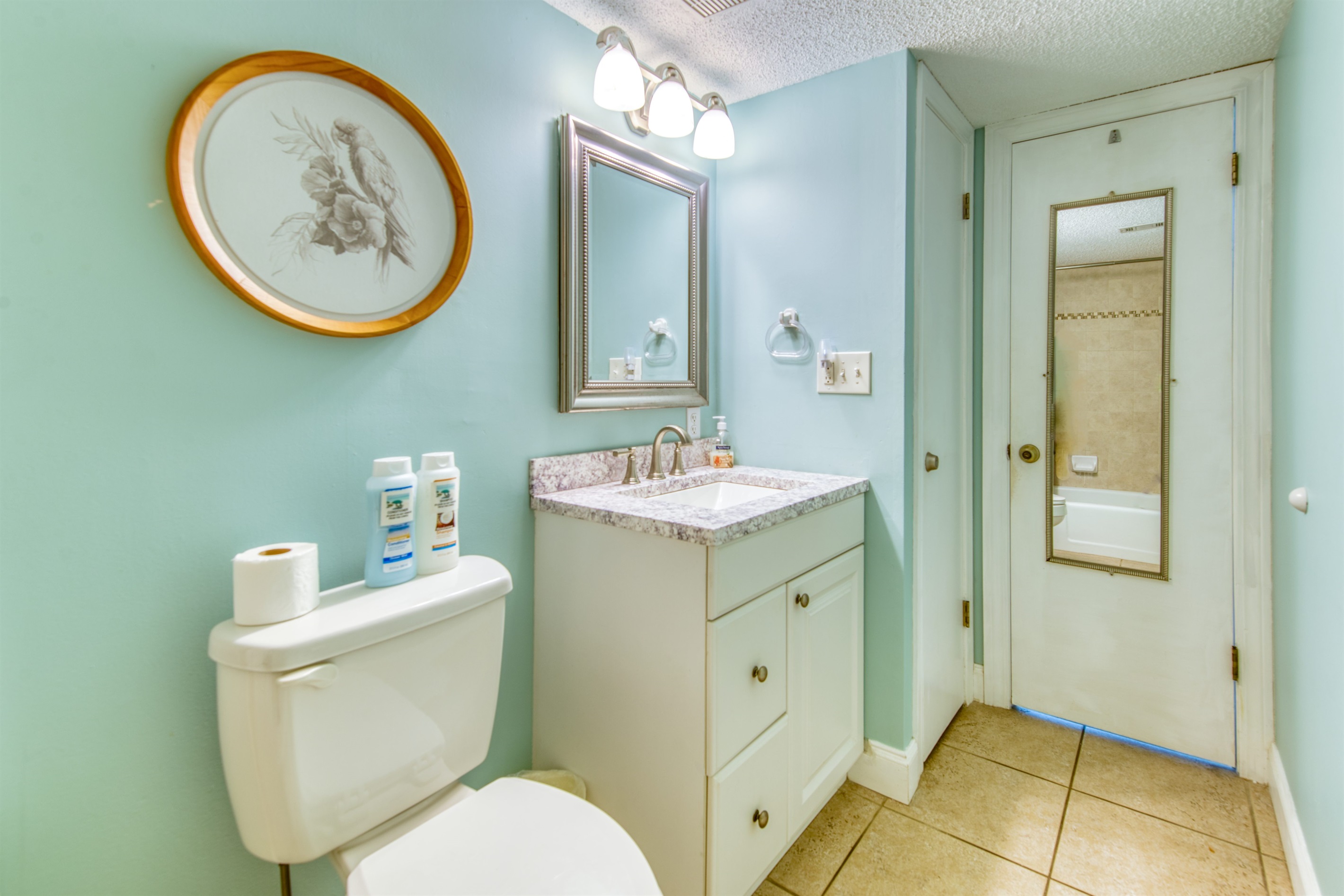 This condo can conveniently accommodate a party of 7. The master bedroom has a king-sized bed that comfortably sleeps 2, as well as a private, full bathroom attached to it. The guest bedroom has 1 queen size bed and 1 twin bed along with an attached full bathroom that is also accessible from the living room area. The living room is equipped with plenty of comfortable seating for lounging and relaxing throughout the day during your breaks from the beach, as well as a pull-out sleeper sofa bed that can comfortably sleep 2. The total sleeping accommodations for this condo is 7 guests.