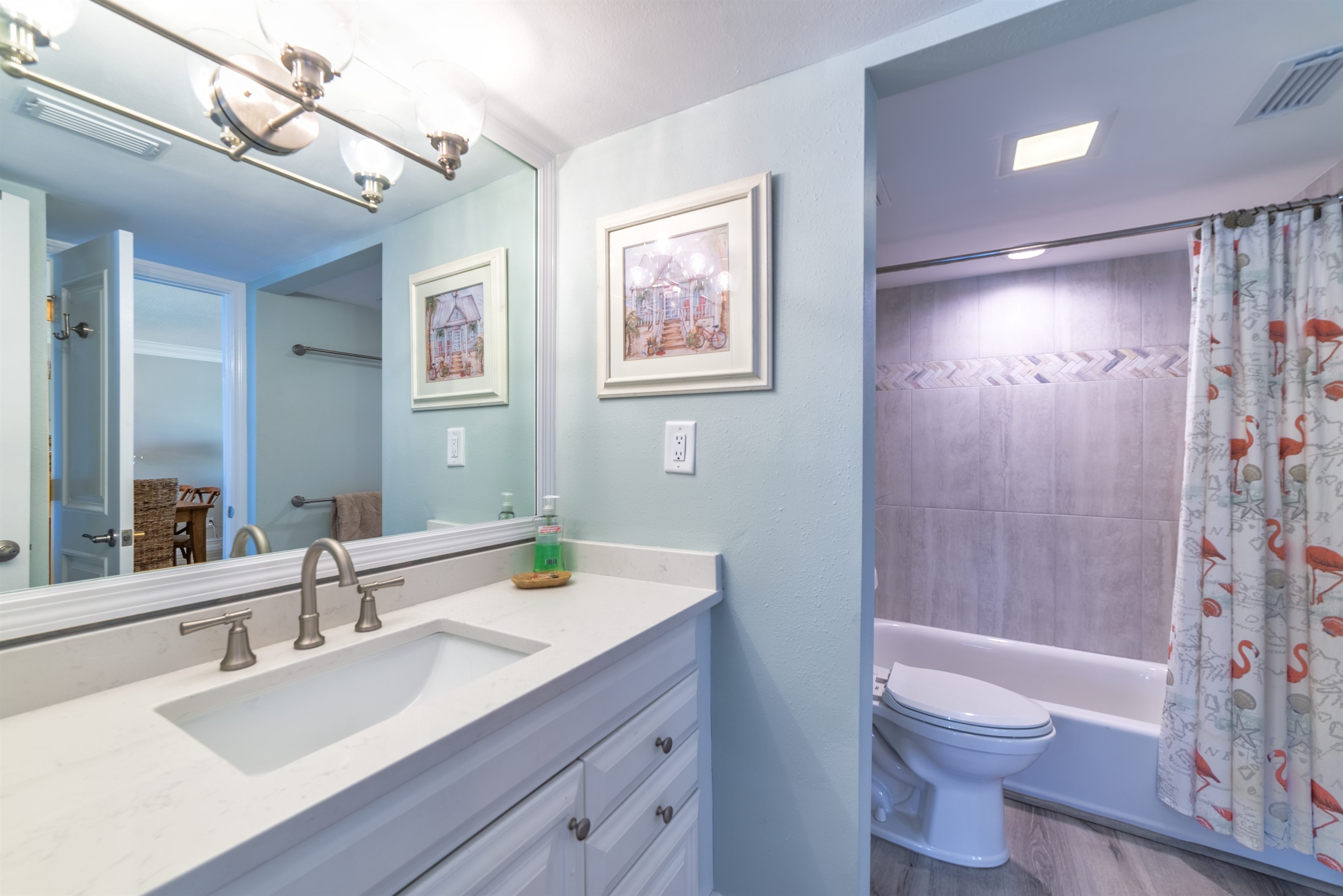 This condo can conveniently accommodate a party of 6. The master bedroom has a king-sized bed that comfortably sleeps 2, as well as a private, full bathroom attached to it. The guest bedroom has 1 king size bed along with an attached full bathroom that is also accessible from the living room area. The living room is equipped with plenty of comfortable seating for lounging and relaxing throughout the day during your breaks from the beach, as well as a pull-out sleeper sofa bed that can comfortably sleep 2. The total sleeping accommodations for this condo is 6 guests.