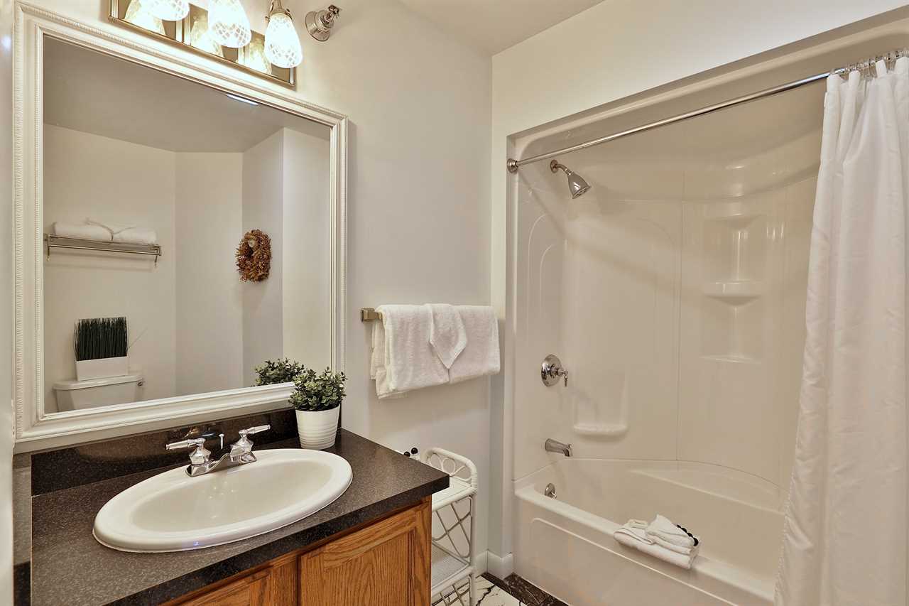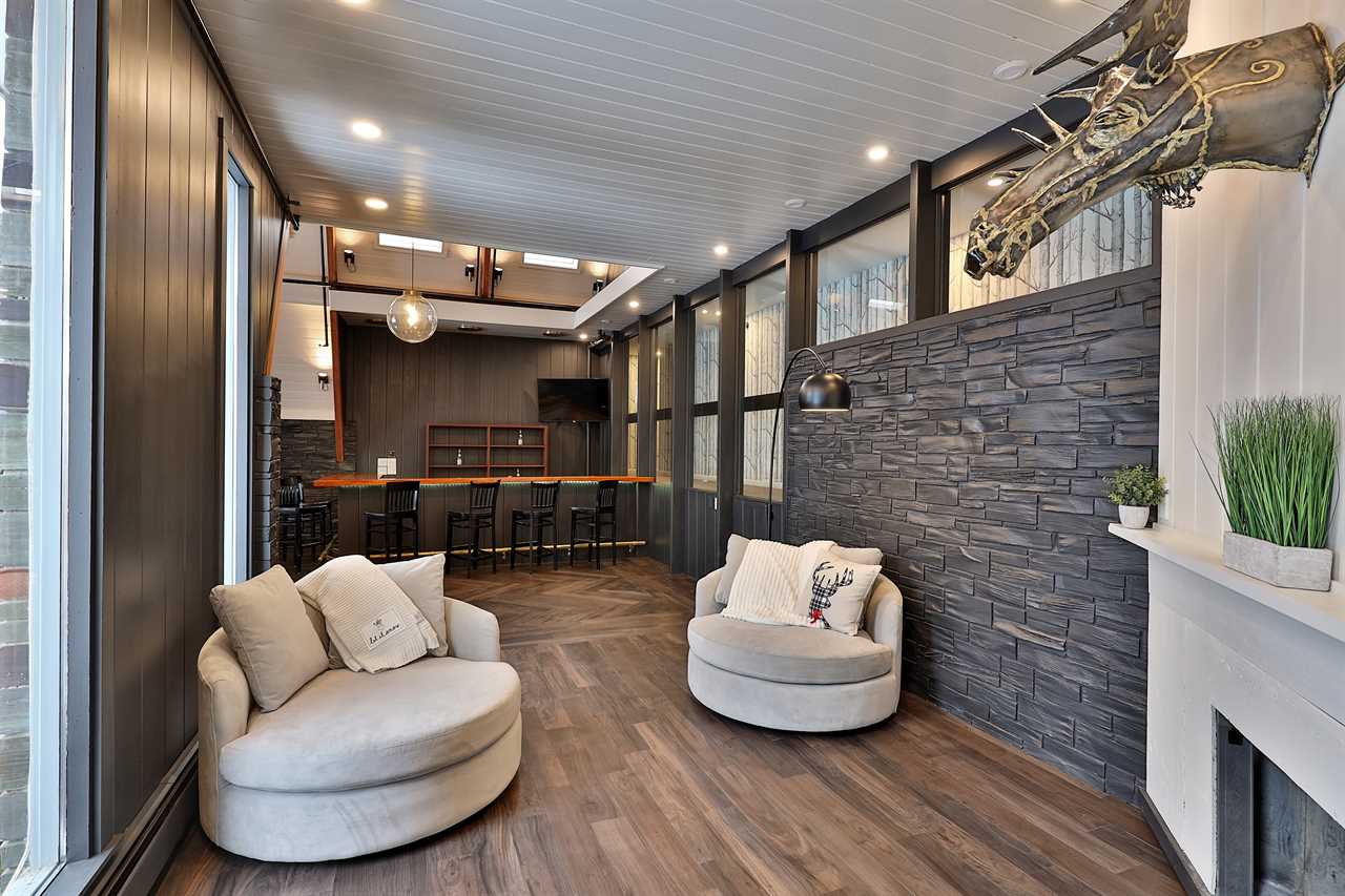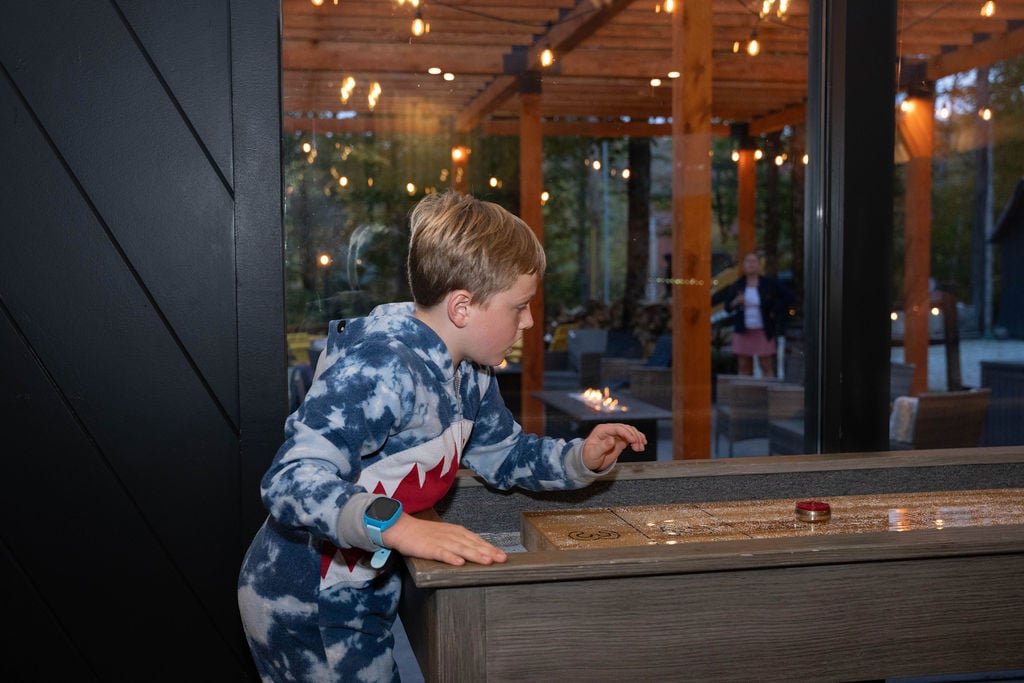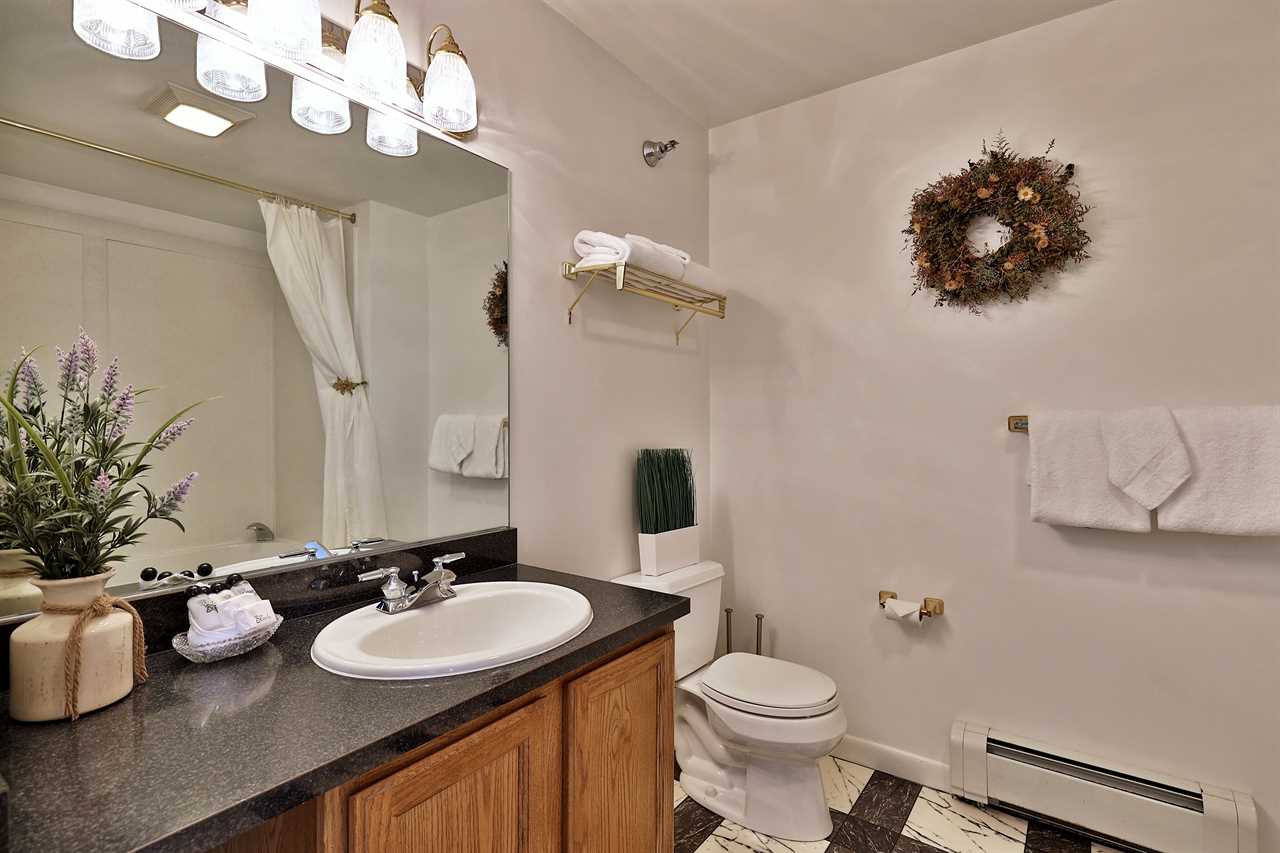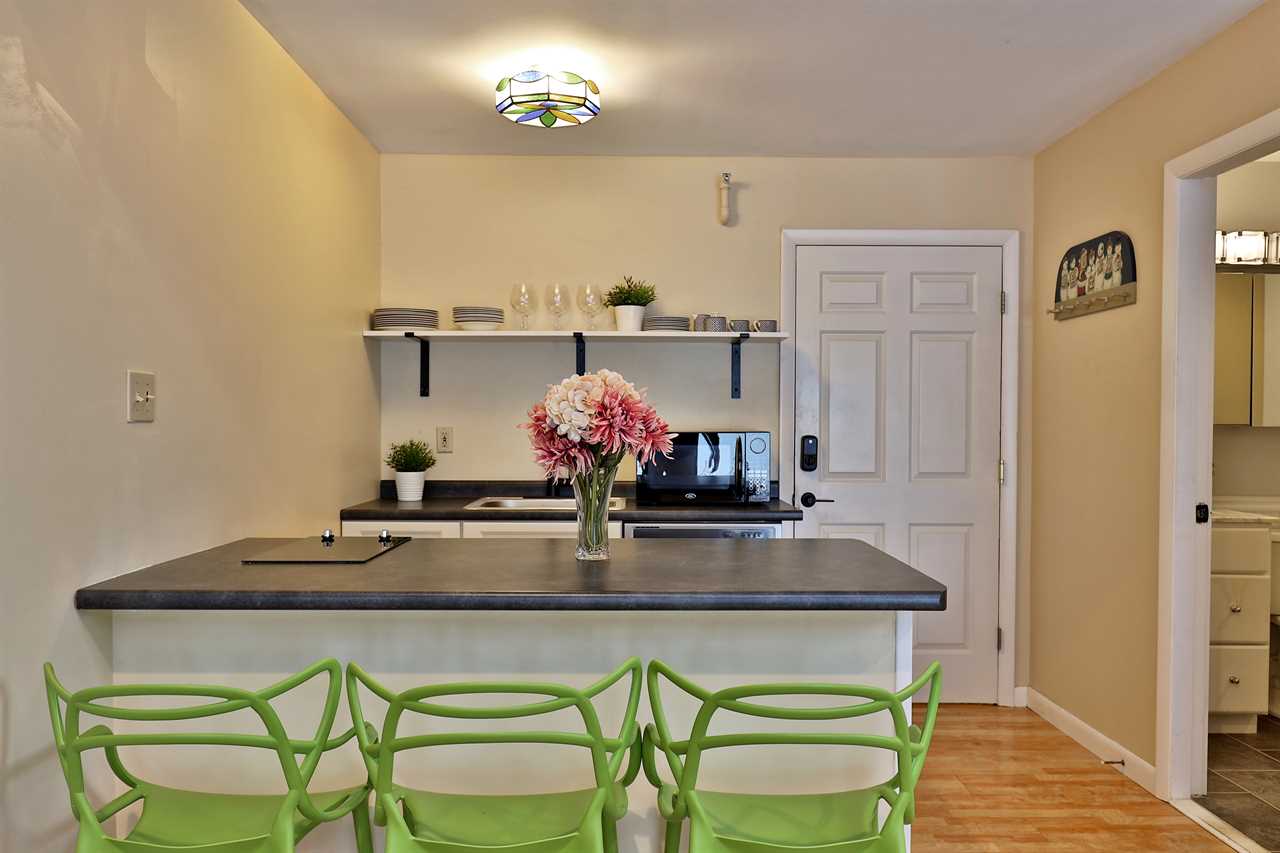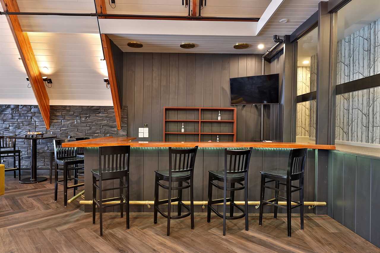 The Birch Ridge common areas were renovated in Winter 2023 and feature an amazing A-frame Great Room with full bar area, 12' shuffleboard table, coffee station with Keurig machines, microwave, water cooler, beautiful gas fireplace, streaming TV, receiver with surround speakers, high-top tables, comfy sofas, swivel chairs and bar stools. There's plenty of room for your entire group to gather together after a day on the slopes and create your own bar scene! The entryway is the perfect place to take off your boots and hang your coats, while our outside ski storage provides a safe spot to store your gear. The sitting area provides another small gathering place with streaming TV and games, plus a half bathroom. An elevator provides accessible access to the second floor should you need it (key required). Behind the bar, you have a True bar back refrigerator with lots of room for beverages or snacks, second beverage cooler, dishwasher (coming soon), bar sink, wash basin and glassware. You can also get all the ice you need from our commercial ice machine. Outside is our new patio complete with lots of outdoor seating, fire tables and gorgeous mountain views.