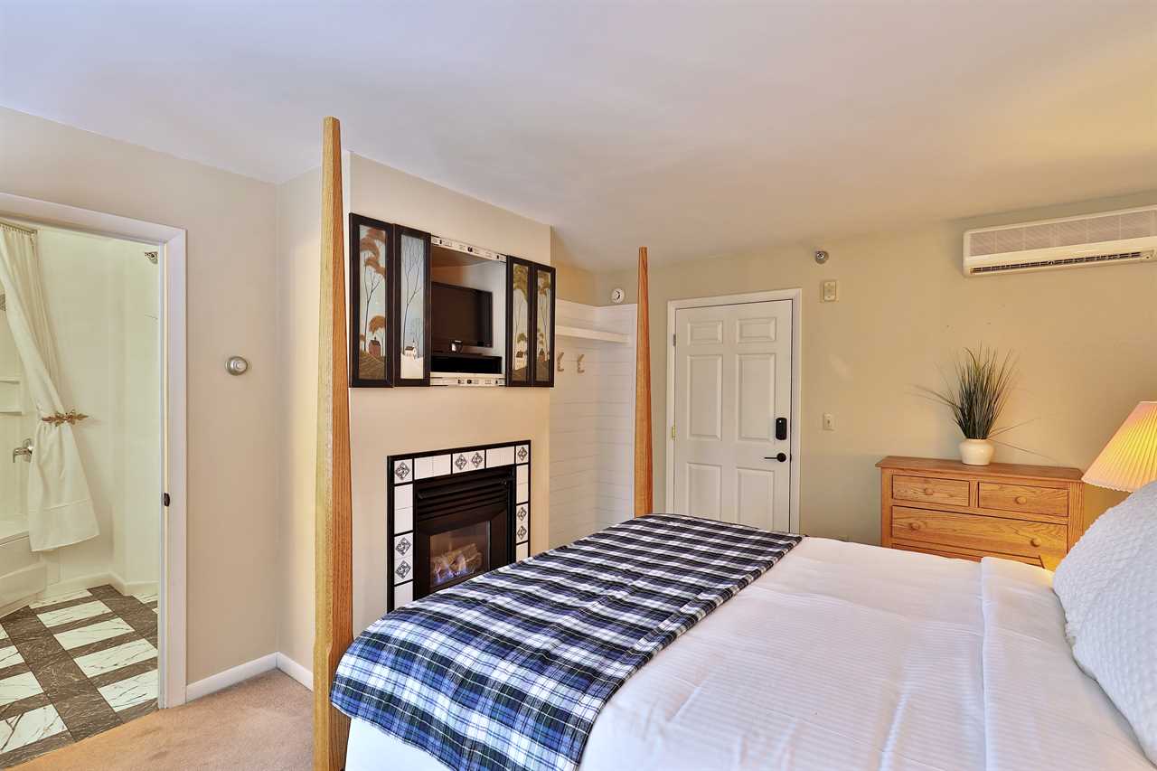 Room 9: king bed; ensuite bathroom with combo jacuzzi tub/shower; gas fireplace; mini-split AC (sleeps 2)
