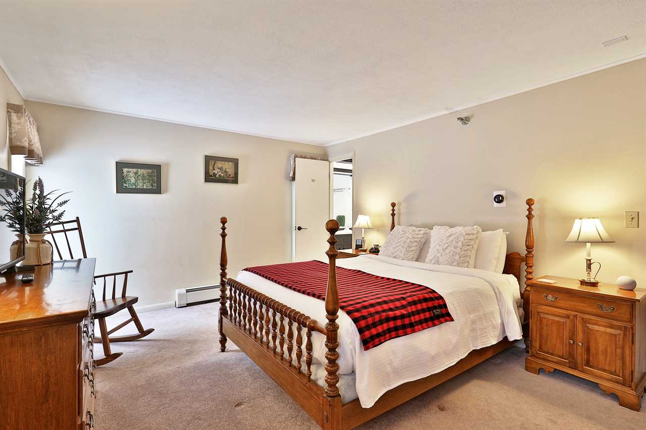 Take over the Inn! The Birch Ridge is available for your group or family to rent as one entire ski lodge, offering a truly private Killington experience. The inn sleeps up to 28 guests across 11 rooms, all with ensuite bathrooms, with some rooms featuring gas fireplaces and jacuzzi tubs. Most rooms offer a king or queen bed, along with two family rooms that include queen beds and twin over full bunk beds, plus a two level loft suite with a queen bed, sofa bed, and kitchenette. In addition to the guest rooms, you will have full use of the house, including a beautifully renovated A frame Great Room with lounge and bar, a dining room with a pool table, a large entryway and sitting area with games and a flat screen TV, and one additional half bathroom. The commercial kitchen is available for guest use, or you may hire a private chef who can take over the kitchen and dining room for your stay. Located right on the main road in Killington, the inn is just 1.6 miles from the base area, with an easy walk to Sunup Bakery for breakfast or The Wobbly Barn for dinner and nightlife, and you can even catch the mountain shuttle right on the main road. The charming covered carriageway adds to the Vermont character and doubles as sheltered parking during snowstorms. After a day on the slopes, relax in the outdoor hot tub, perfect for soaking tired muscles. During the spring, summer, and fall, our tented event space next to the property is available to rent separately and includes tables and chairs, and the outdoor patio in front of the Great Room is a great place to unwind around one of our fire tables. You will not forget your stay at The Birch Ridge.