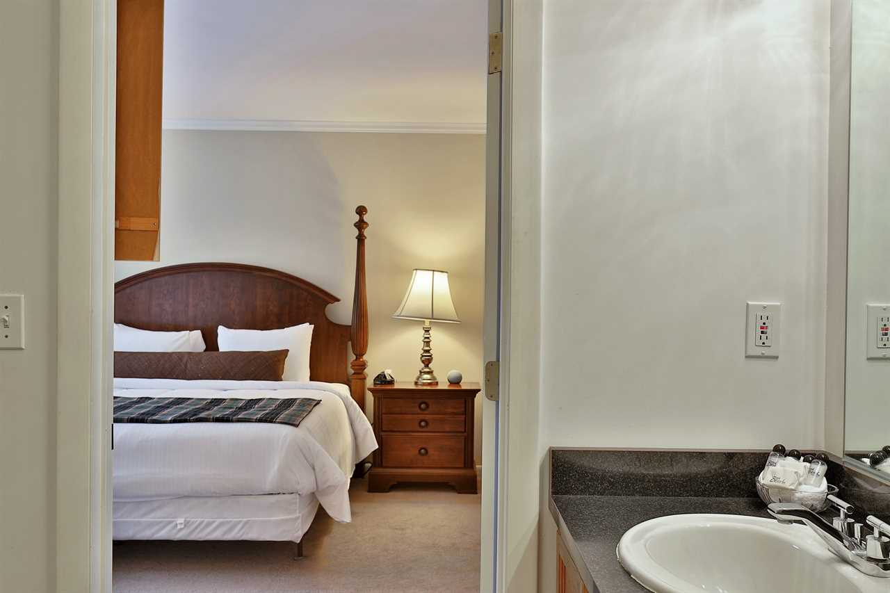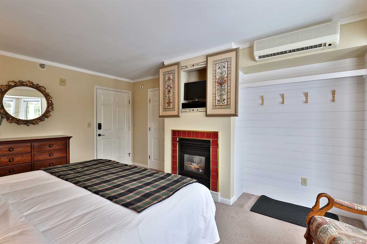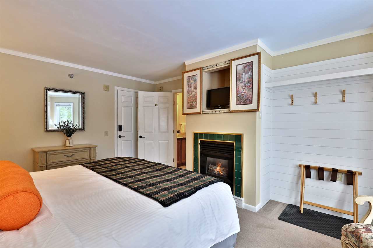 Room 7: king bed; ensuite bathroom with combo tub/shower; gas fireplace; portable AC in summer (sleeps 2)