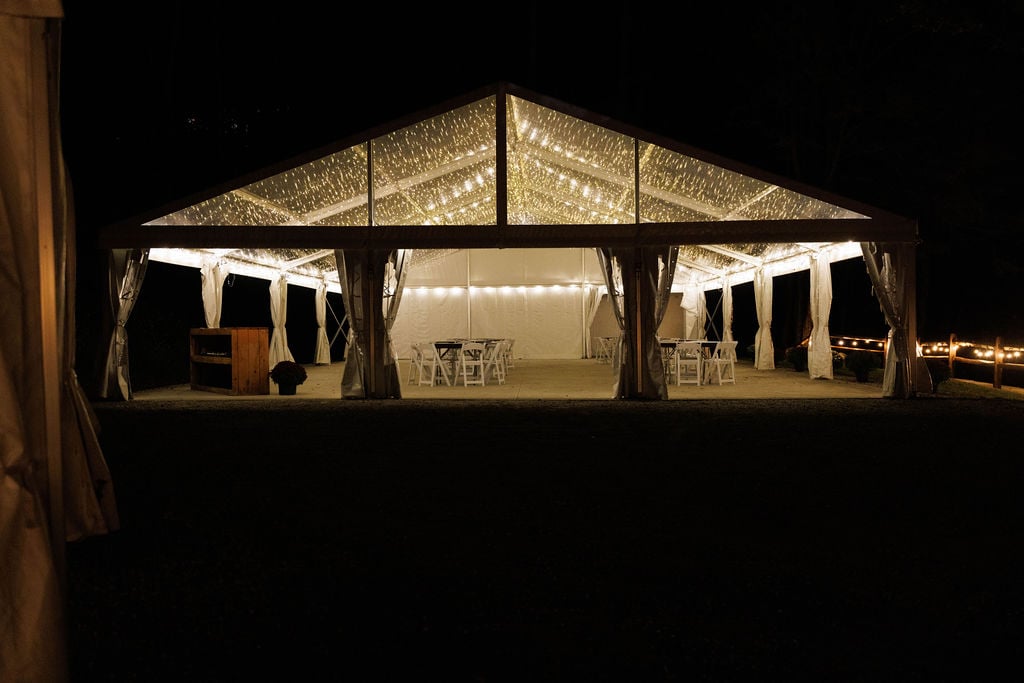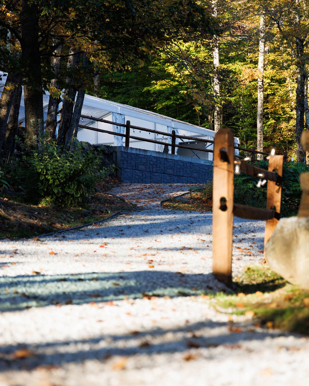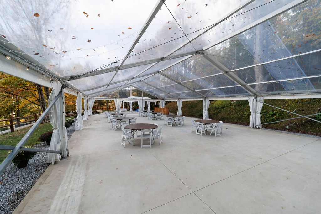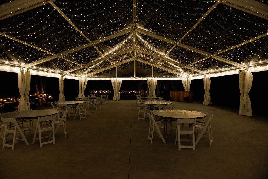 Next to the property is our large tented event space with tables and chairs. This area is available in the spring, summer and fall for an additional rental fee. Please note that a separate event fee applies for any events to be held on property - whether in the event tent or inside the property. Any such events must be disclosed and agreed upon in advance of booking.