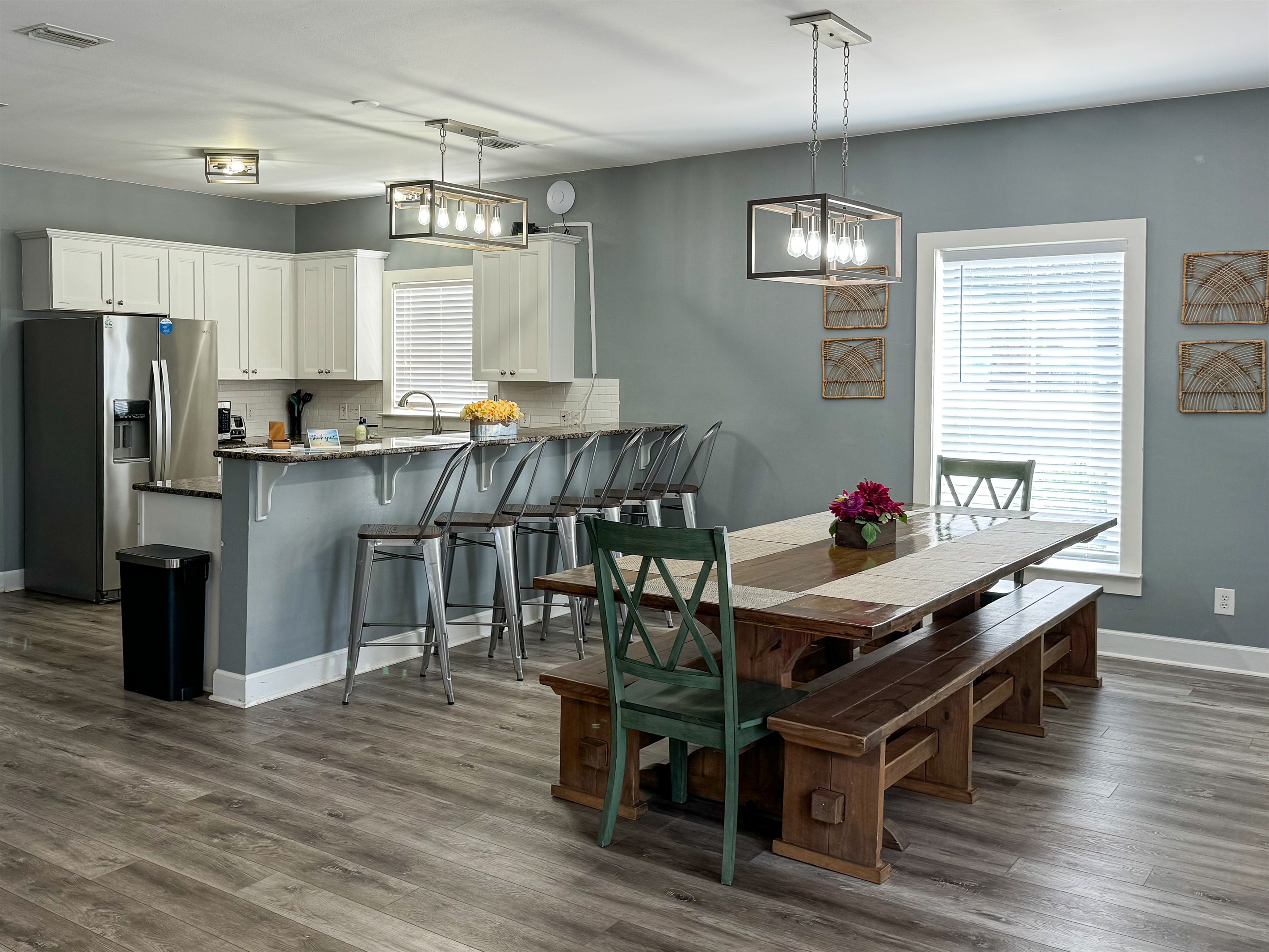 ă»Dining room: seating for 16 at handmade wooden table + counter