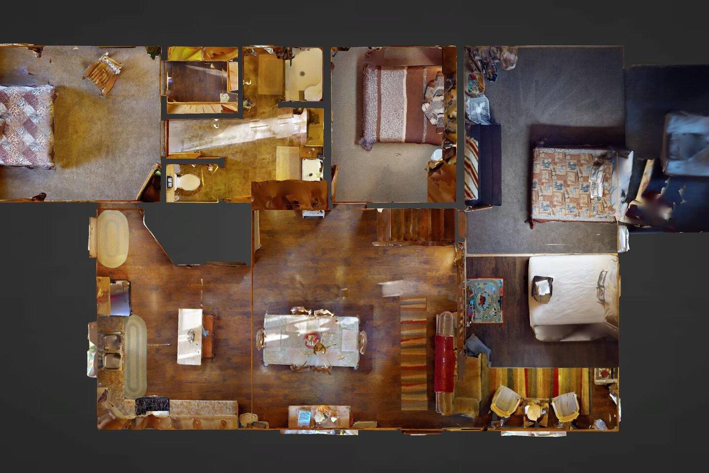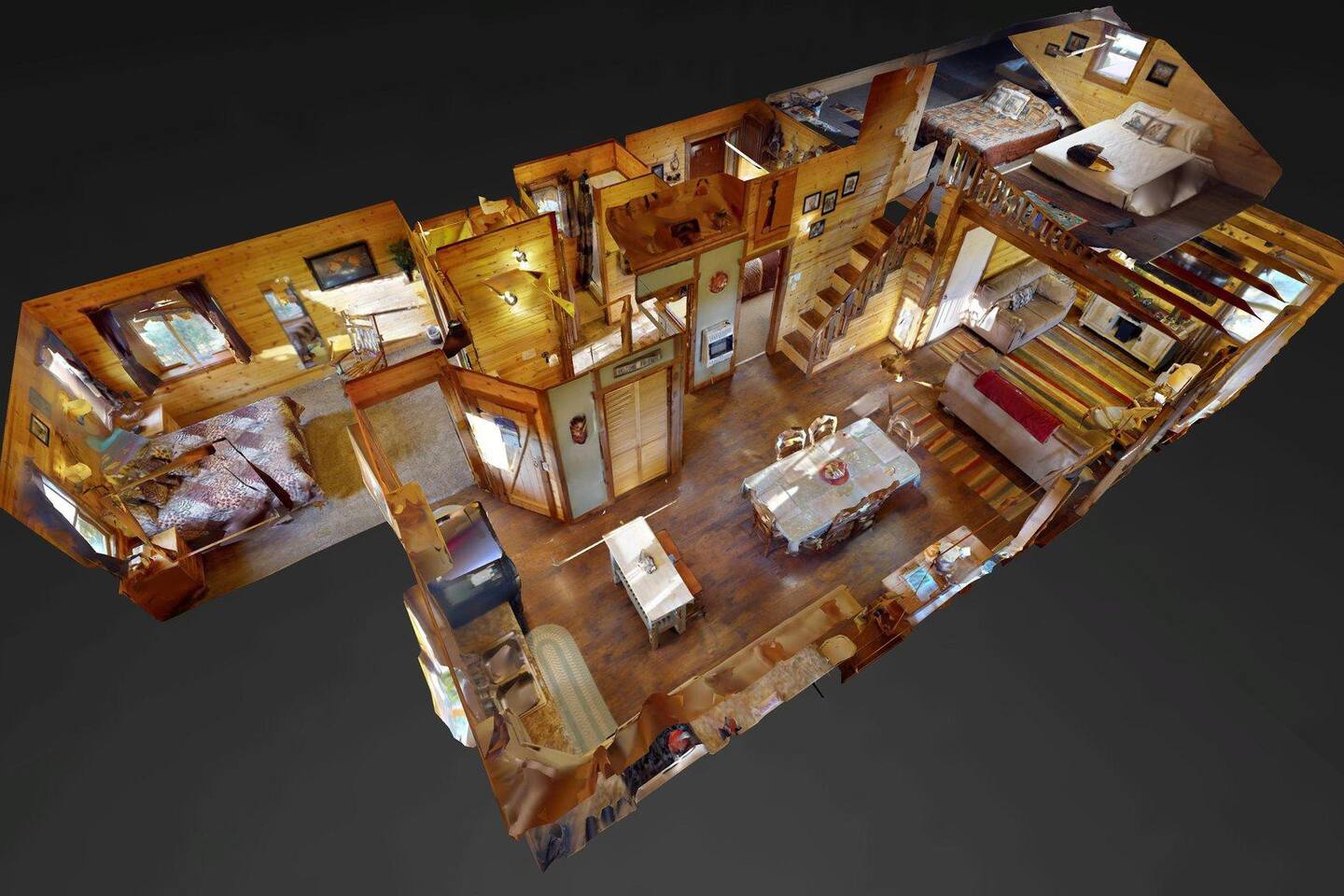 Featuring a spacious main level with Master Suite with a full 3 room bathroom with shower. Also has a full kitchen, dining table, plush sofa, and love seat. The upper-level loft features two queen beds and a full bed. On the main level there is a family room with a big-screen TV and surround sound! And don't forget the extra loft w/ carpet and additional pads for the kids! HDTV w/DVD player, wi-fi, and all linens are provided.