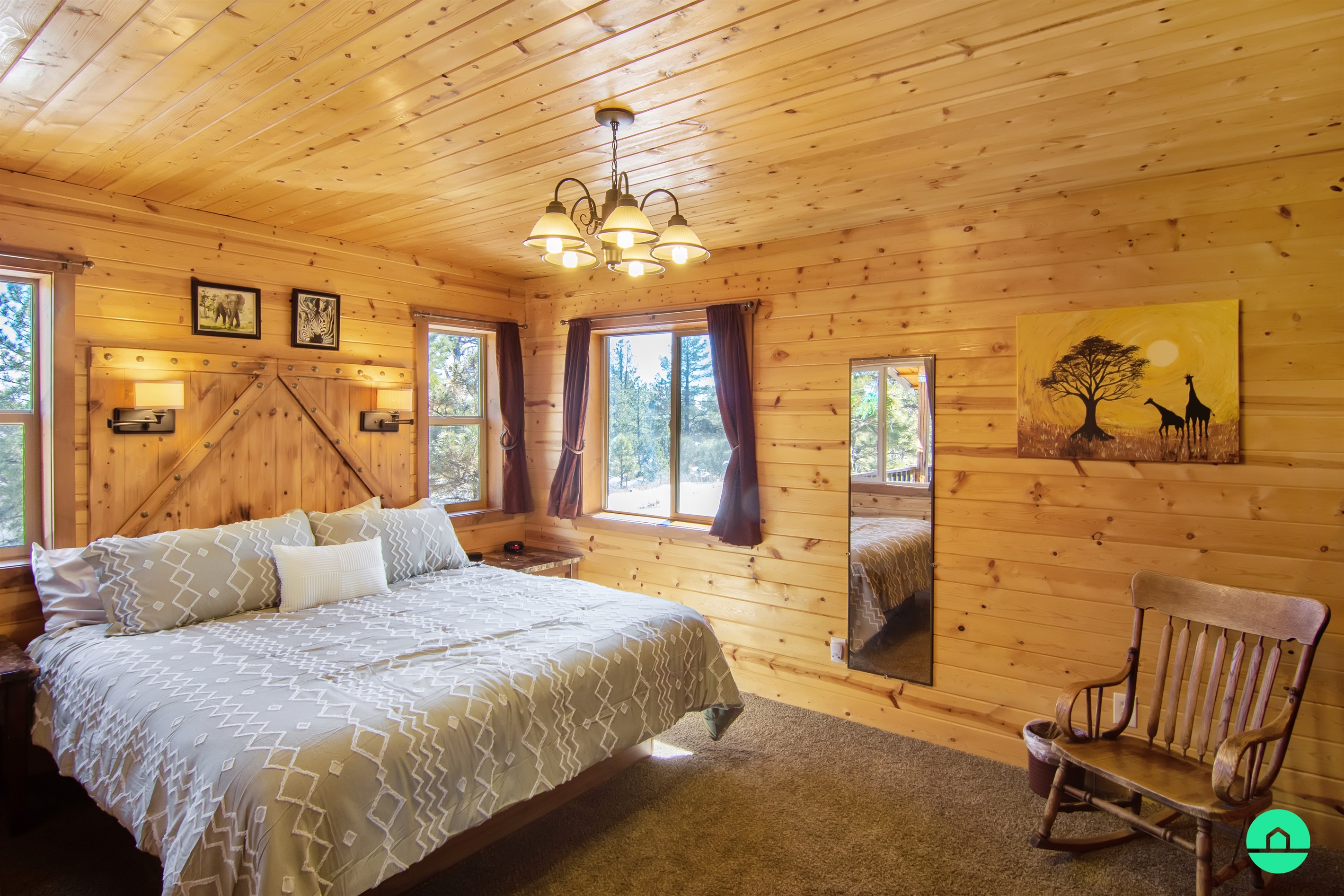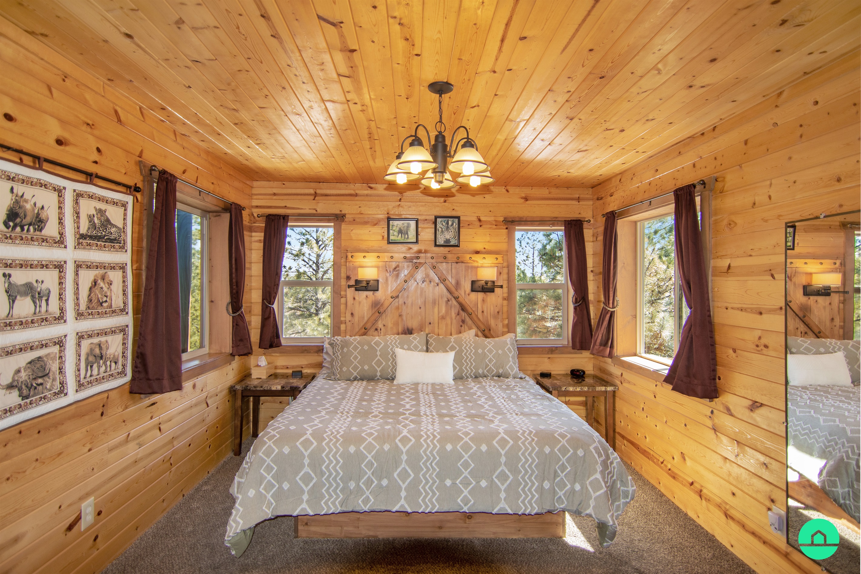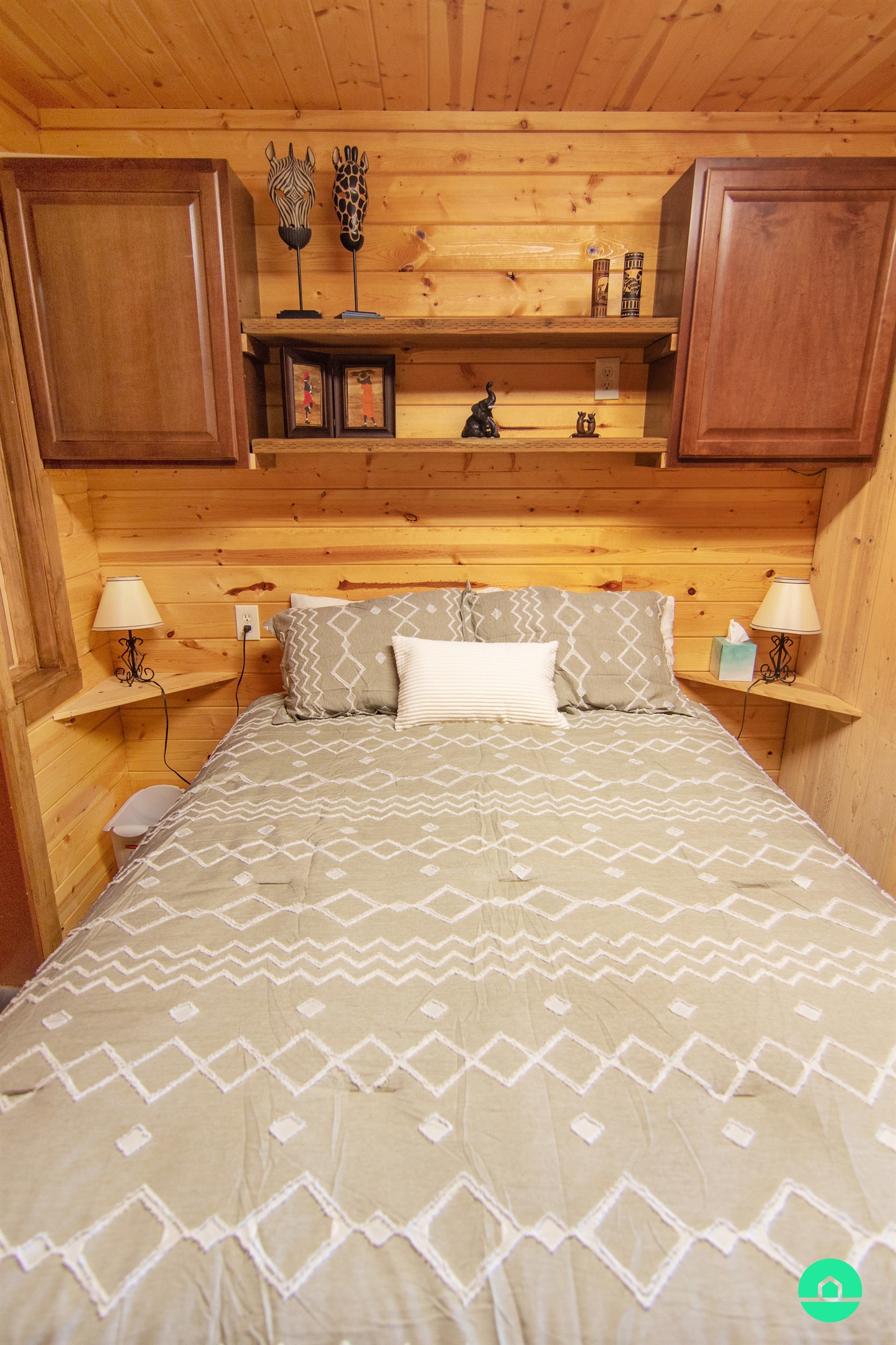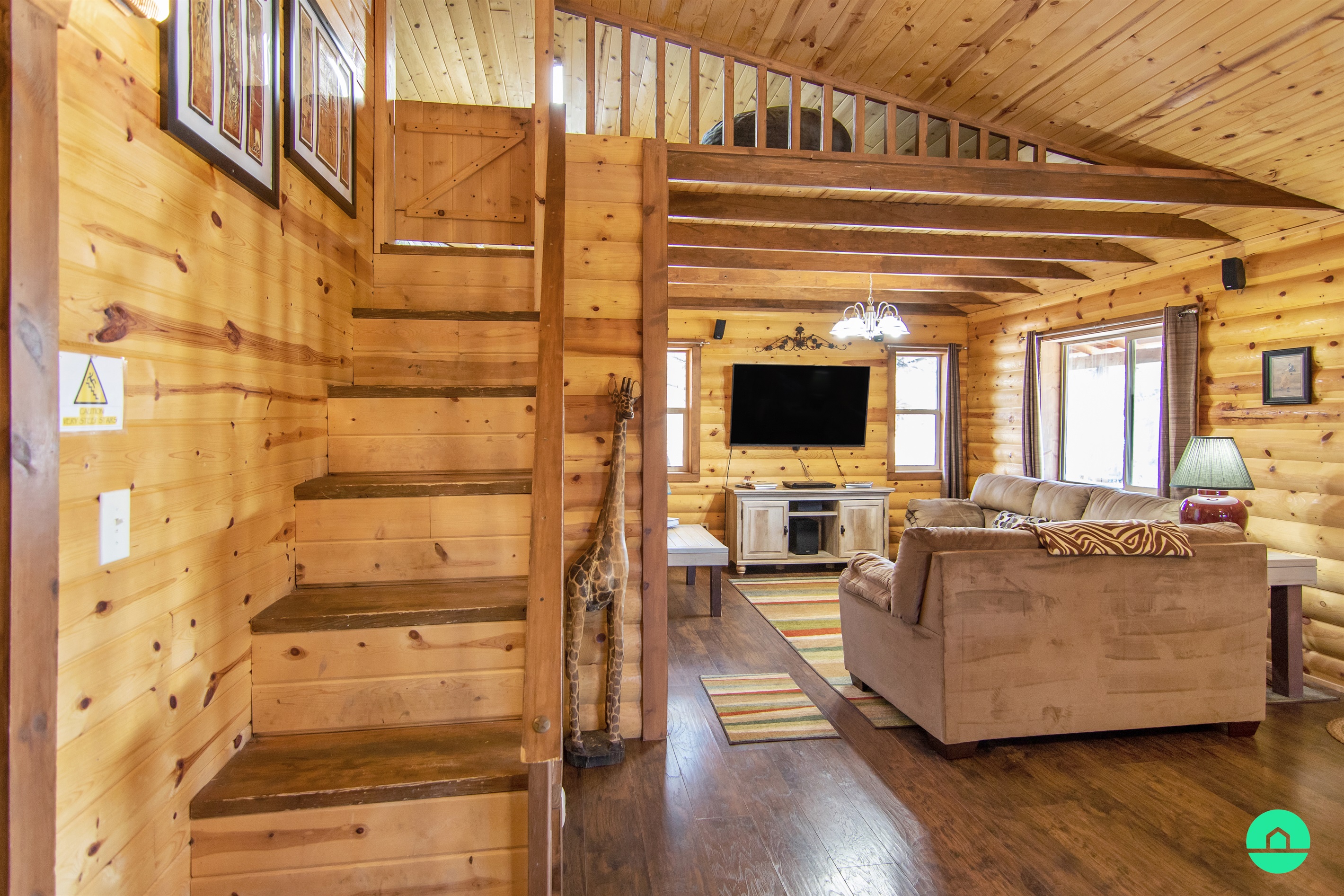 The Long View Cabin is a guest favorite! Lavishly decorated with African decor. Sleeps up to 8 in beds including the loft beds.
