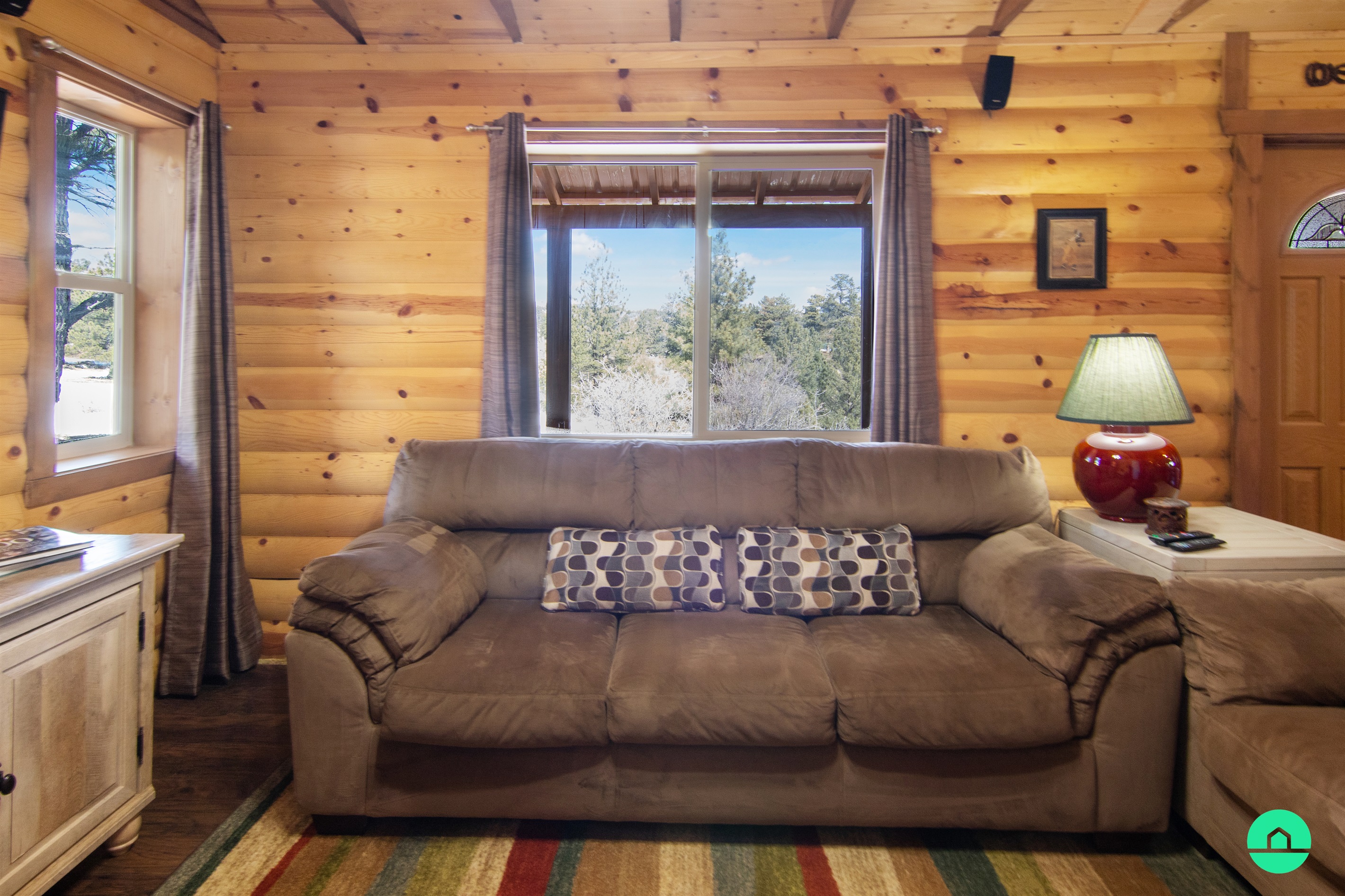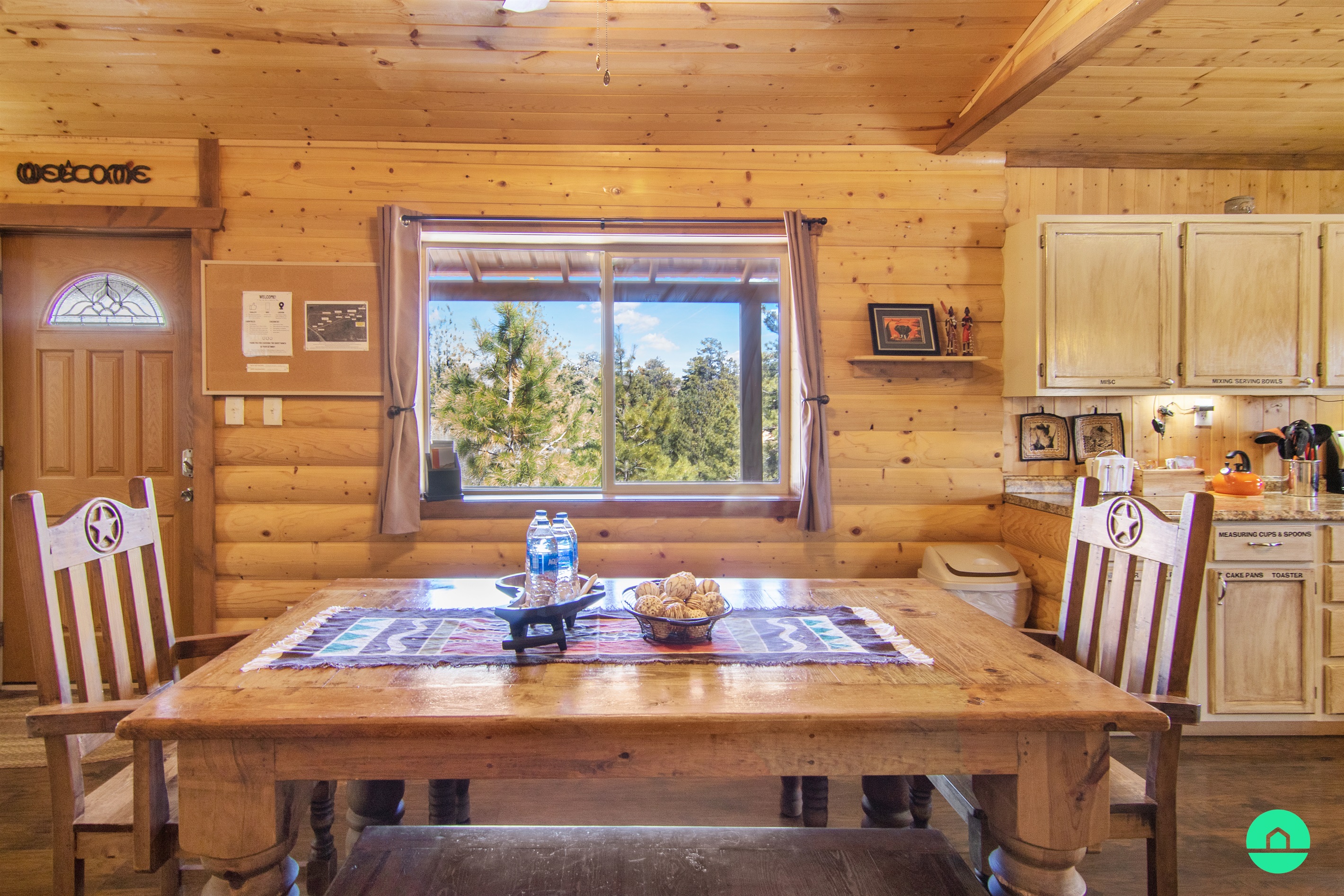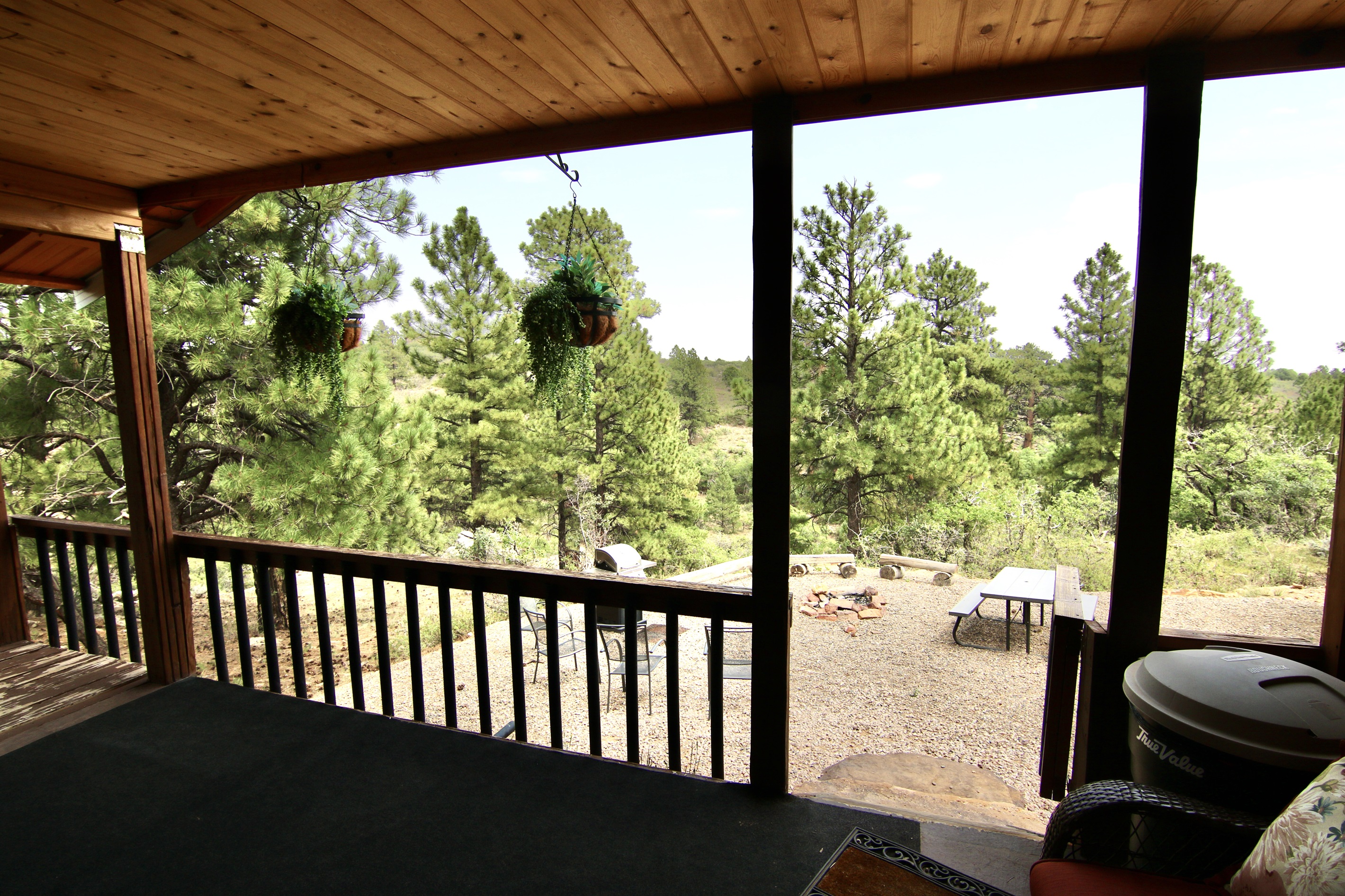 Outside you'll find a beautiful breakfast nook overlooking the canyon and forest, a large family campfire area, a covered deck, and picnic table.
