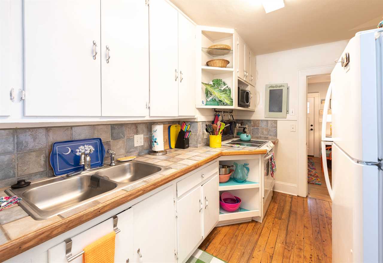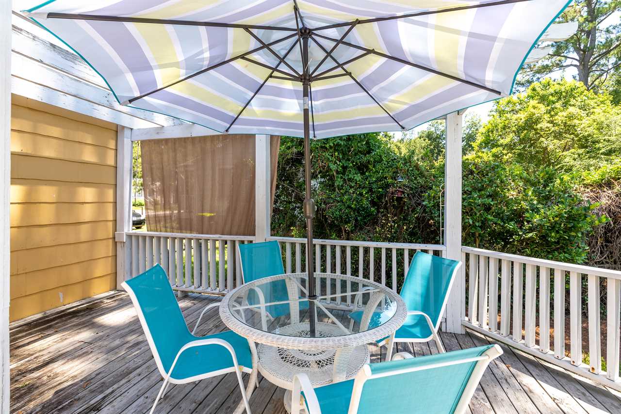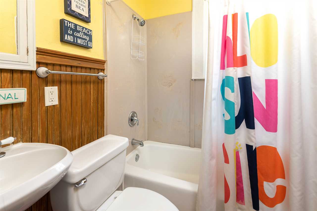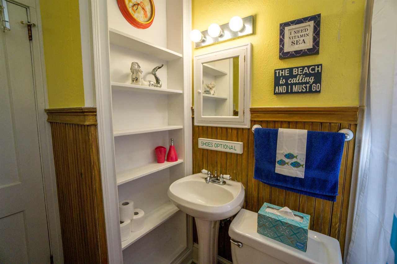 The bright and eclectic beachy furnishings will lighten your spirits and put a smile on your face as you sip coffee from the front porch swing or enjoy a drink on the private back porch.