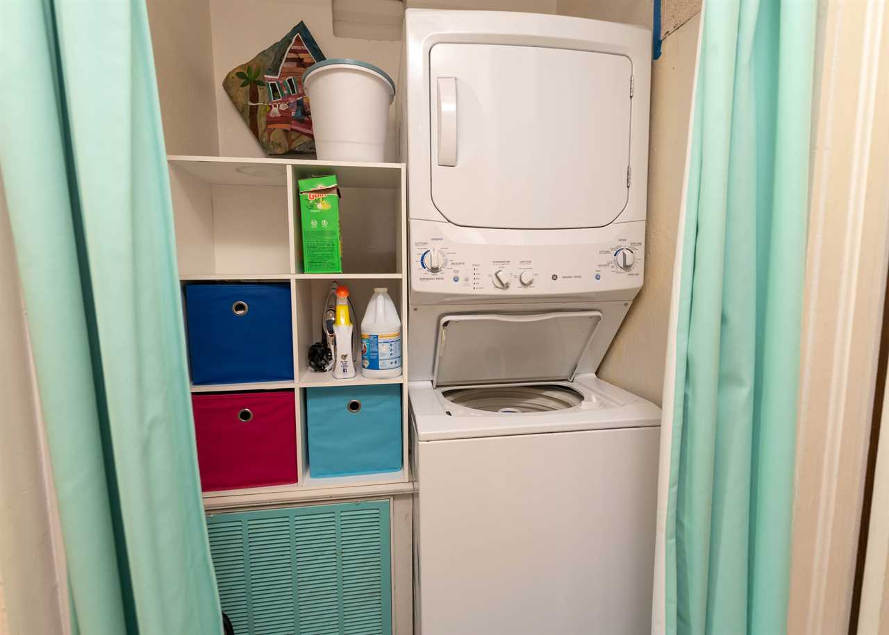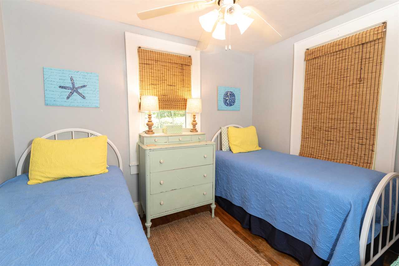 A queen size bed in one bedroom and two twins up on risers for convenient luggage storage in the other. This home will comfortably sleep four adults.