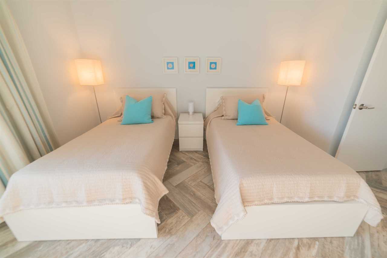 On the second level, you'll find two spacious bedrooms, each with full en-suite bathrooms, modern closets and flat screen TVs with Blu-ray players. The master bedroom has a king size bed and every morning you'll awake to the most beautiful sunrise on the beach. The second bedroom is bright, roomy and has 2 twin beds. Bath & bed linens are provided, but remember to pack your beach towels and chairs.