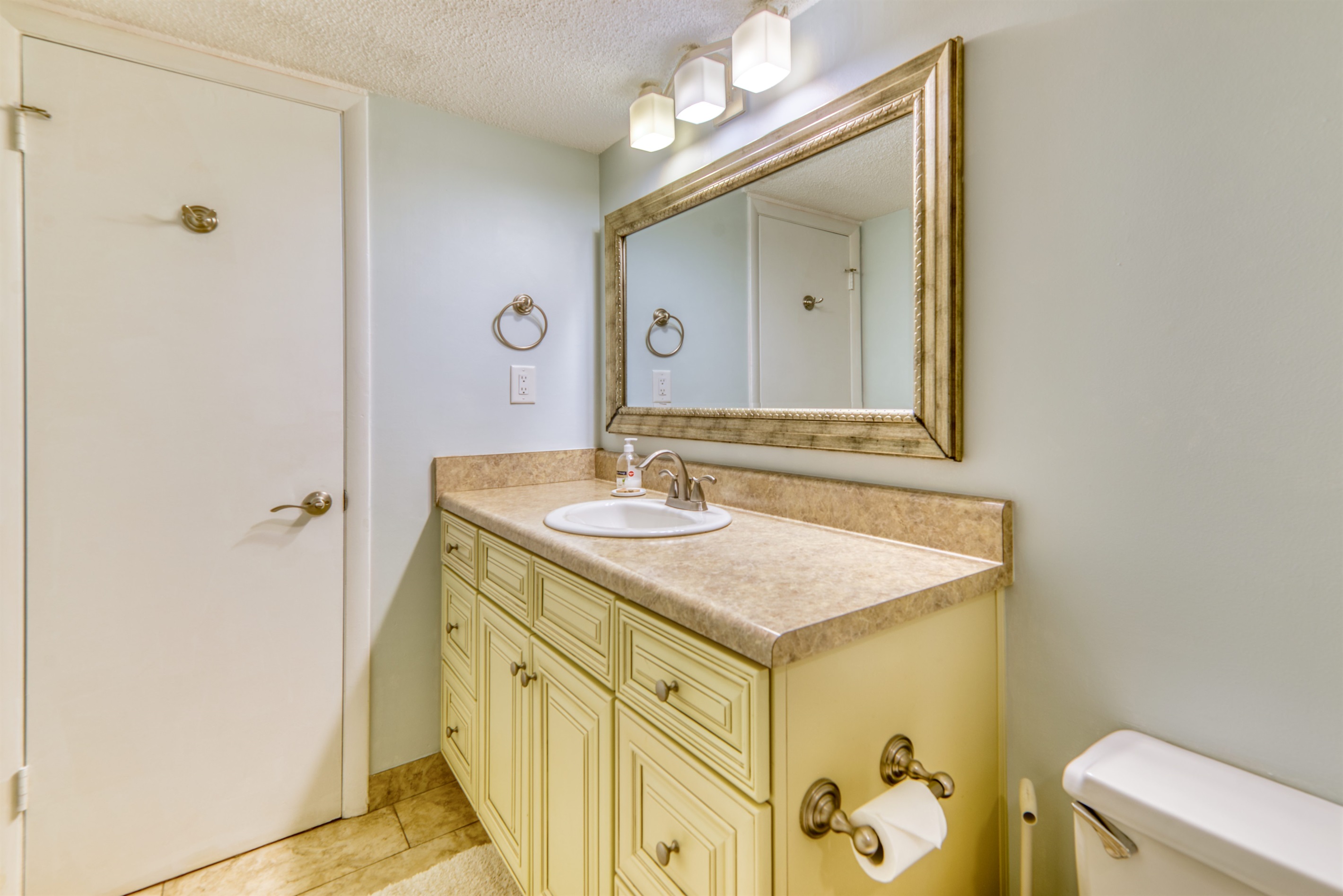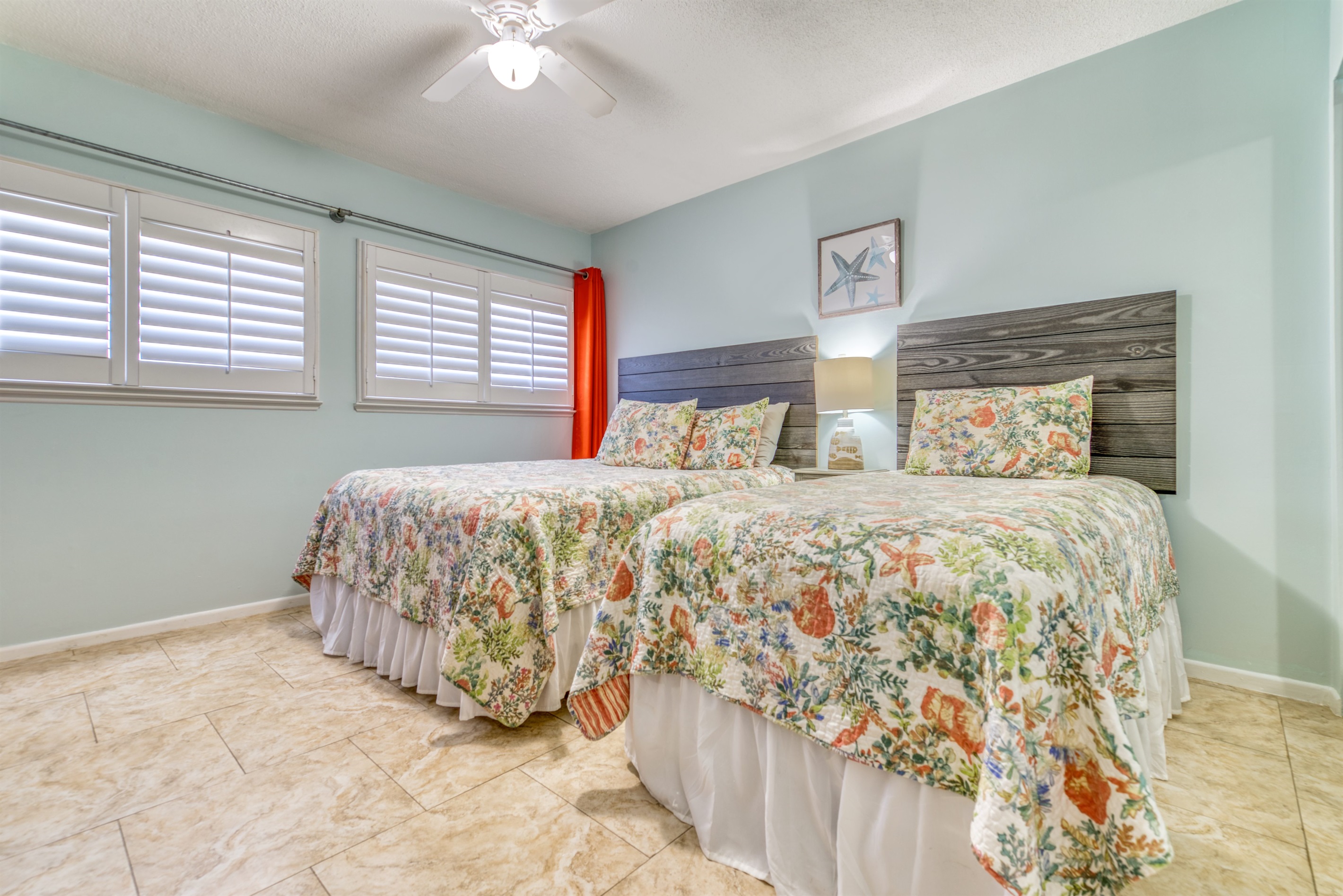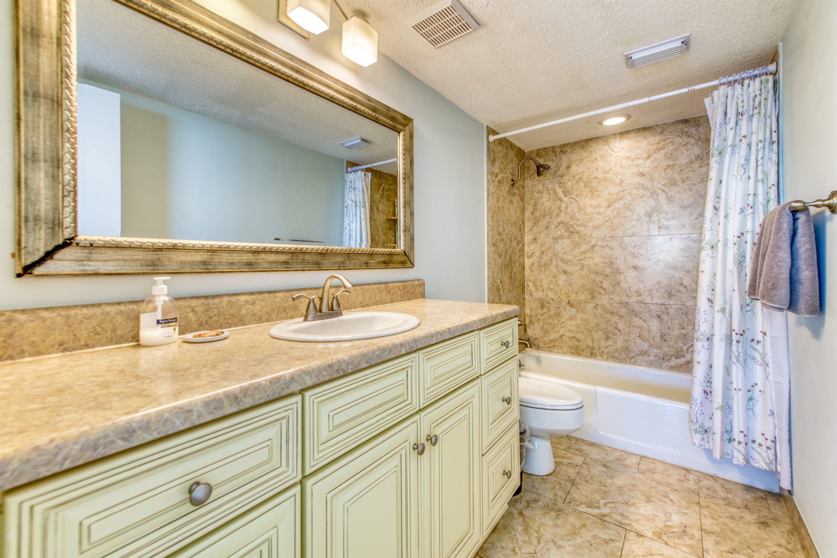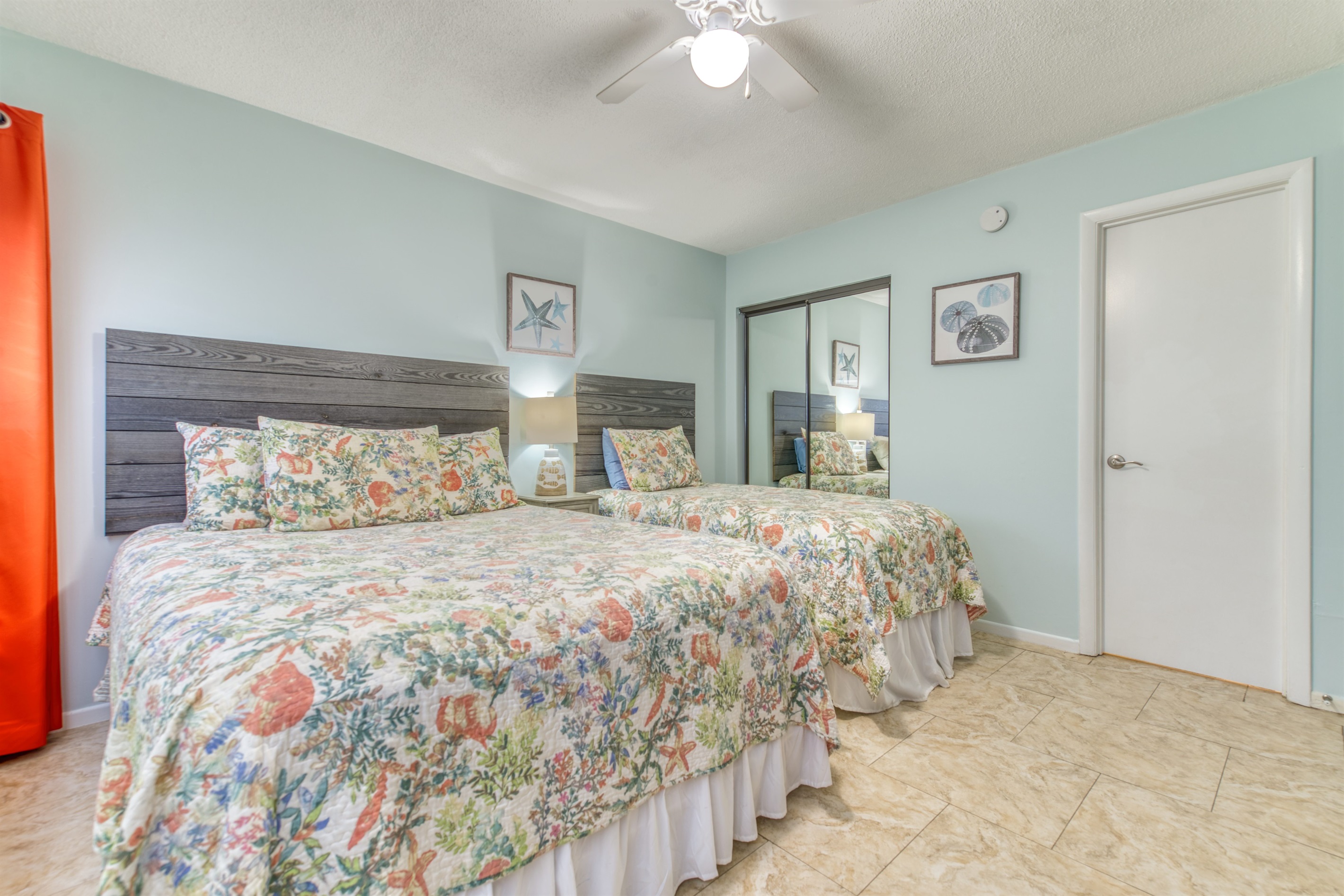 This condo can conveniently accommodate a party of 7. The master bedroom has a king-sized bed that comfortably sleeps 2, as well as a private, full bathroom attached to it. The guest bedroom has 1 queen size bed and 1 twin bed along with an attached full bathroom that is also accessible from the living room area. The living room is equipped with plenty of comfortable seating for lounging and relaxing throughout the day during your breaks from the beach, as well as a pull-out sleeper sofa bed that can comfortably sleep 2. The total sleeping accommodations for this condo are 7 guests.