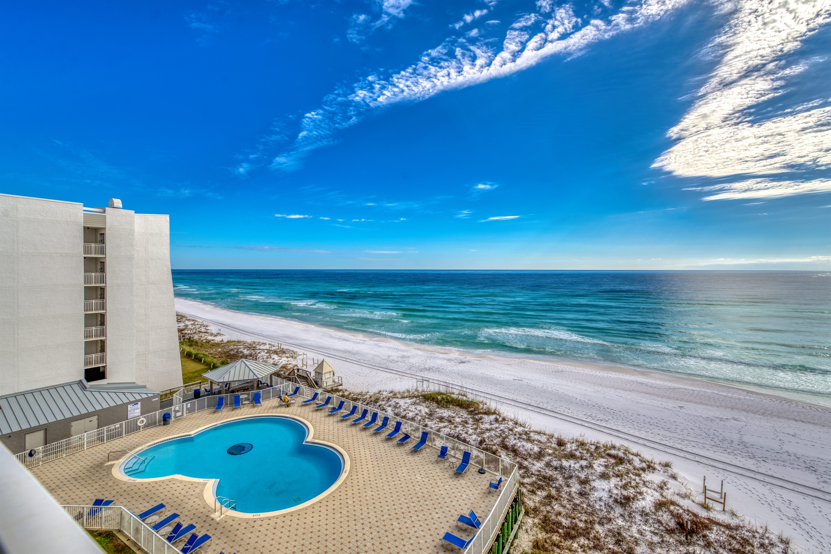 Enter condo C602 at Beach House Condominiums to an open, airy beachy welcome! This property is located directly on the beach with no streets to cross. It is a beautiful two-bedroom, two-bathroom condo that sits on the 6th floor and it is centrally located near the pool deck, gazebo, fitness room, and grill area. Stepping outside onto the covered balcony, you are met with a gorgeous view of the pool deck overlooking the Gulf of Mexico and the white sandy beaches of the Emerald Coast! You can hear the waves crashing and almost feel the surf splash right from the balcony!