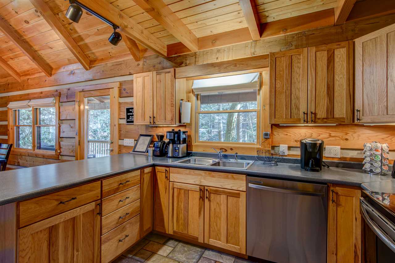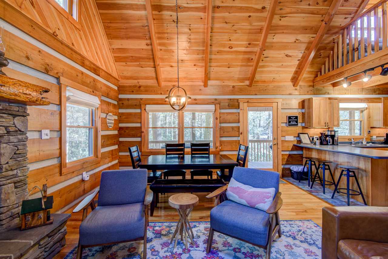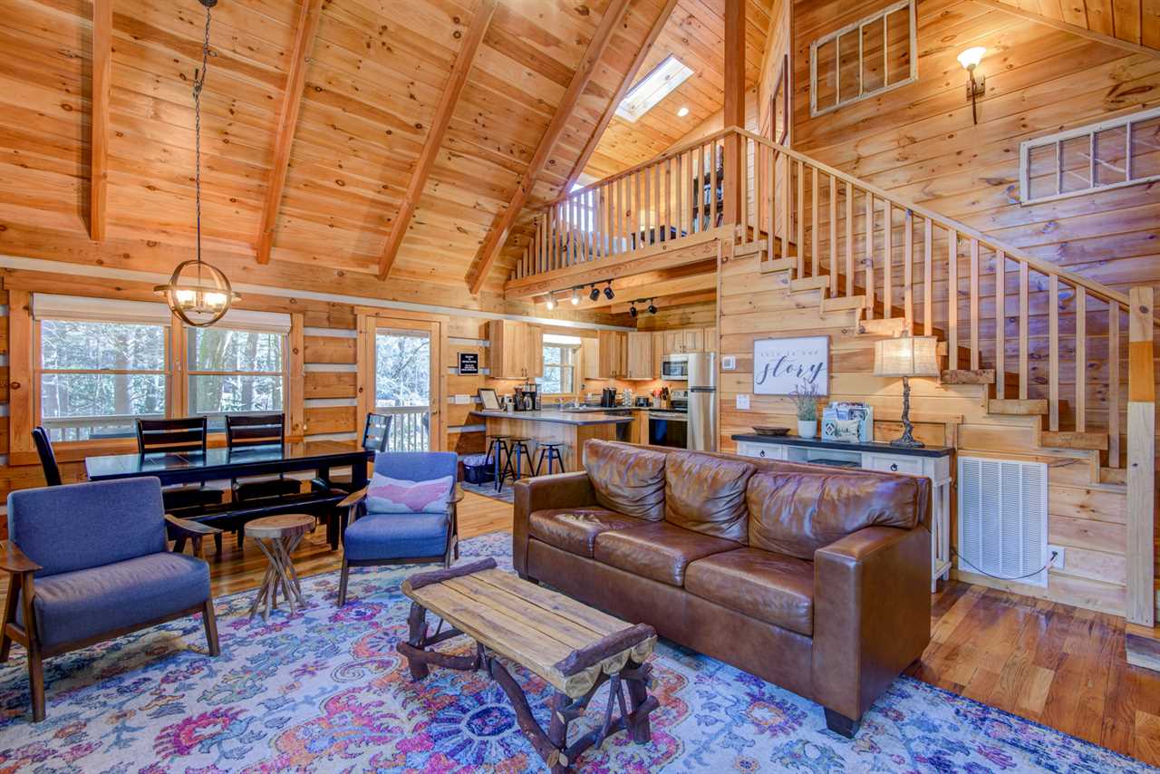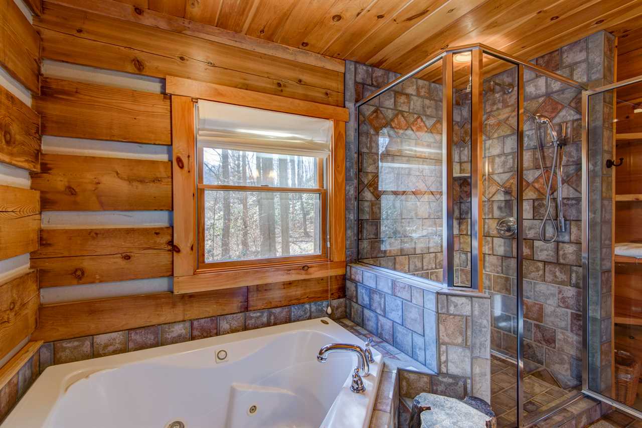 Hot tub and gas grill on the deck, internet and pet friendly, EV charging station (J1772 EV charger @ 30 Amp), gas log fireplace, central heating/air, master bath features a jacuzzi bathtub and tile shower to die for, modern kitchen, well furnished Family Room, rustic yet was the whole idea. Soothing Waters is not just a name, it's a place in the mountains just quietly you.