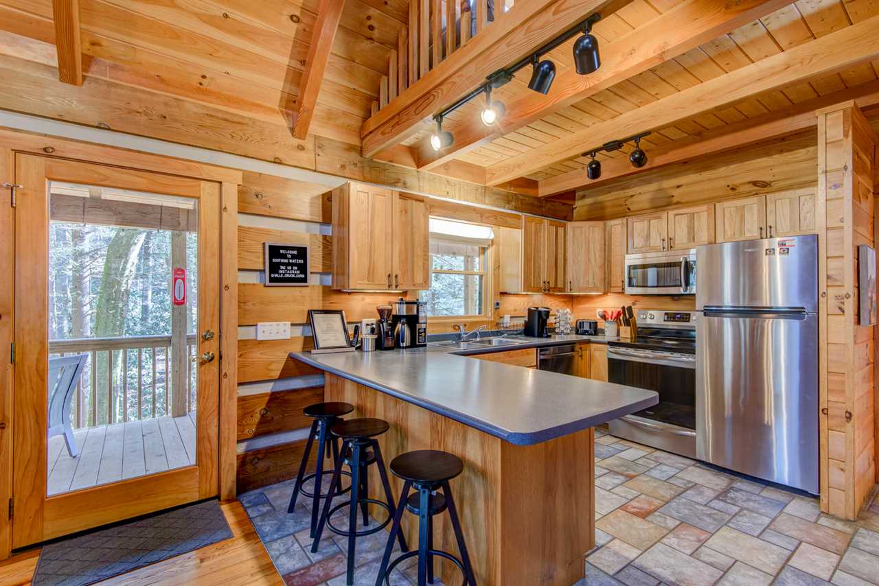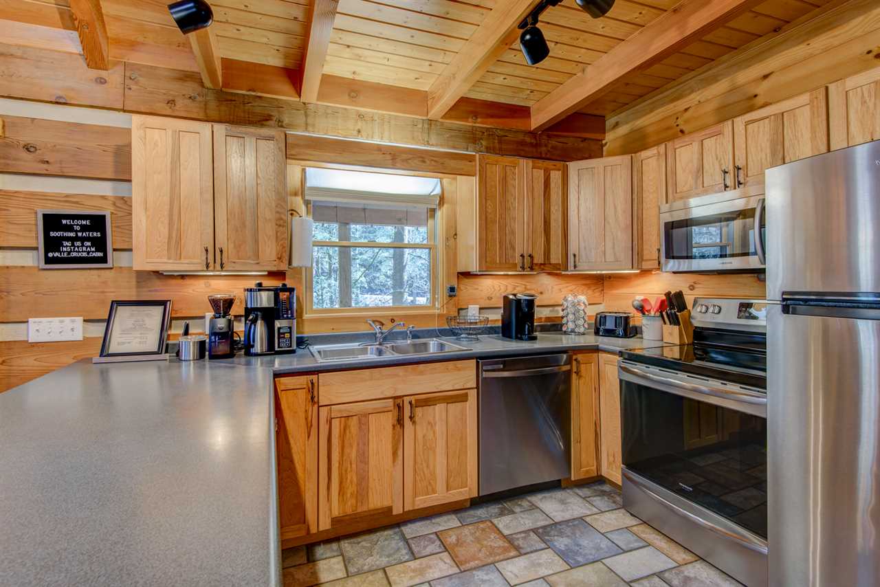 The mind is a terrible thing to waste unless that is your intention. Sometimes that's the best form of relaxation, to just sit on the deck and listen to the sounds from the soothing stream below and just waste a few moments by yourself nestled under a canopy provided by 70 foot Hemlock trees. Soothing Waters will change your way of thinking and that's exactly why you should be here. There are two queen bedrooms, one on each floor, as well as two full baths plus additional sleeping for two in the loft.