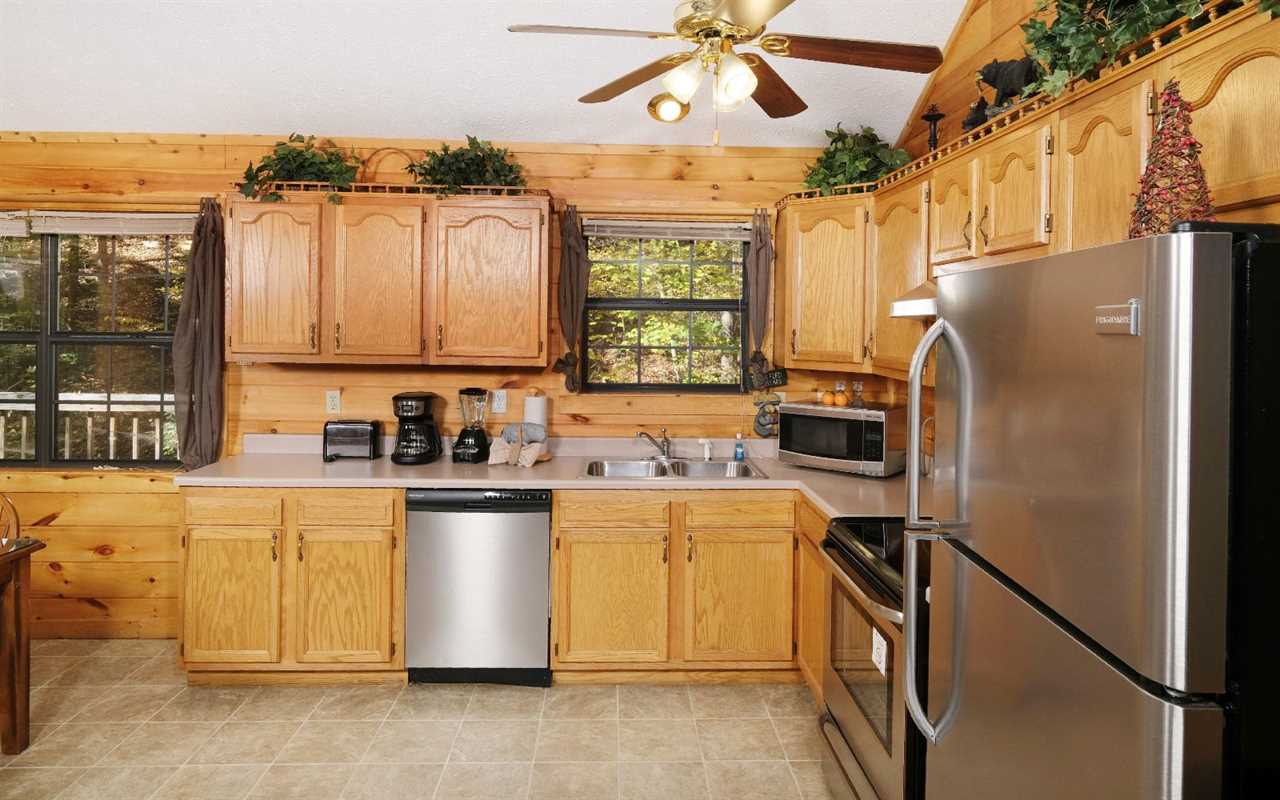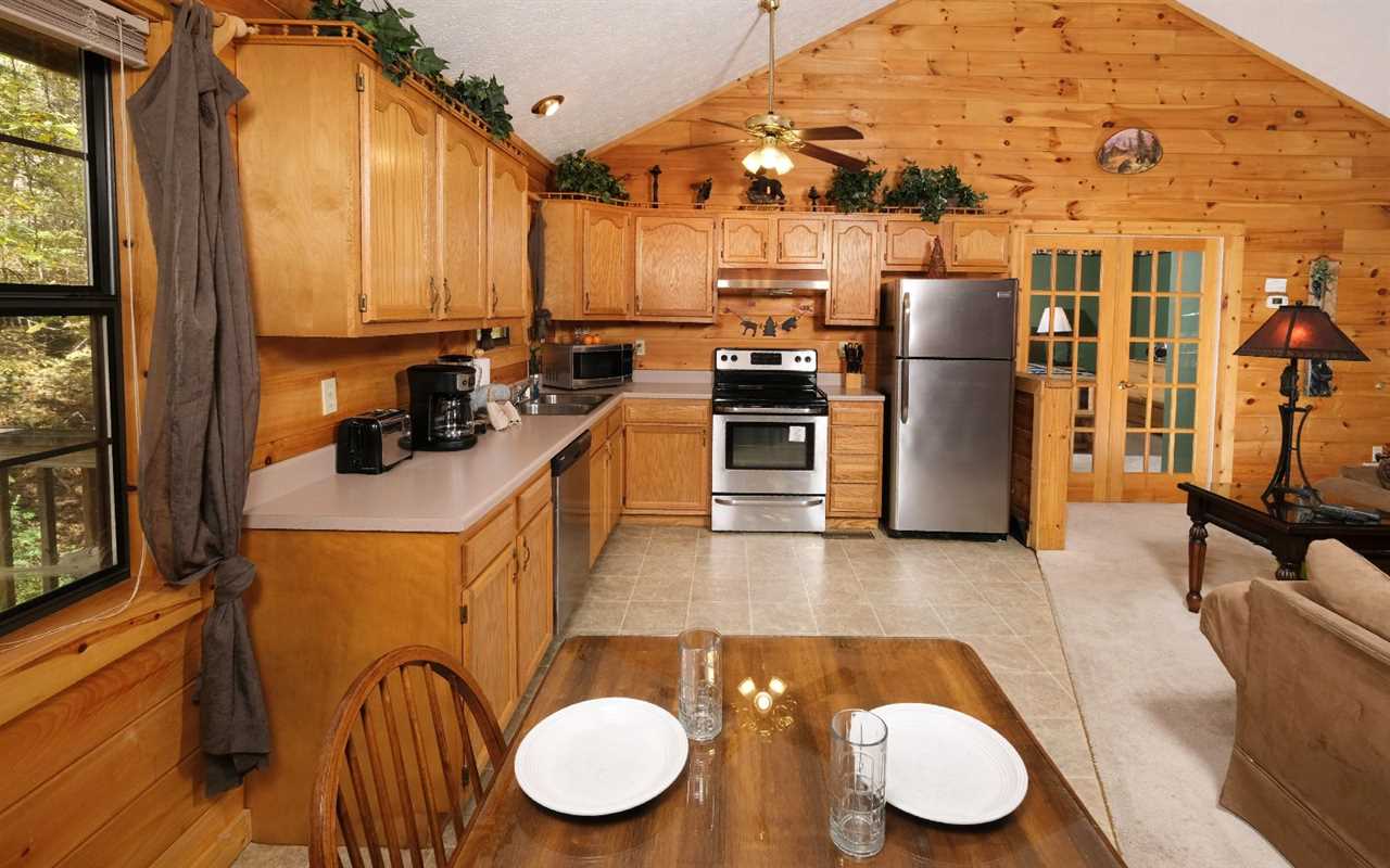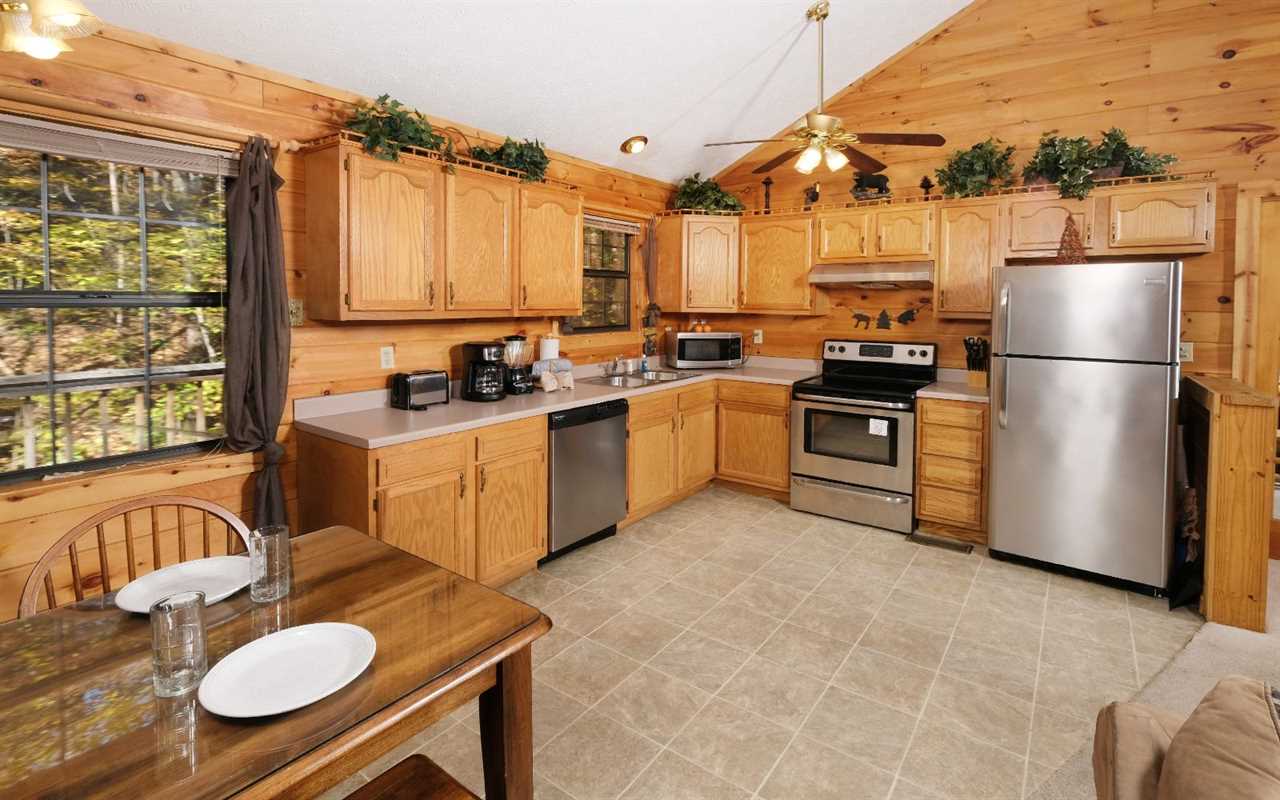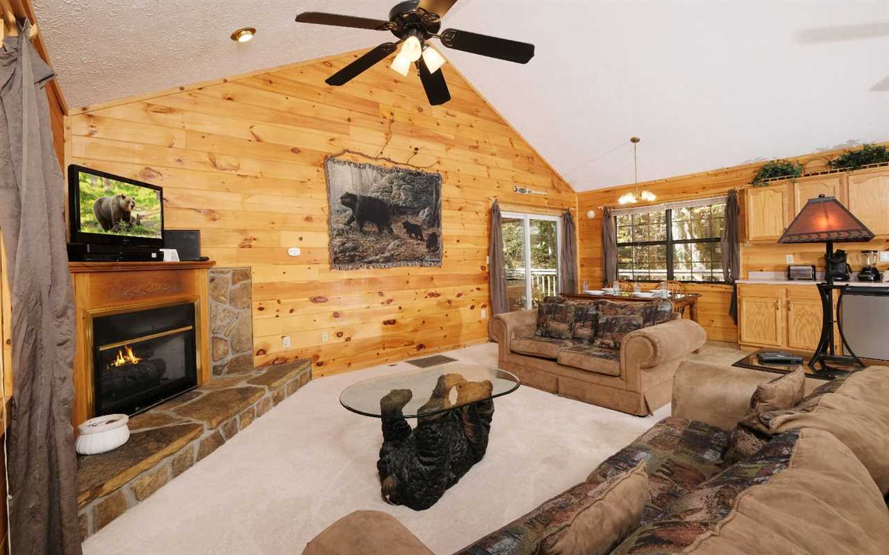 Featuring an open concept, the living space is comfy and cozy and welcomes you to kick back on the sofas with a glass of wine or a mug of cocoa for a nice evening together. Watch DVD entertainment on the TV or light a fire in the gas fireplace to set the mountain mood. Hungry? Walk over to the kitchen that's fully outfitted with everything you need to prepare meals, snacks, and drinks throughout your stay — including stainless steel appliances, pots and pans, dishware, and cutlery.