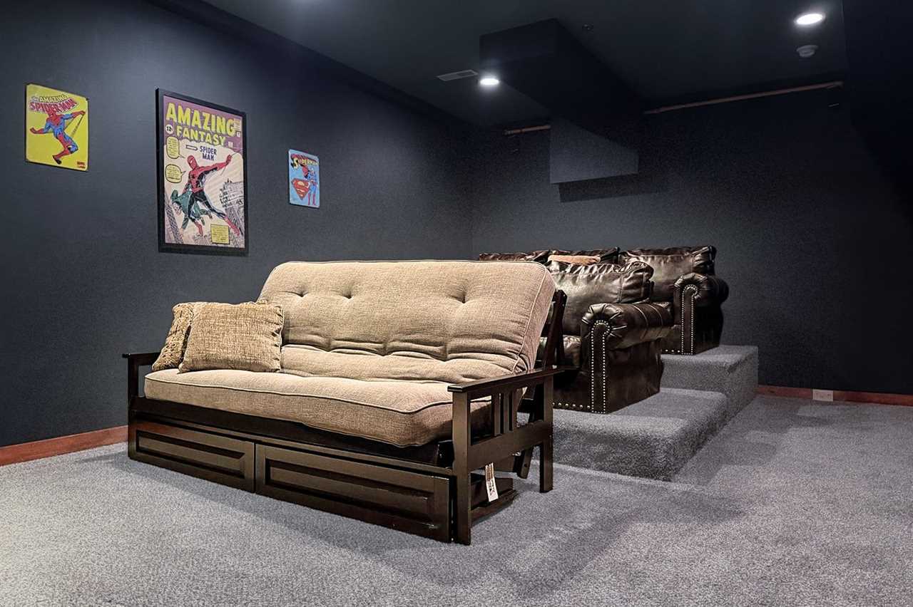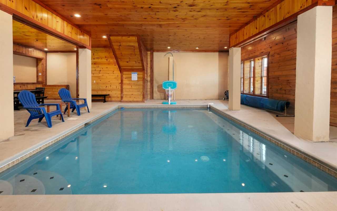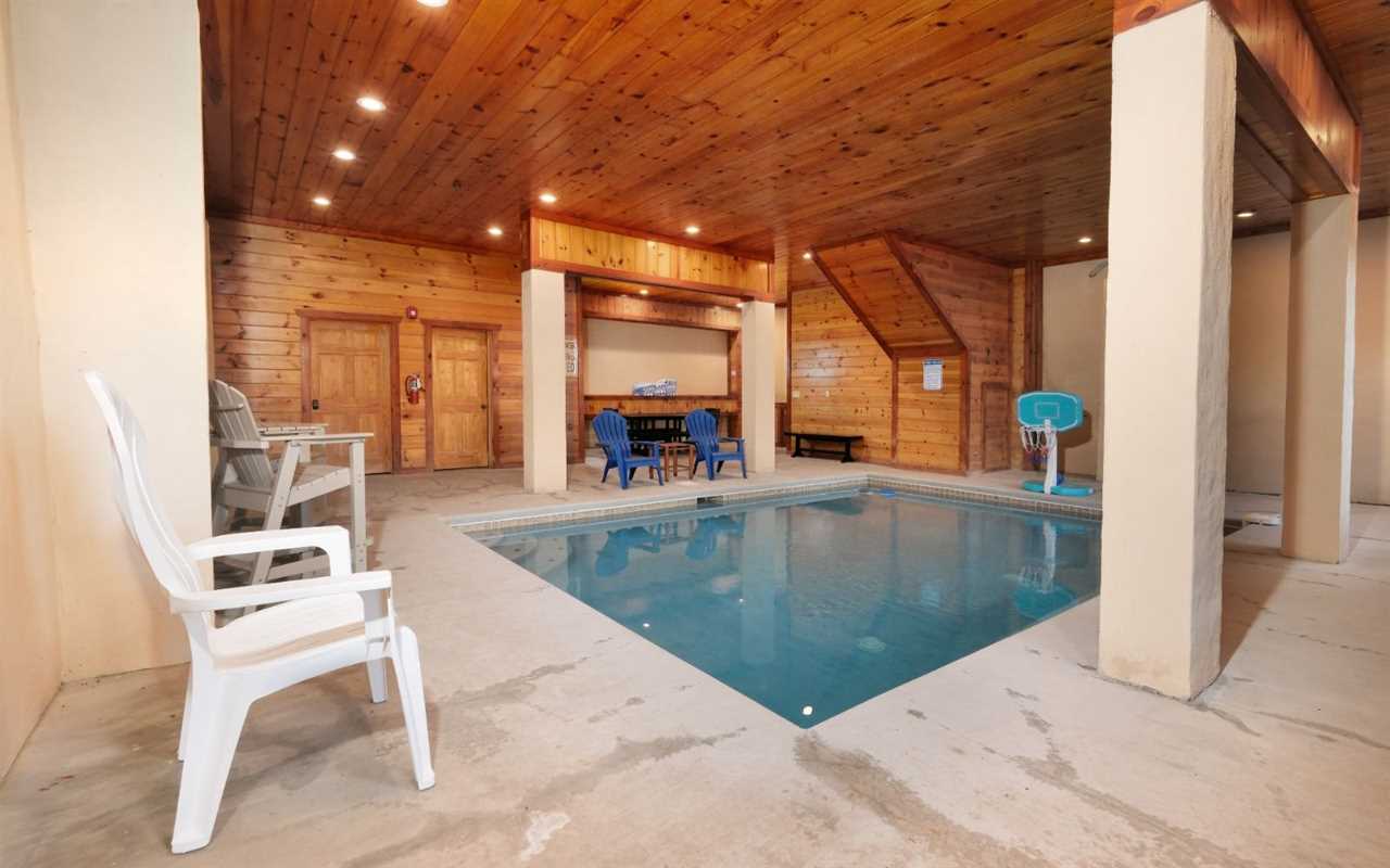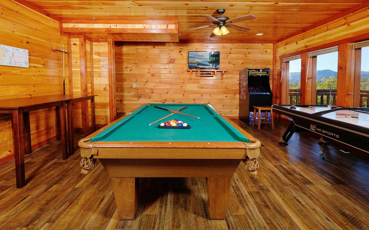 Stay entertained with a Blu-ray player in the theater room with tiered seating, a fun game room with air hockey, a pool table, and awesome arcade games, plus a private indoor pool — with poolside seating and a large table for meals, card games, or a place to chat while the kids swim and play! Then unwind in the bubbling outdoor hot tub or spread out across the decks with multiple sitting areas featuring tall chairs, tables for snacks and drinks, and rockers while enjoying peaceful mountain views.
