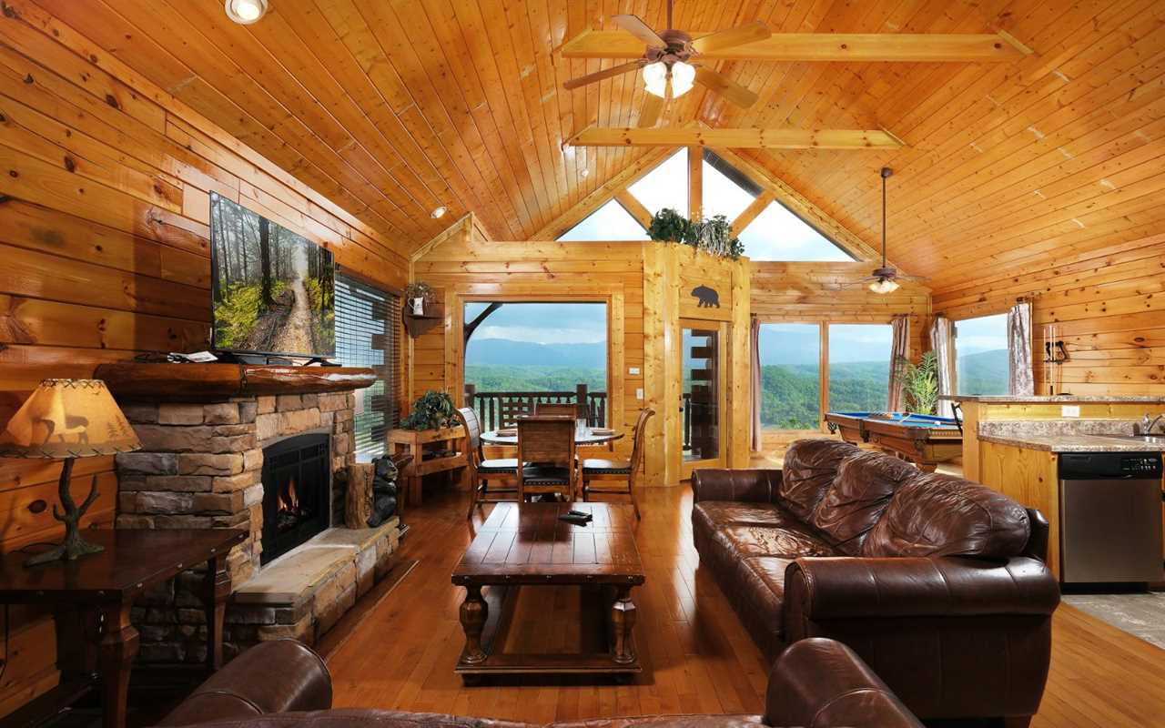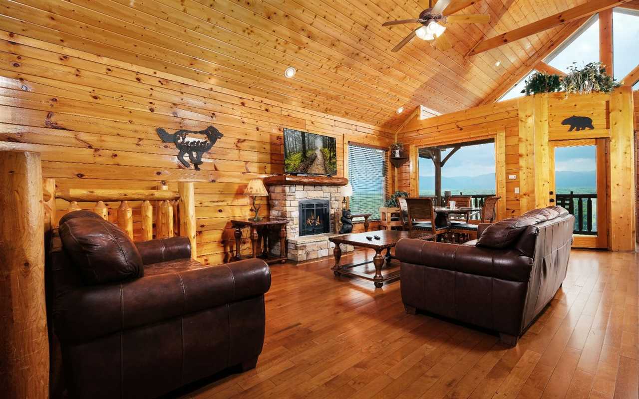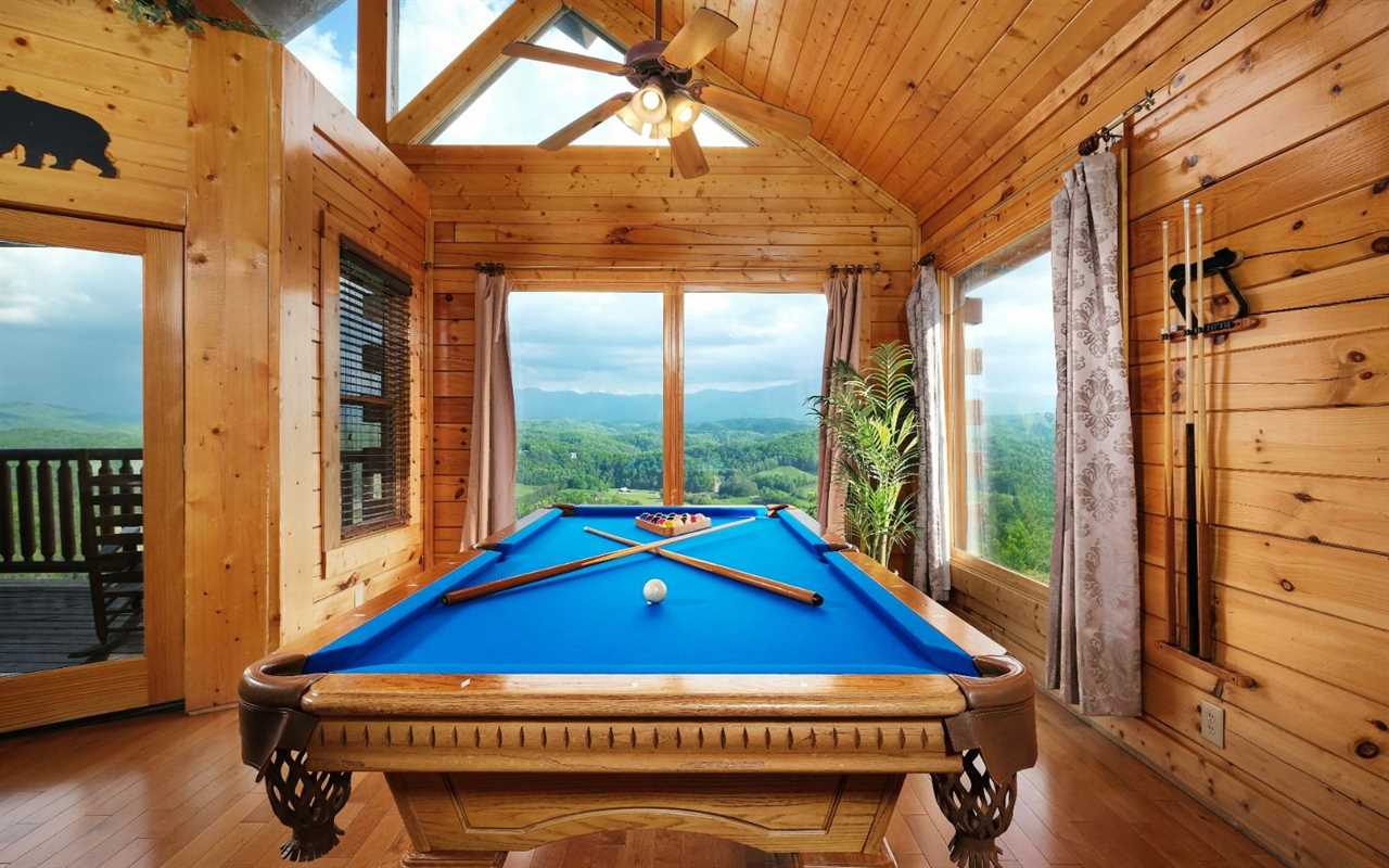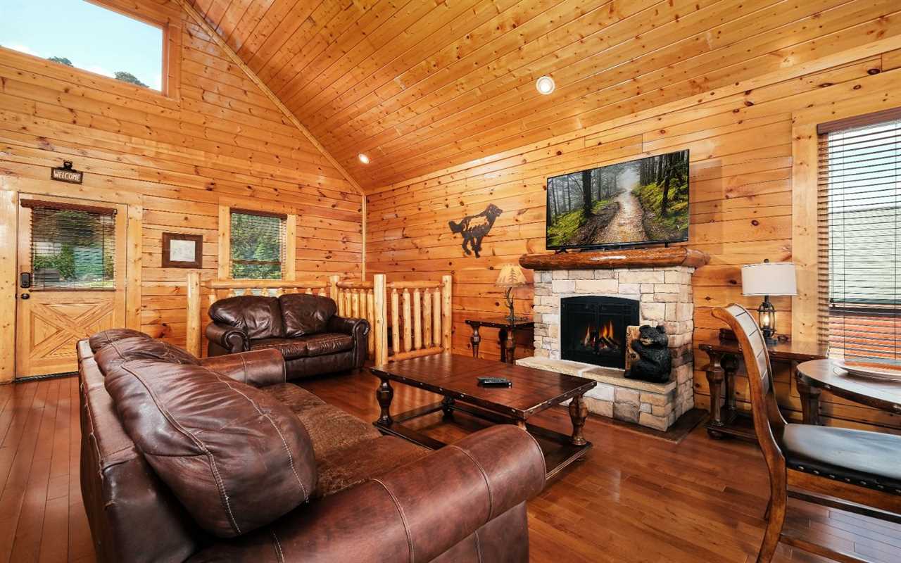 Back at the cabin, it's time to kick back and relax while petting your fur baby and sipping coffee in a rocking chair on the deck. Slip into your swimsuit to soak tired muscles in the bubbly hot tub that features an outdoor TV. For more fun, shoot pool or hang out in the rec room that features a Blu-ray/DVD player, a sleeper sofa, and a big screen TV for a cool movie experience. You can also hang out in the living room and watch entertainment, read by the electric (no heat) fireplace, or keep soaking in those gorgeous mountain views through giant windows.