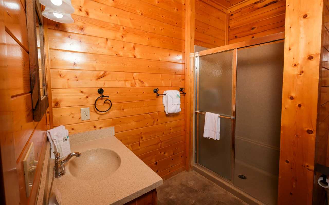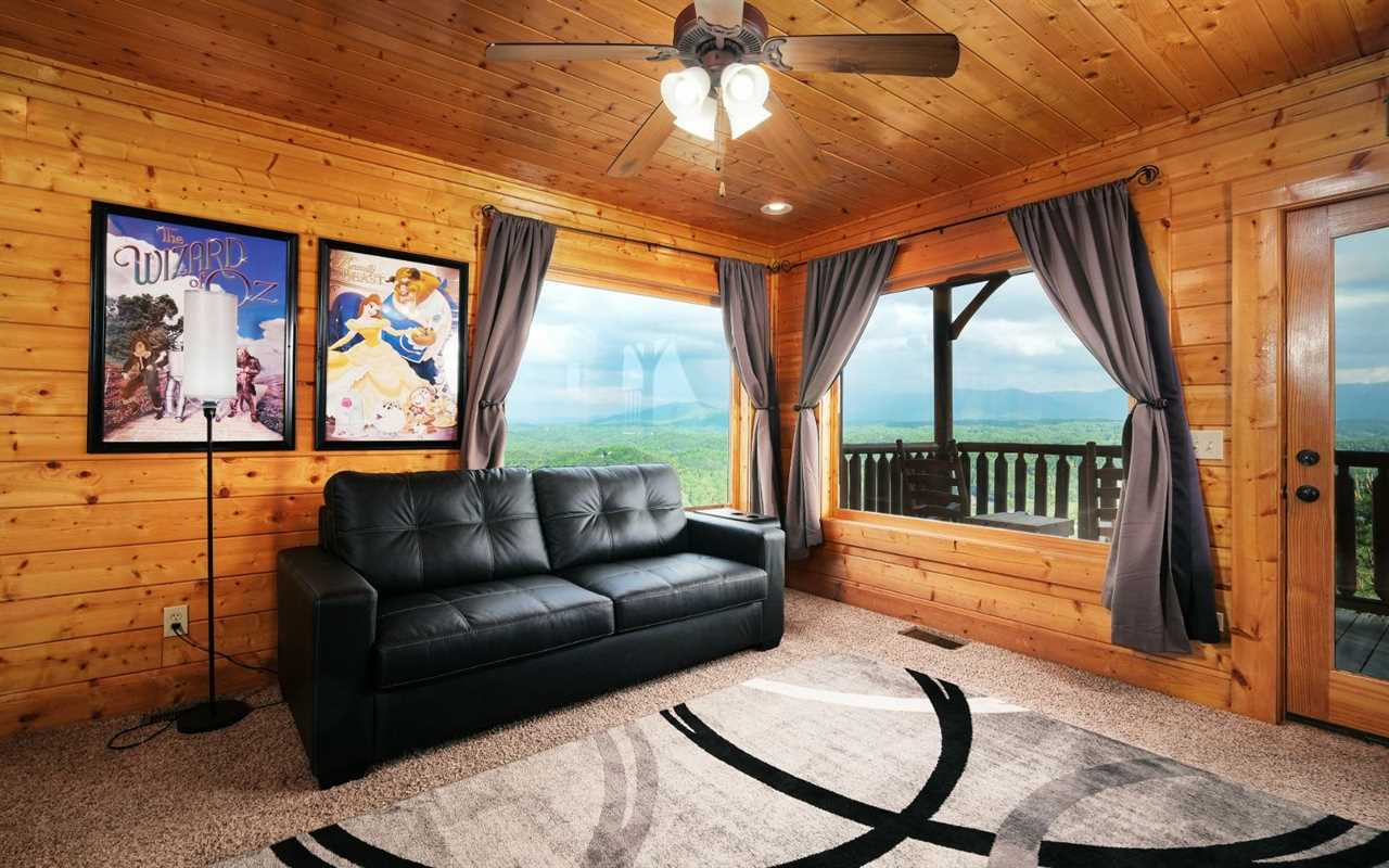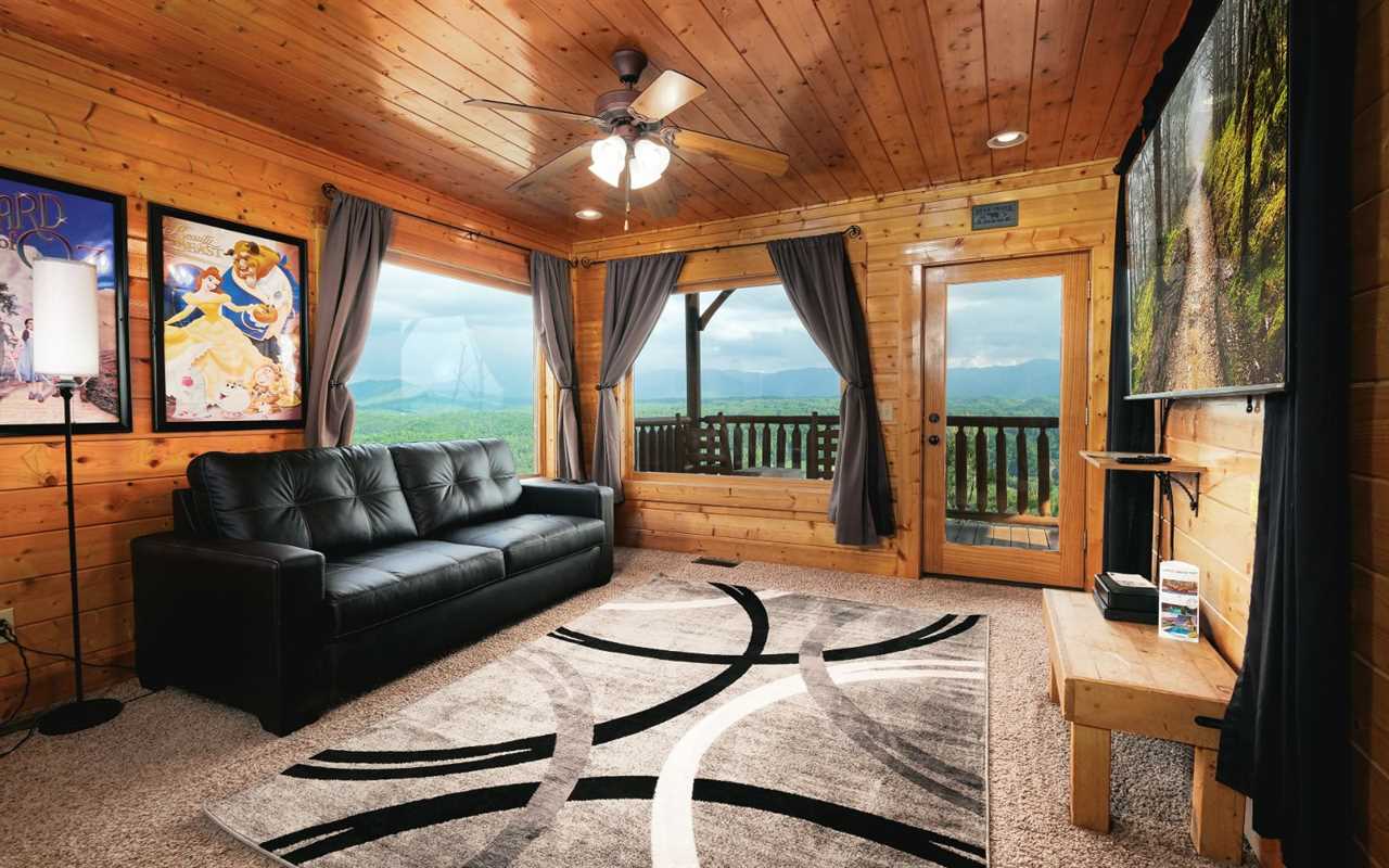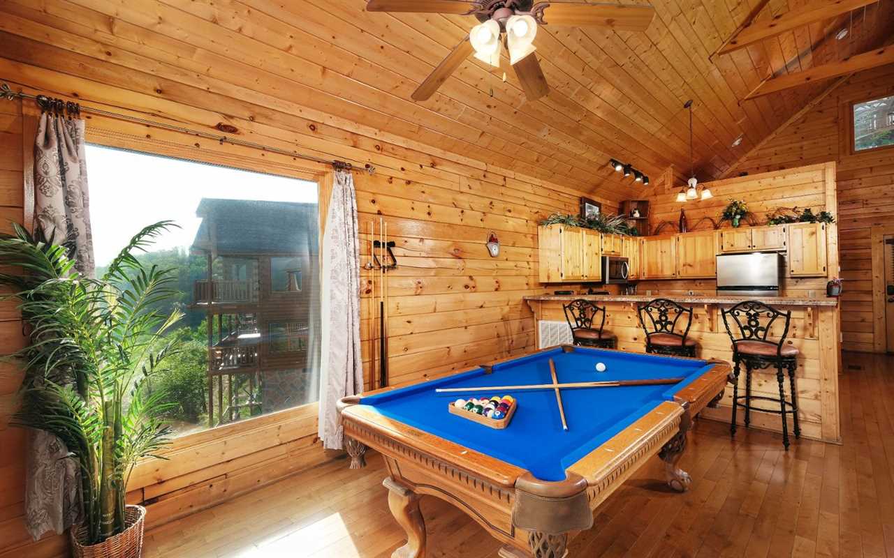 Back at the cabin, it's time to kick back and relax while petting your fur baby and sipping coffee in a rocking chair on the deck. Slip into your swimsuit to soak tired muscles in the bubbly hot tub that features an outdoor TV. For more fun, shoot pool or hang out in the rec room that features a Blu-ray/DVD player, a sleeper sofa, and a big screen TV for a cool movie experience. You can also hang out in the living room and watch entertainment, read by the electric (no heat) fireplace, or keep soaking in those gorgeous mountain views through giant windows.