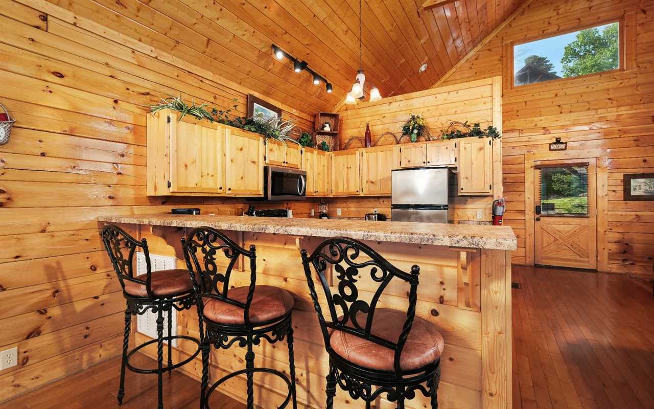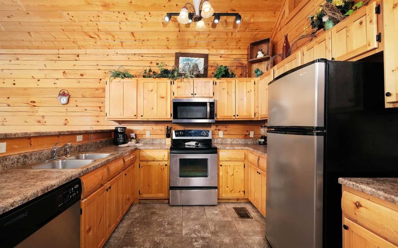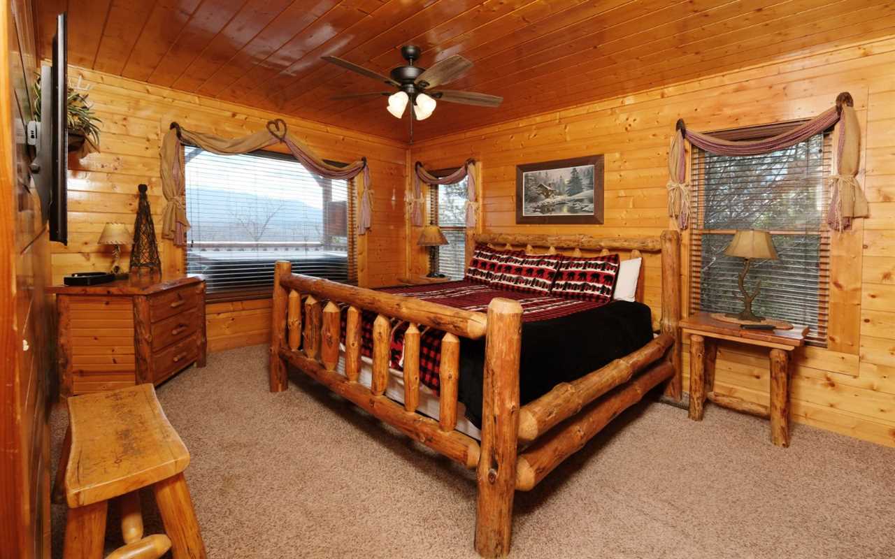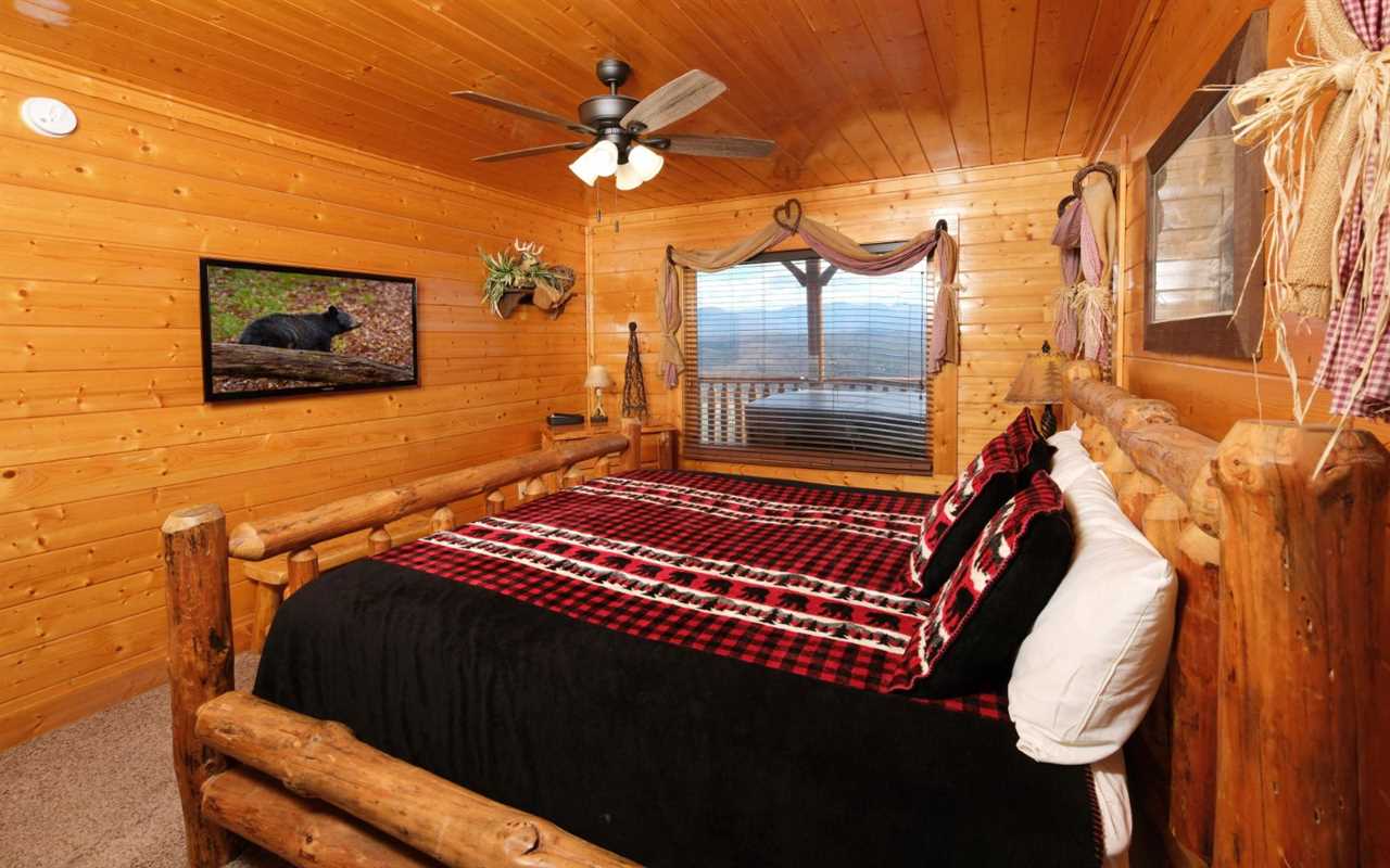 With an open concept, the fully equipped kitchen and dining area are just off the living space to keep everyone connected. Whip up meals using stainless steel appliances and provided cooking tools and dishware and enjoy meals together with incredible mountain scenery all around! When you're ready to head to bed, enjoy a spa bath with bubbles or bath salts in the indoor jetted tub first. Then, retreat to your king-size log bed to cuddle, crack open a book, or watch entertainment on the bedroom TV. There's also free Wi-Fi, a washer/dryer, 2 sleeper sofas, and a motorcycle-friendly driveway for added convenience on your Pigeon Forge vacation.