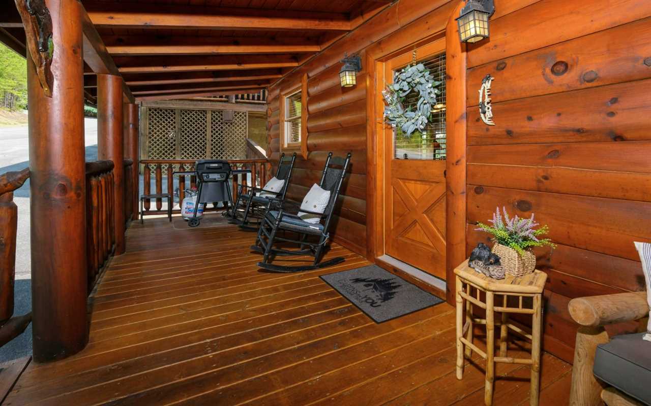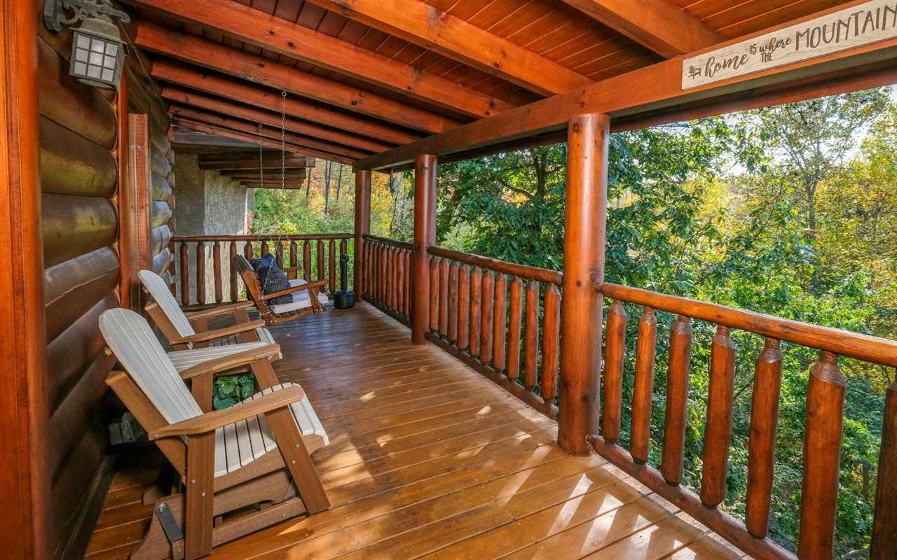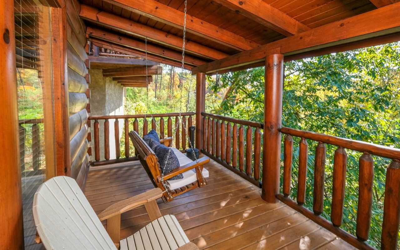 Take in the mountain air and seasonal views from the inviting back deck. Multiple seating options let you relax your way — from rocking chairs and a porch swing to a cushioned bench. Grill out, watch the outdoor TV, or soak in the steamy hot tub for the ultimate Smoky Mountain experience.