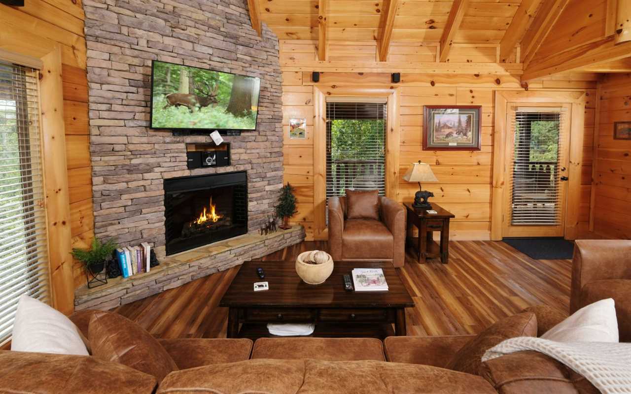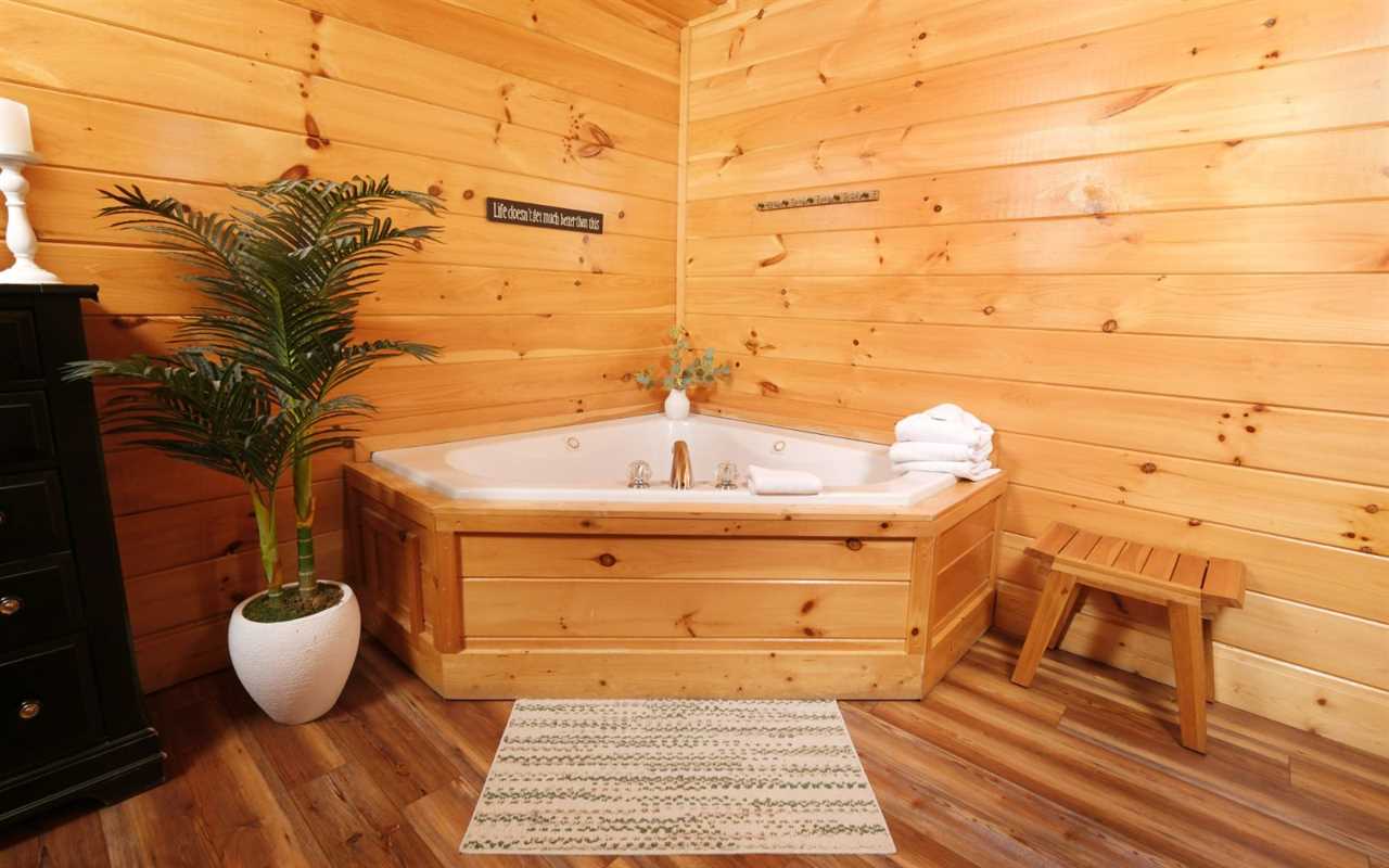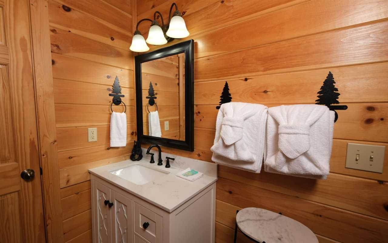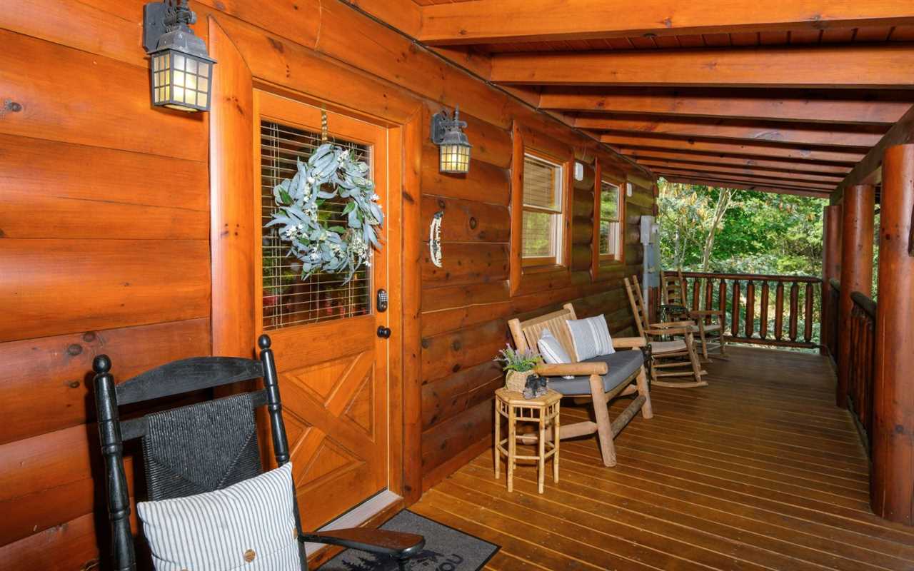 Take in the mountain air and seasonal views from the inviting back deck. Multiple seating options let you relax your way — from rocking chairs and a porch swing to a cushioned bench. Grill out, watch the outdoor TV, or soak in the steamy hot tub for the ultimate Smoky Mountain experience.