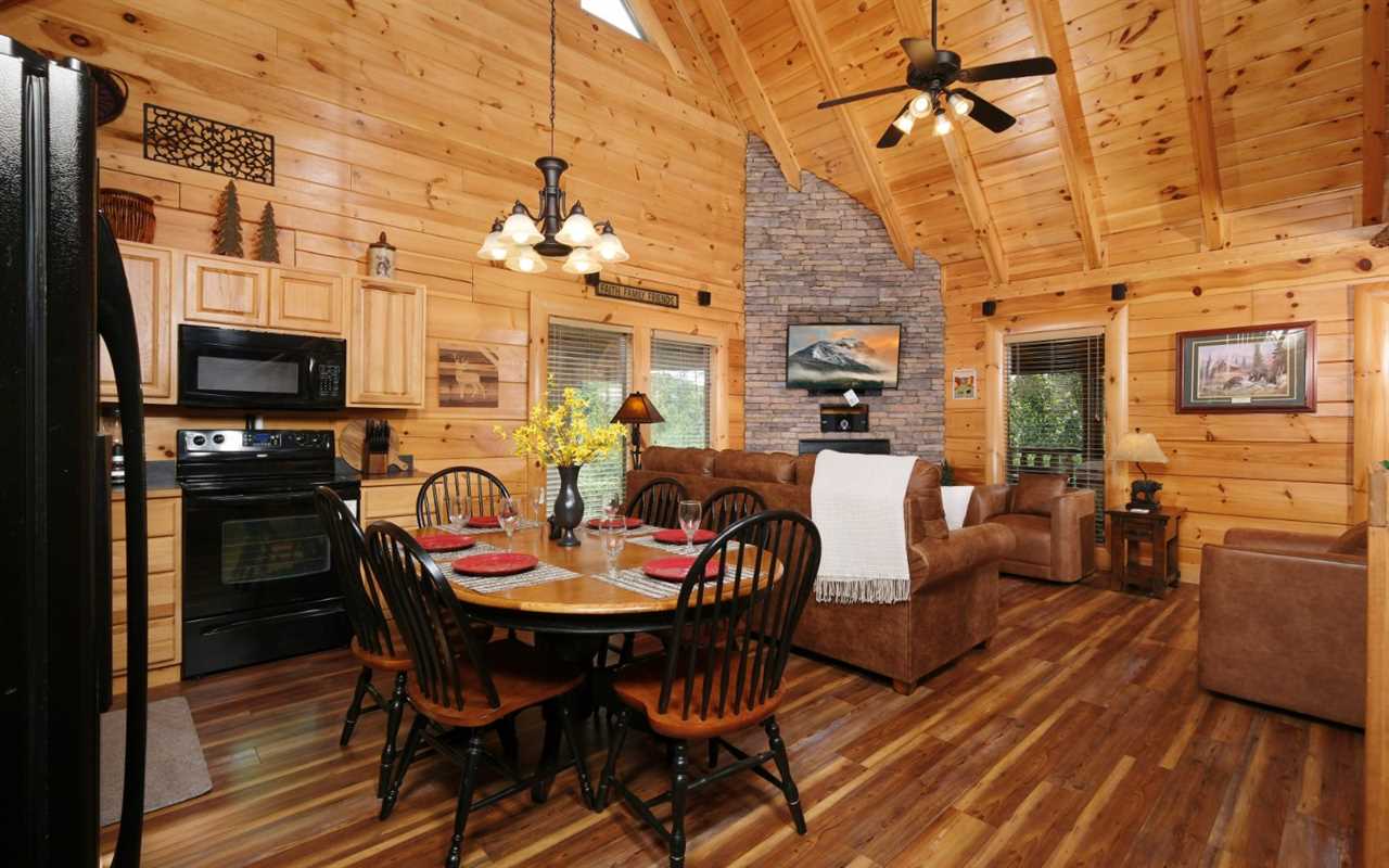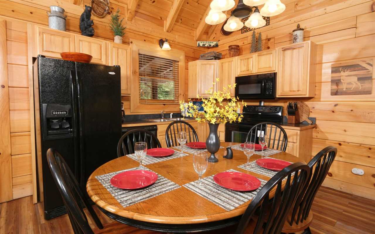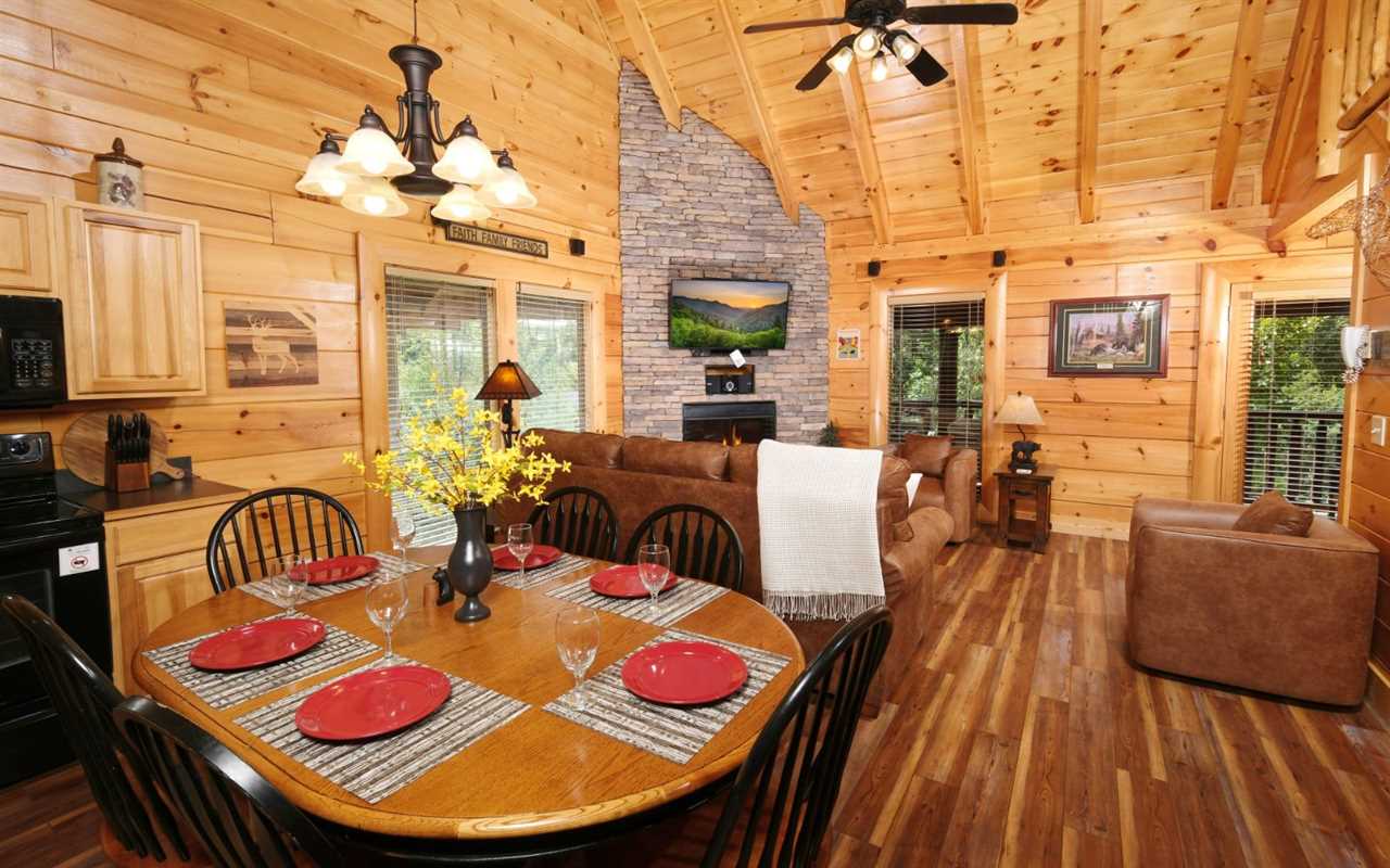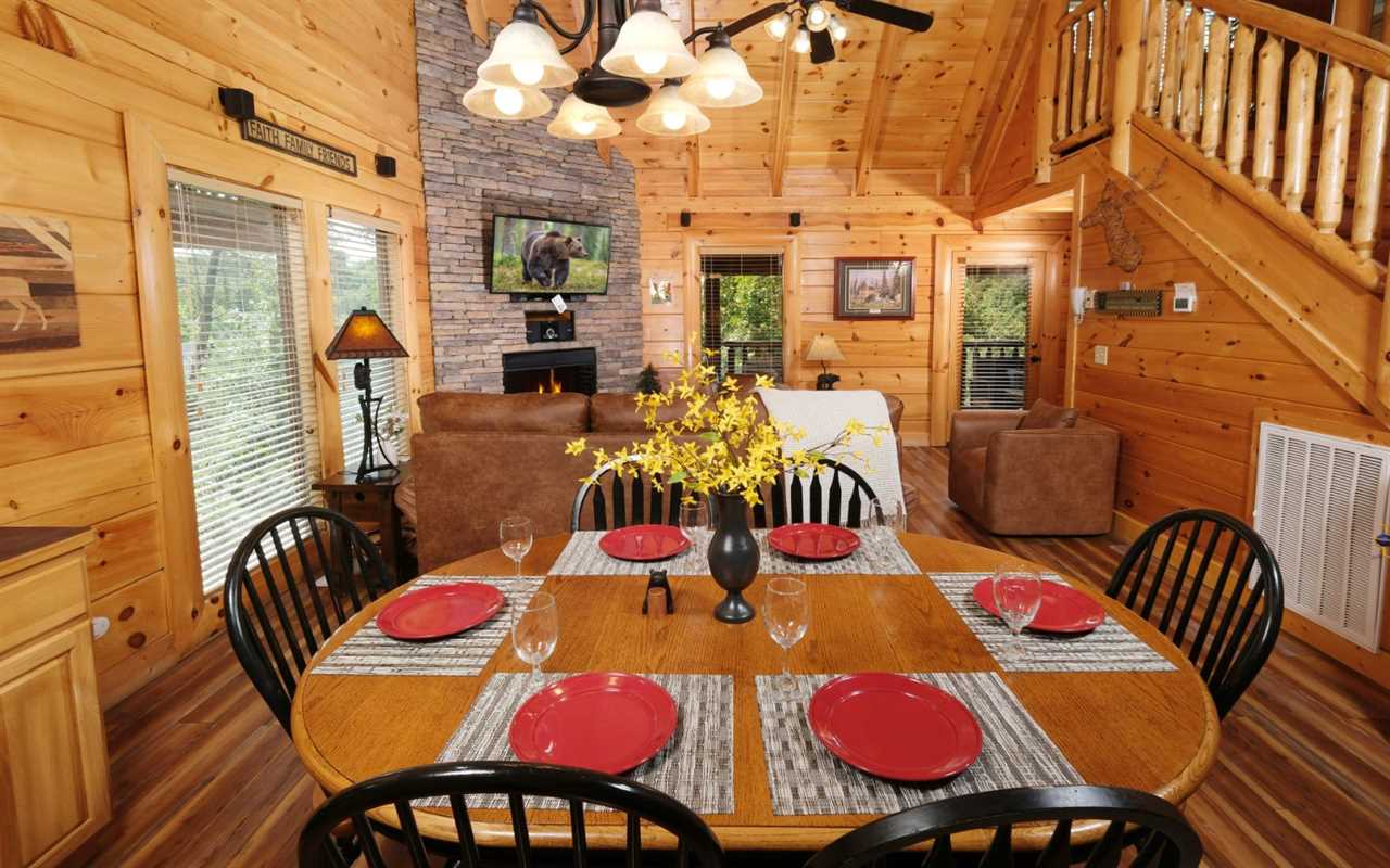 Gather around the dining table to share meals, conversation, or game nights. Natural light from nearby windows creates a welcoming setting for any occasion. It's also perfect for planning daily adventures or enjoying dessert from one of Pigeon Forge's many sweet shops.
