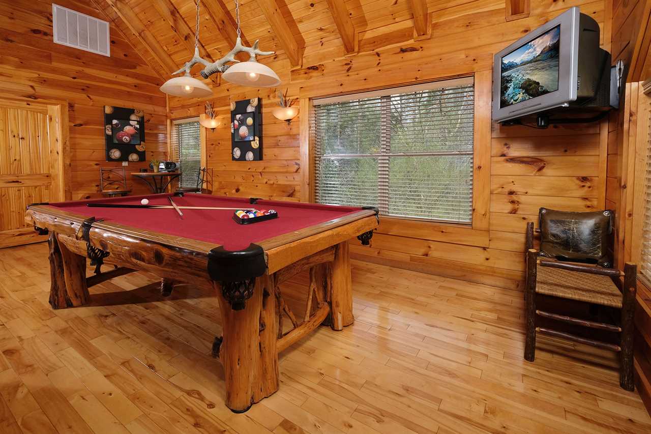 Hemlock Ridge 1713 calls you to relax, unwind, and spend quality time with family and friends. This 2-bedroom, 2-bathroom cabin offers space to sleep up to 4 guests, with plenty of amenities and conveniences for a great stay. Enjoy fresh air from the deck, cozy up inside, and enjoy the best of mountain living here! Begin your days at Hemlock Ridge 1713 with a cup of coffee or tea on the deck. Sit back on the porch swing with a good book, enjoy some fresh air, and take in the natural beauty here. Easily prepare a meal in the fully equipped kitchen and sit down to eat together. Or add to your meal using the gas grill outside. The living room is welcoming and comfortable with chic mountain seating, a fireplace, and a flatscreen TV. Bedrooms have king-size beds, and there is a bubbling outdoor hot tub where you can relax. Shoot some pool with the CD player going for fun, have a nice bath with the indoor jetted tub, and fall asleep watching TV in bed. *Hemlock Ridge 1713 does not have access to the community amenities within Chalet Village.