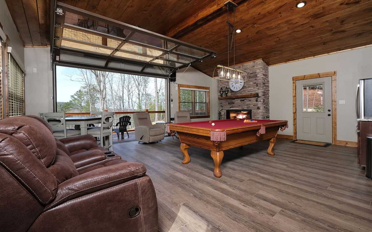 Enjoy mountain views from 3 directions and sip coffee as you relax in the rocking chairs on the deck. Along with a gorgeous, fully equipped kitchen inside, enjoy a cooking space outside that boasts a dual gas/charcoal grill and prep space. On nice nights, open the glass garage-style door near the pool table to enjoy indoor-outdoor living. Soak away stresses in the outdoor hot tub, let the kids play around in the yard, take advantage of high speed internet, play in the 2 fun rec rooms, and fall asleep in comfortable king-size beds at the end of the night.