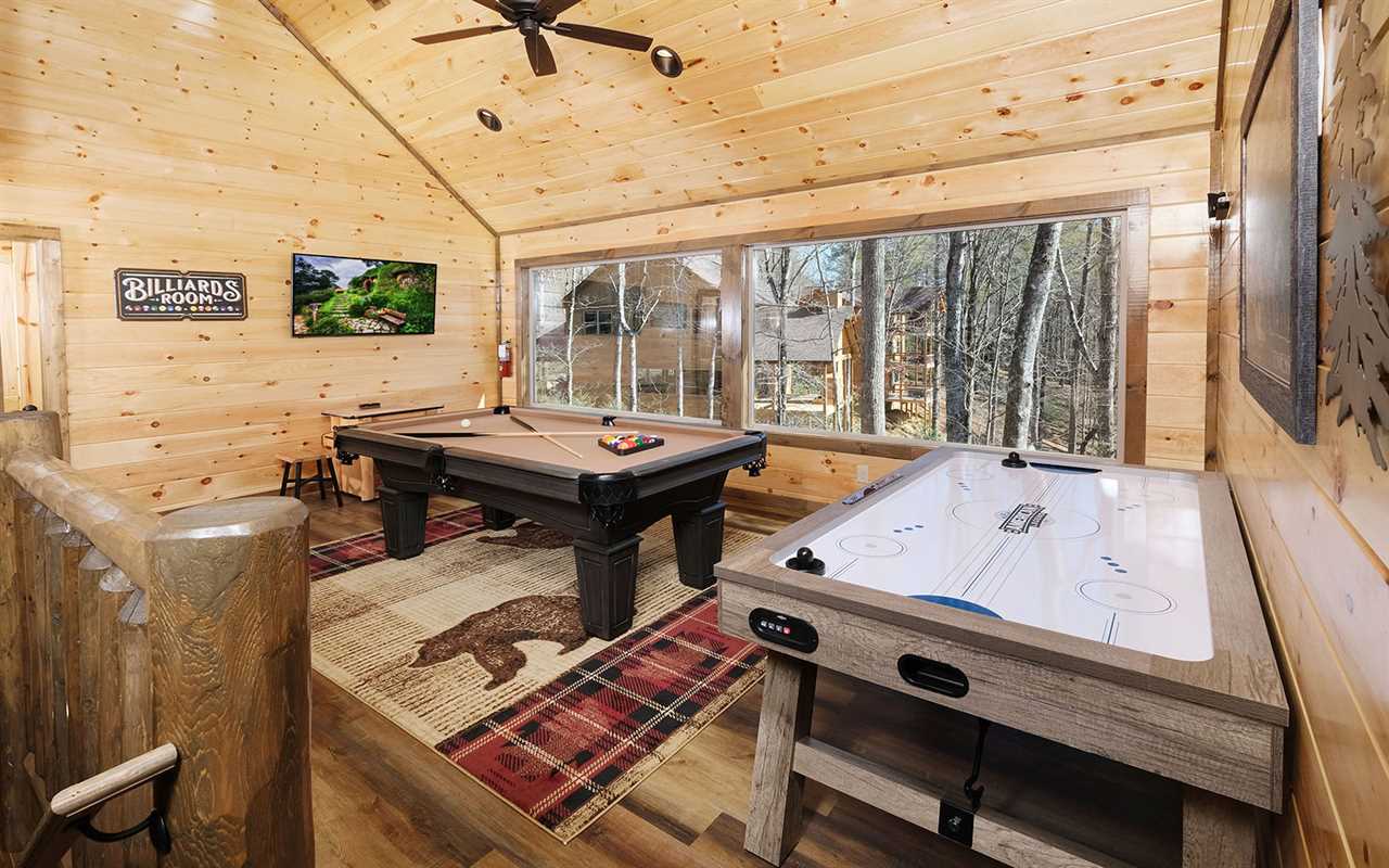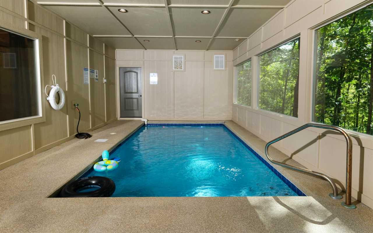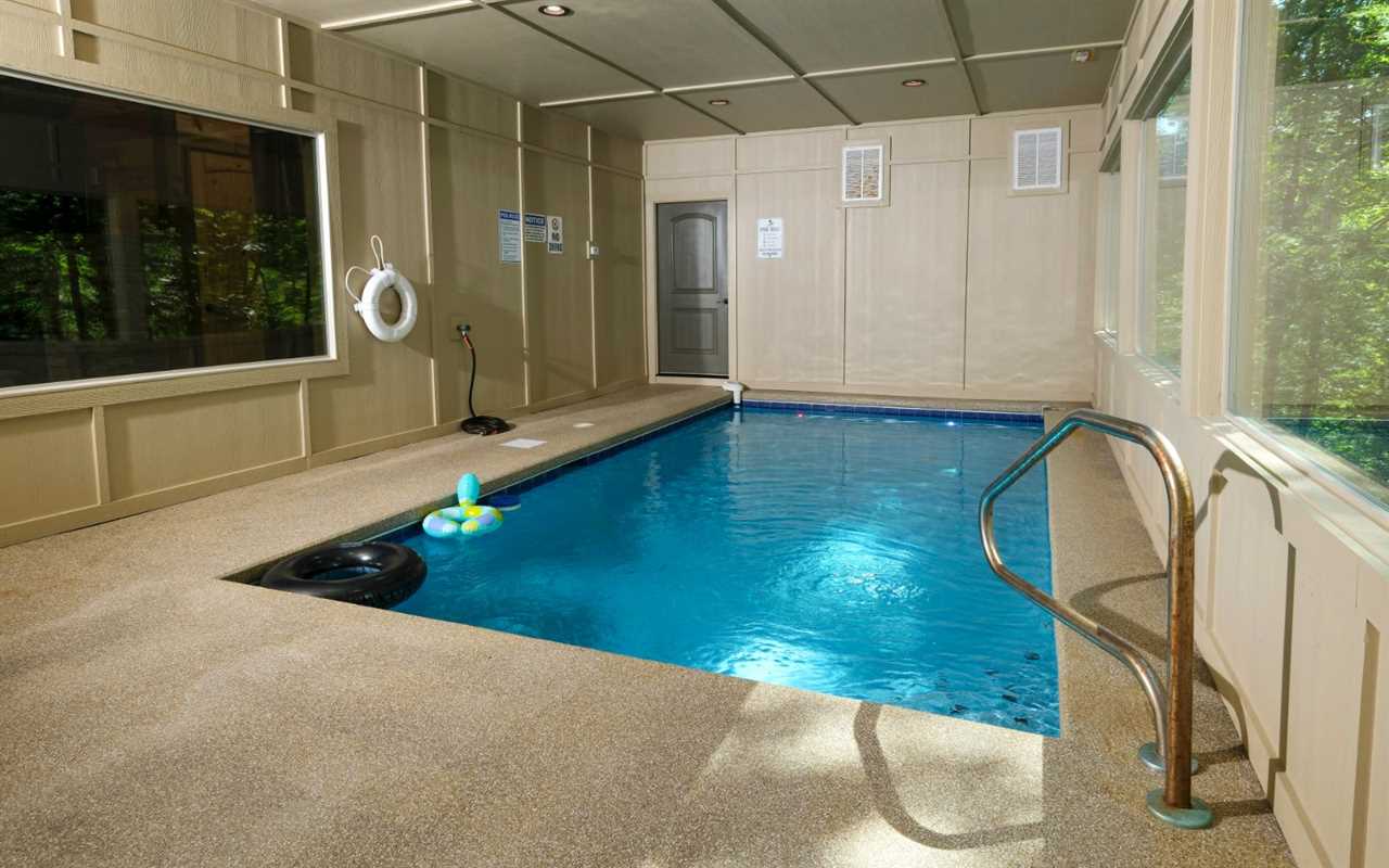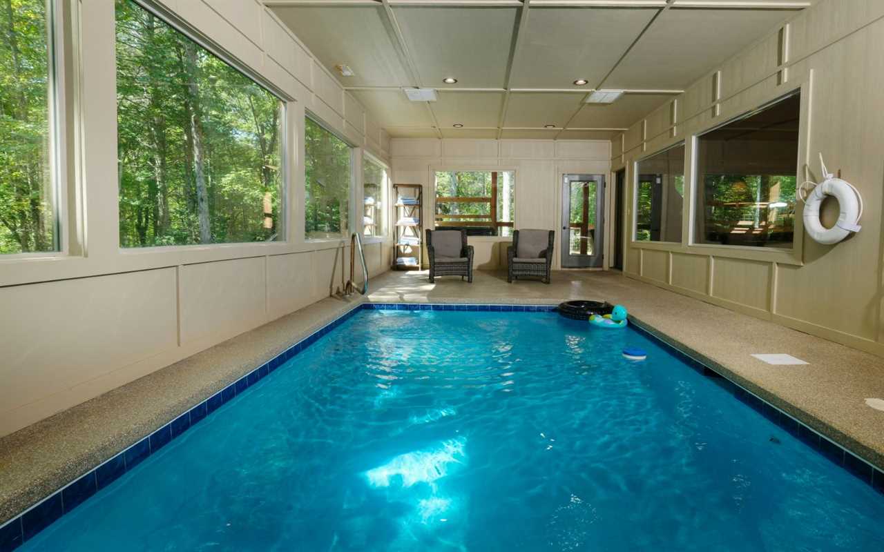 In the fully equipped kitchen, stock the double-door refrigerator/freezer, pop leftovers in the microwave, brew some coffee, and sit down at the dining table for about 10 guests. Then head to the game room for air hockey and pool overlooking the trees. There is even a private indoor pool where you can swim year-round!