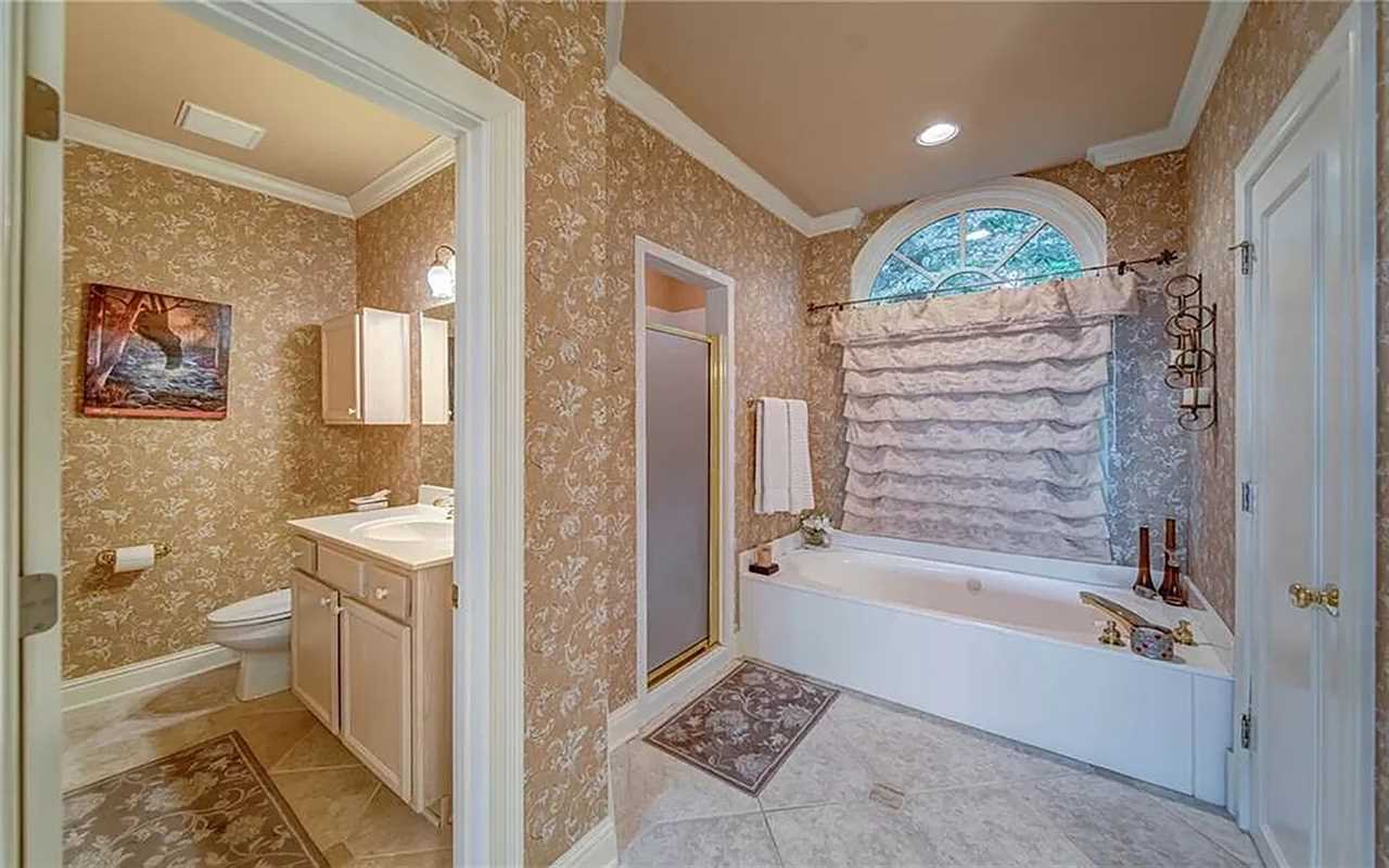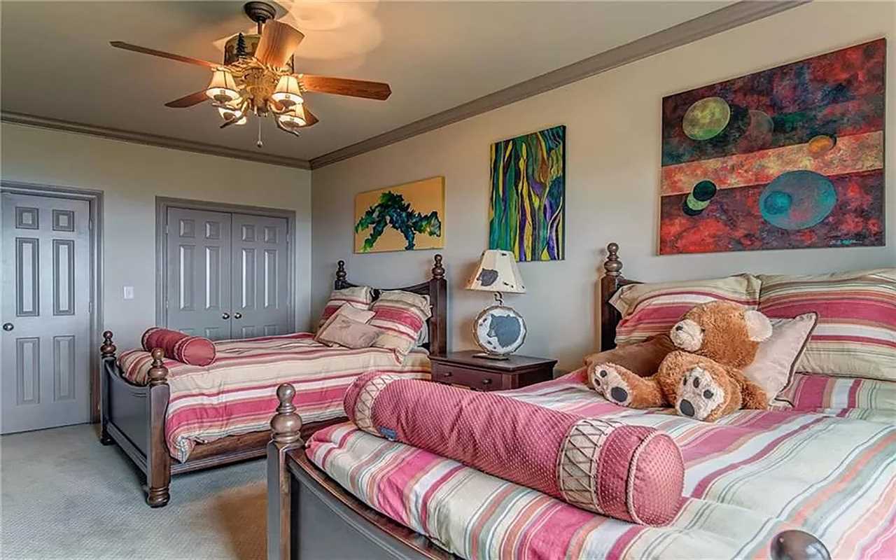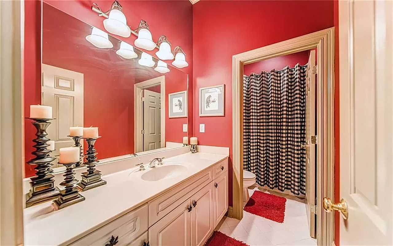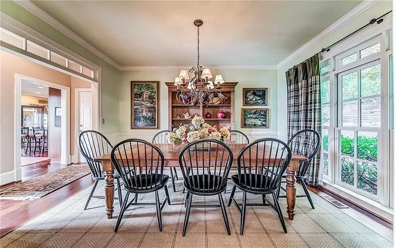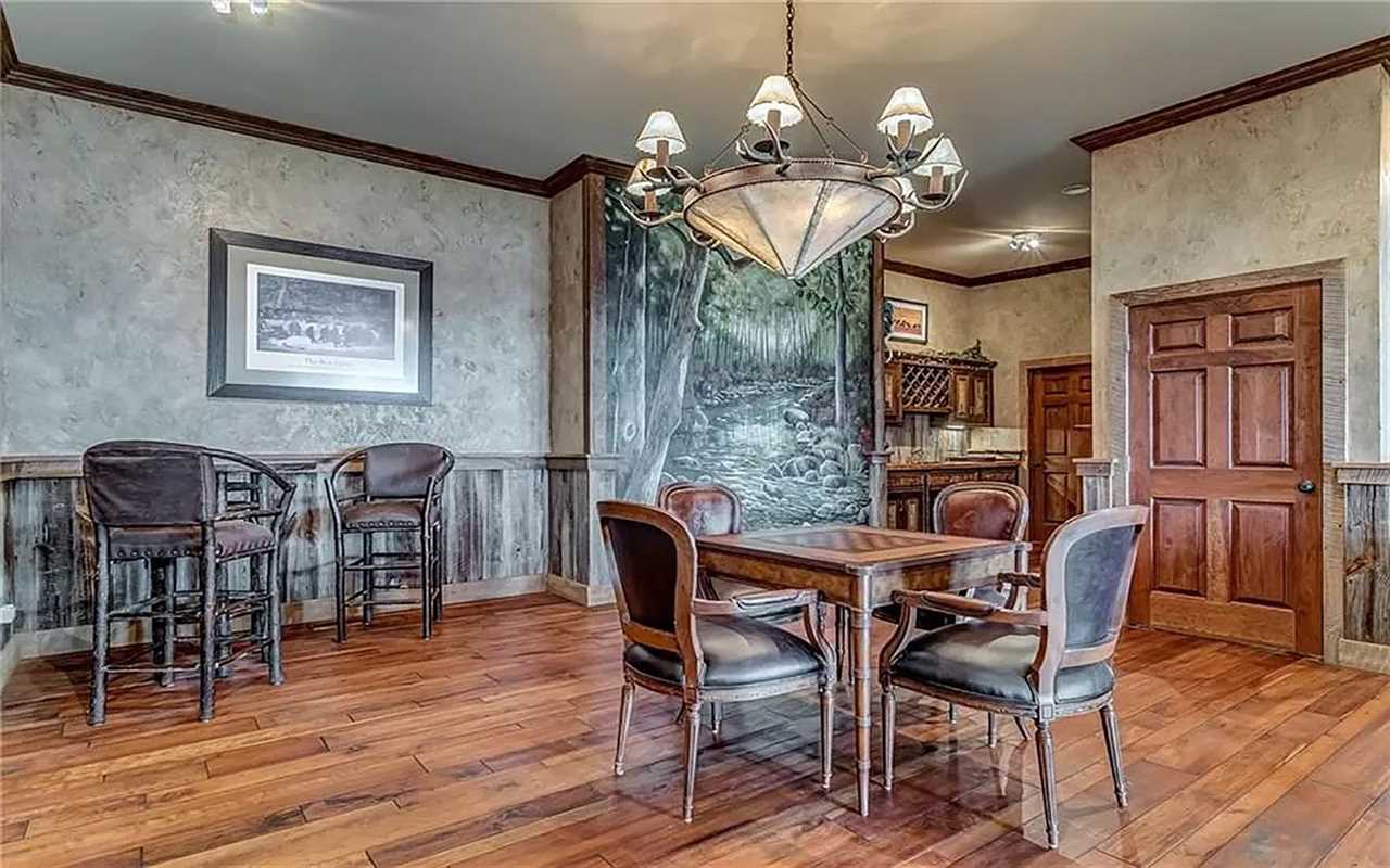 A second living area at this Big Canoe rental has another fireplace, luxe seating, and another big screen TV. Bedrooms include king and queen beds, along with convenient bathrooms for guests. The gourmet kitchen boasts dishes, appliances, and plenty of cooking tools, and there are 2 great dining spaces inside. This North Georgia mountain lodge also has a washer/dryer and Wi-Fi.