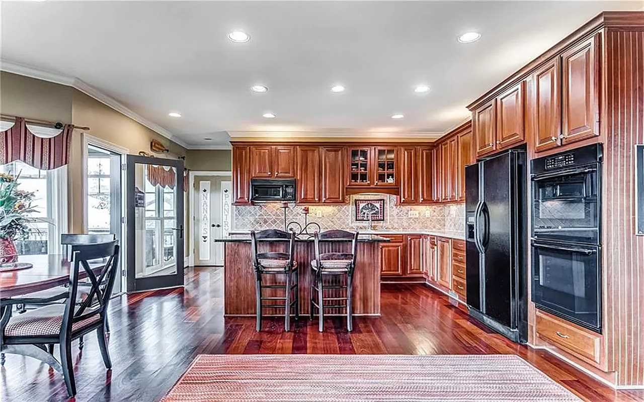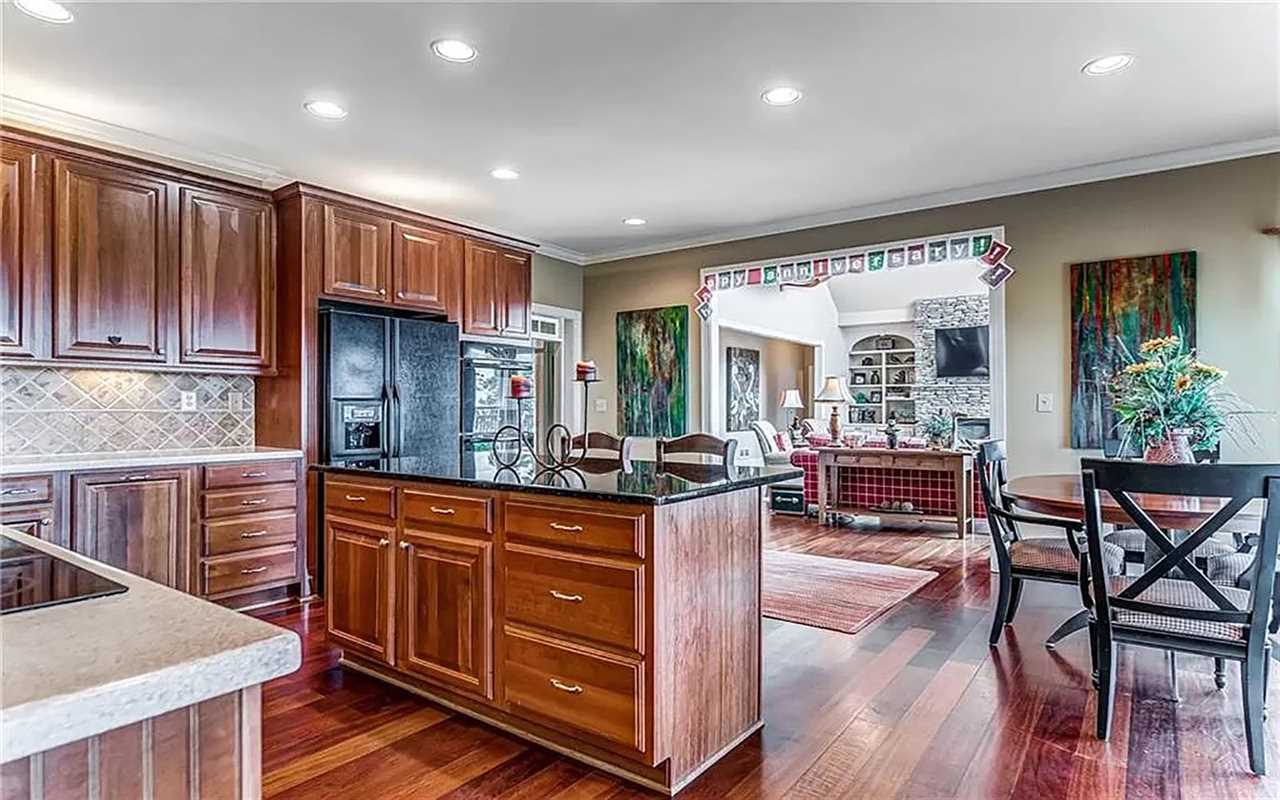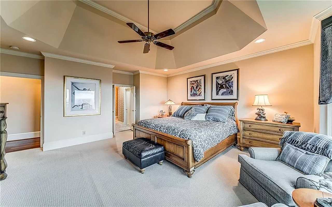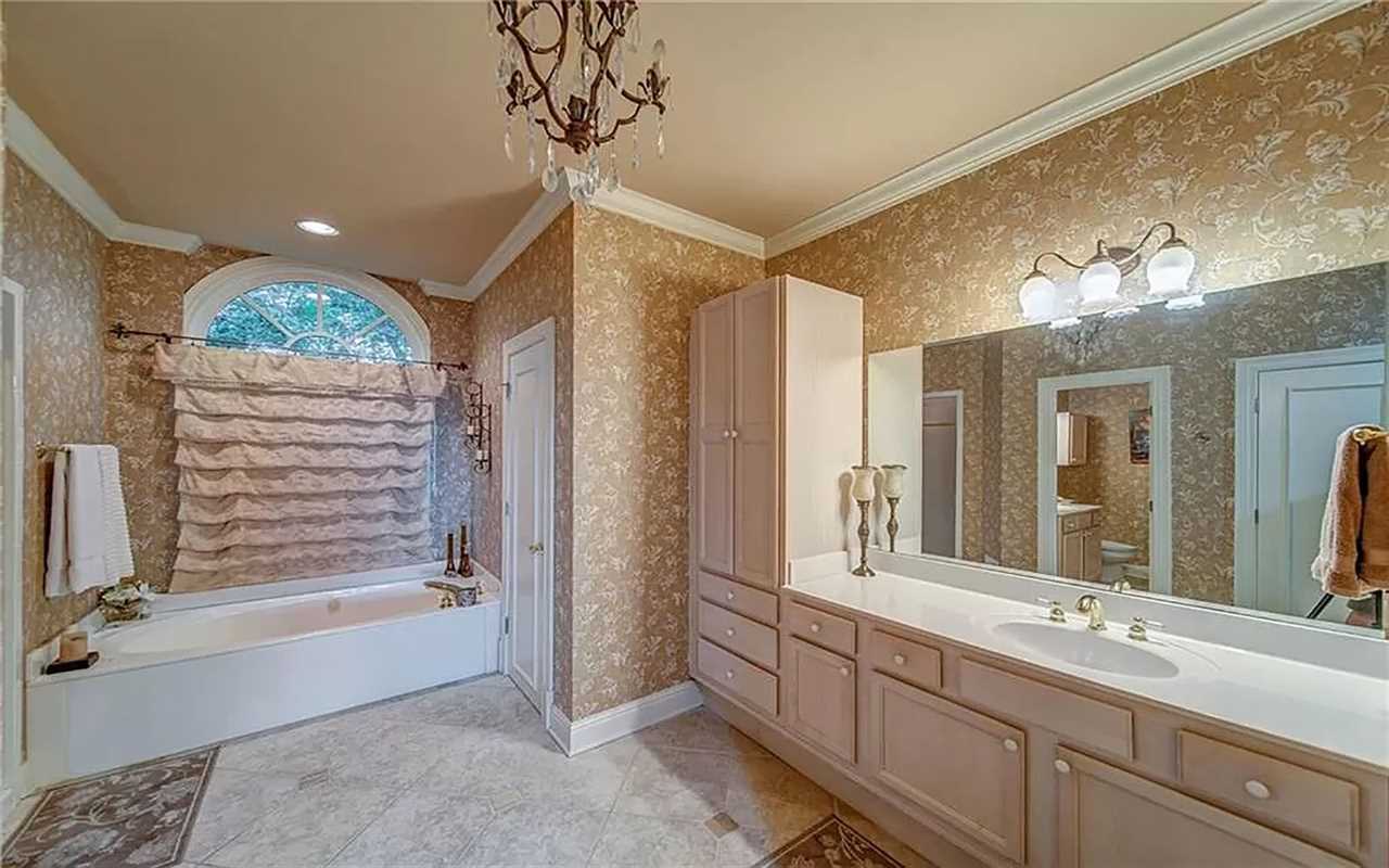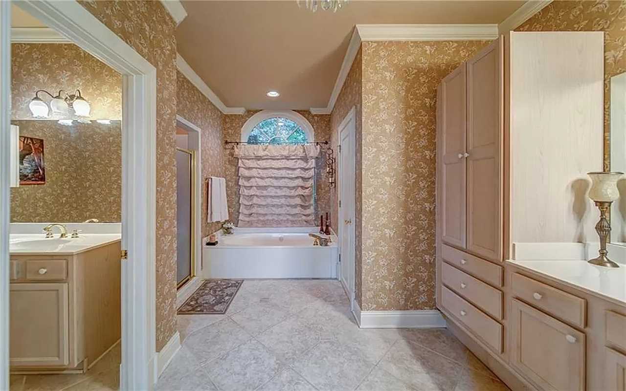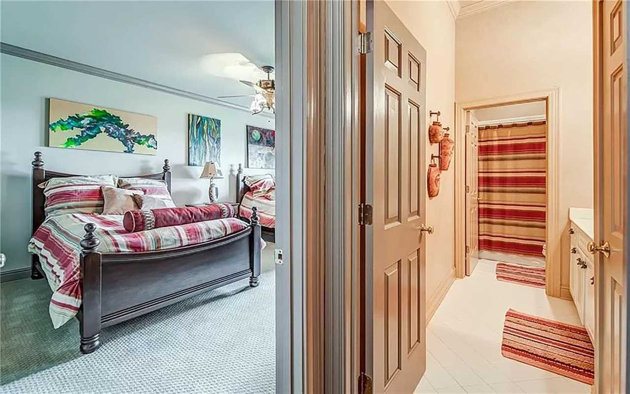 A second living area at this Big Canoe rental has another fireplace, luxe seating, and another big screen TV. Bedrooms include king and queen beds, along with convenient bathrooms for guests. The gourmet kitchen boasts dishes, appliances, and plenty of cooking tools, and there are 2 great dining spaces inside. This North Georgia mountain lodge also has a washer/dryer and Wi-Fi.