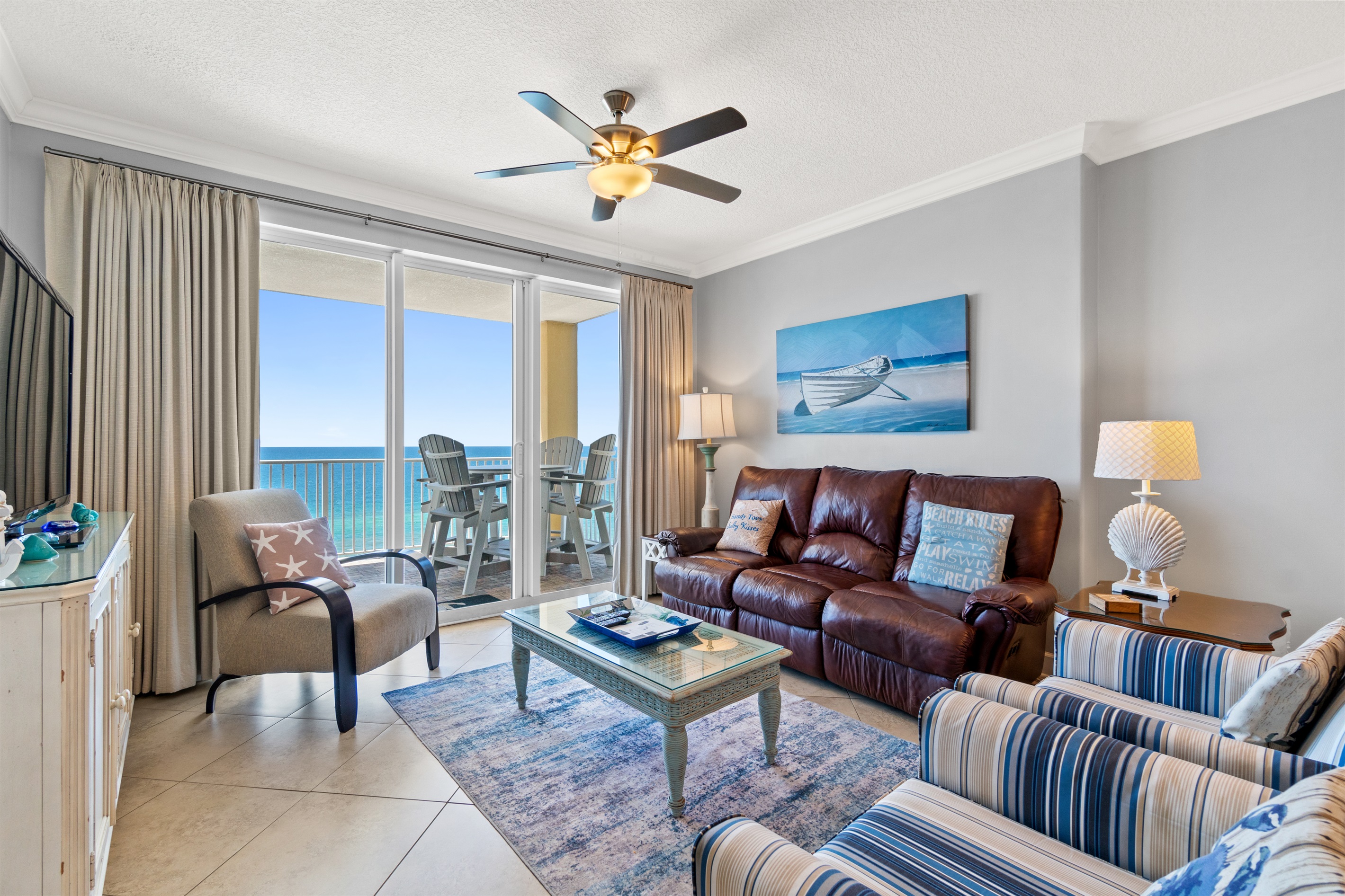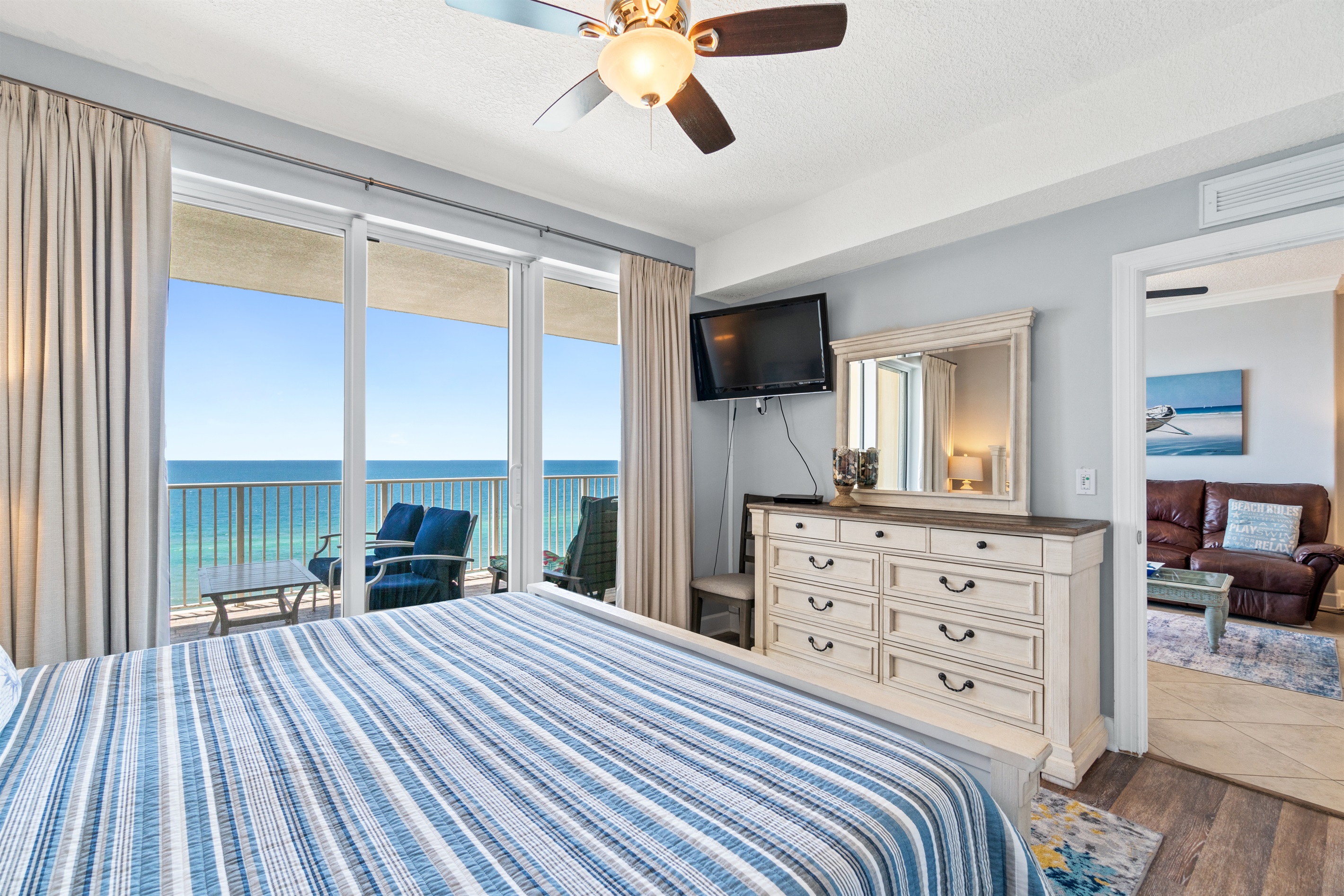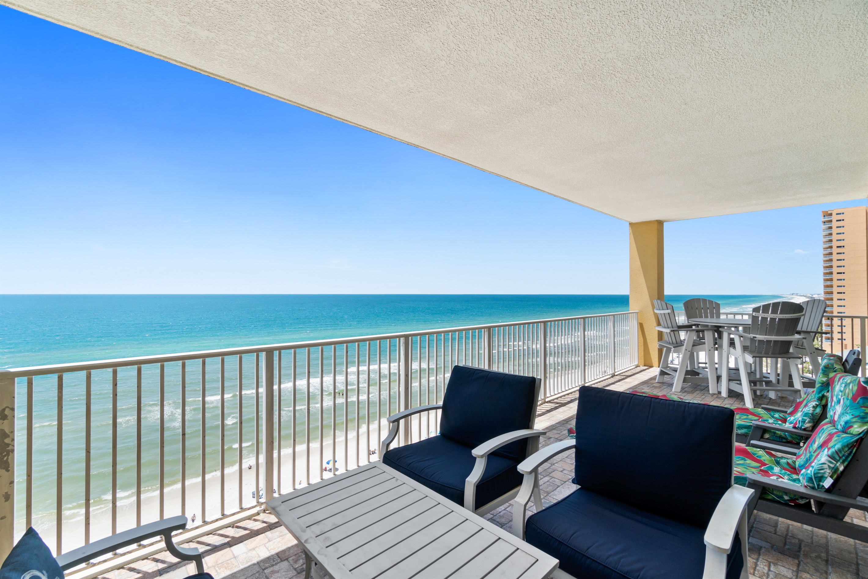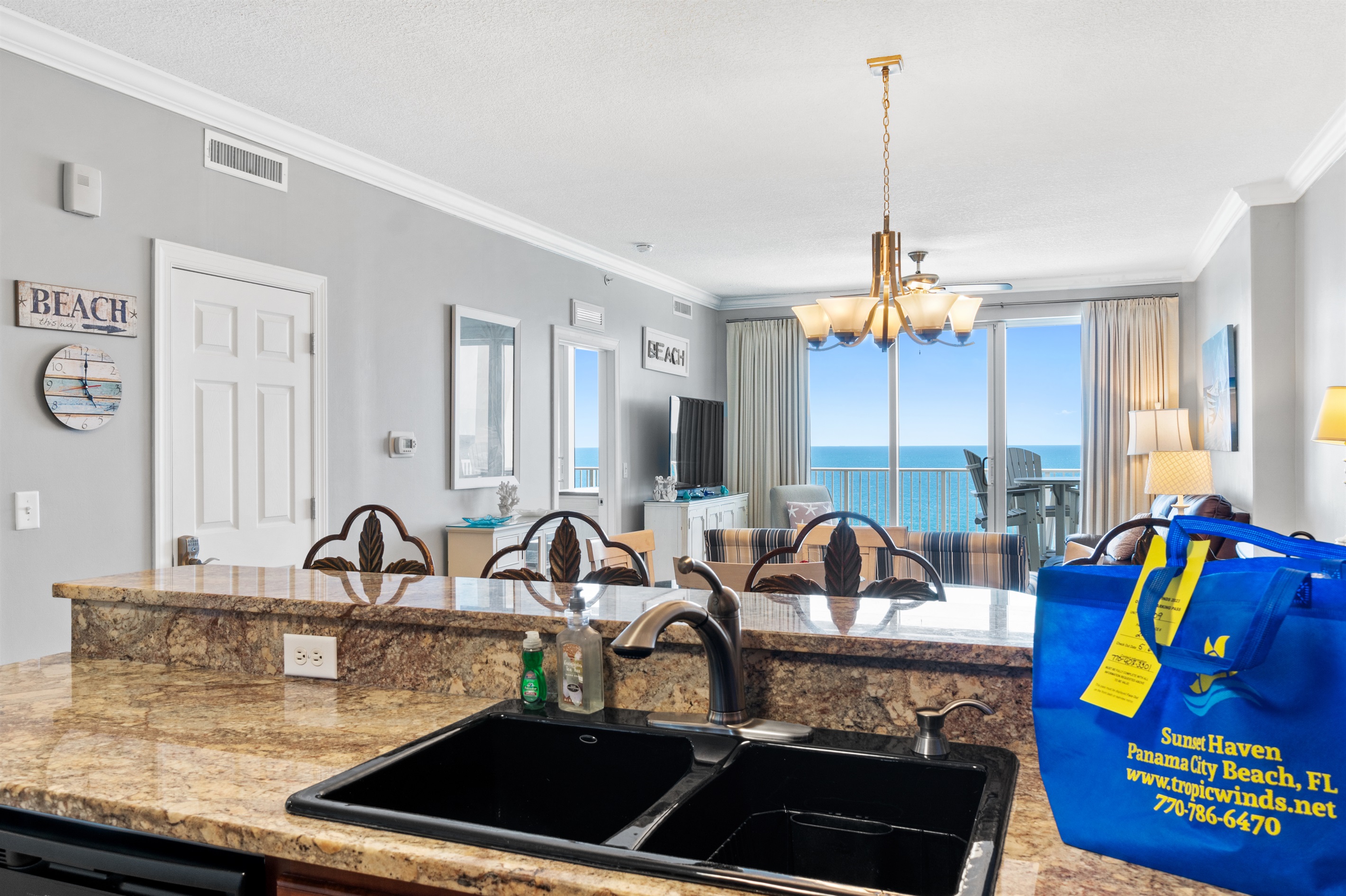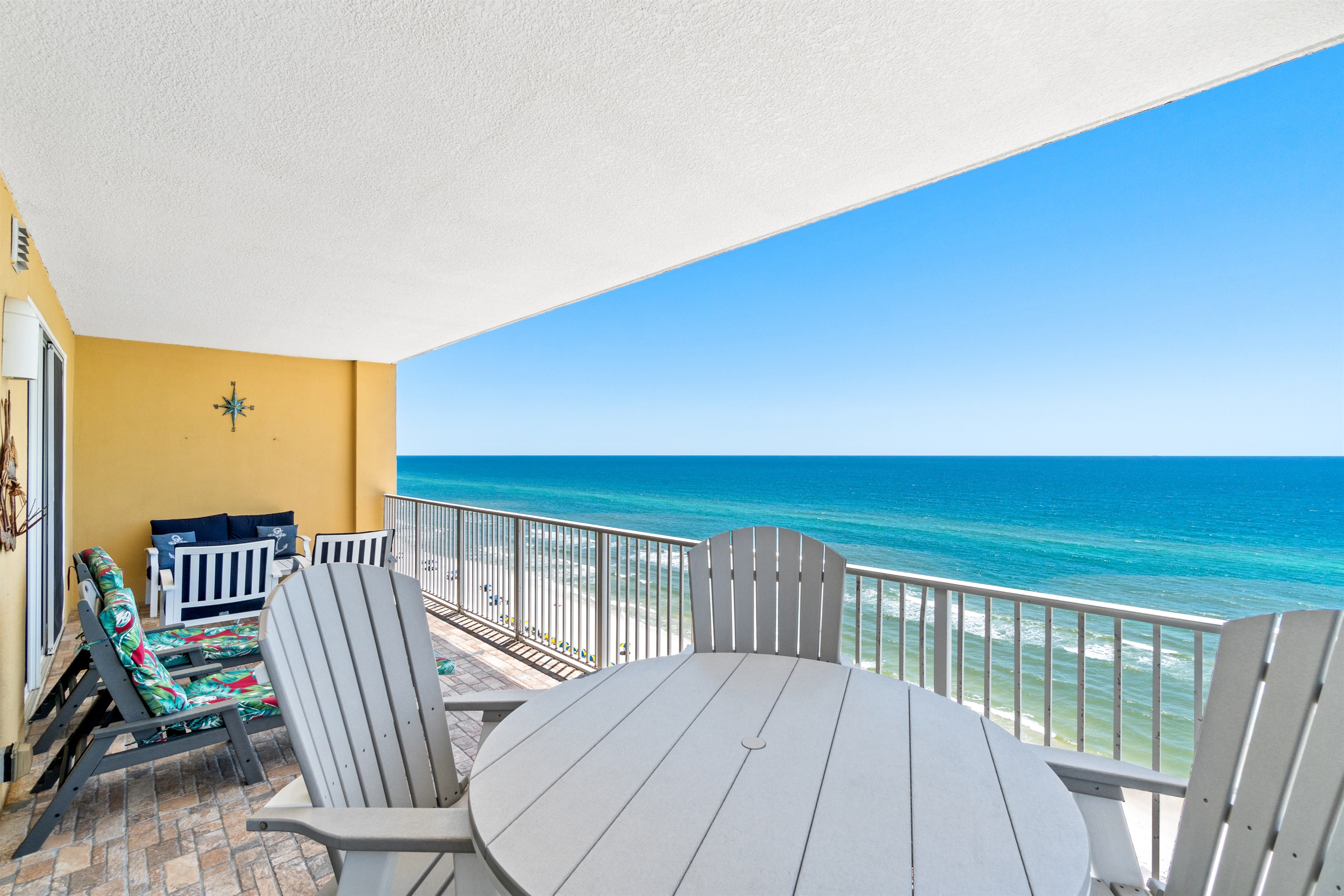 Tropic Winds Unit 1109 Outdoor Balcony Tuscan Tile - FREE Beach Serv March 15th - Oct. 2022 - End UNIT! Luxury Corner Unit! Massive views! Master Bedroom - King Bed Guest Bedroom - 2 Queen Beds Sleeps 6 - Unit 1109 - Corner Unit on the 11th Floor Transient Rental Business Tax Receipt Number 24052 City of Panama City Beach Certified Unit - Enjoy our newly purchased and renovated unit with new furniture and decor. Modern and Beachy decor. Outdoor 10x28 Balcony updated with 100% new furniture. Feel like your in the Caribbean! Relax, unwind and enjoy the perfect vacation you've been dreaming of at Tropic Winds. Tropic Winds is a 164 unit, 4 floors of private parking under condominiums, located near the prime intersection of highway 79 and Front Beach Road and close to the Northwest Florida Beaches International Airport, shopping at the fabulous Pier Park and 30A. Located on the 11th floor, Not too High and Not too Low, this contemporary professionally designed 2 bedroom, 2 full bath condo will provide you with the luxury and comfort needed to rejuvenate your mind, body and spirit. Purchased in May 2018, this unit operates on a keyless entry system. We have spared no expense with new décor and furnishings. Your condo features a well appointed kitchen with mahogany cabinets, custom granite countertops, custom backsplash and upgraded stainless steel appliances. The dining area is very spacious and will seat a total of 6 comfortably for your entertaining needs. The separate laundry room includes a stackable washer/dryer and has ample space for drying out beach towels. Condo also includes a few beach chairs for your use in the laundry room to take to the beach as well. Spend quality family time in the spacious Gulf Front living area with balcony access. Designed with luxury in mind, you will have plenty of room to relax and watch the large HD flat screen TV with DVR or surf the NET with our complimentary Wi-Fi Access. This living area is furnished with dark rich woods, glass tables and a new sofa, loveseat and chair in coastal inspired blues, grays and beige. Your 2 bedroom condo sleeps 6 comfortably and offers a scenic Gulf front master bedroom with balcony access. The master bedroom offers a King bed with a beautiful new coastal quilt. The guest bedroom offers a 2 new queen beds and mattresses. You will find your own private tile bath with walk in shower and other decor off of each bedroom. All bedrooms are equipped with HD flat screen TVS and DVD players. All areas have upgraded lighting fixtures and fans as well as black-out lined custom window coverings. This impressive Tropic Winds luxury condo offers all the comforts of home without compromising quality. Staying at our Tropic Winds condo will allow you to experience the most incredible sunsets and the most beautiful views of the Emerald Coast on the best balcony on the beach. The balcony has a new dining table set and a new love seat and 2 chairs with plush cushions and a coffee table perfect for your morning coffee or afternoon cocktail. In 2018 we have added all new Master BR new furniture. Awesome looking contemporary tile. Deluxe Balcony 10x28 balcony looks amazing! We promise you will not be disappointed! This condo has it all!! Book your fabulous vacation today. **All guests who stay between March 15th and October 31st will receive daily complimentary beach chair/umbrella service.** Keywords: Come to Panama City Beach for all it has to offer!!! you are looking for the perfect gulf-front vacation condominium, you have found it. This condo has a NEW, luxurious, contemporary bright colors that are a feast for your eyes. It has a huge balcony and everywhere you look you see water, sun and sand. The kitchen has everything you need including stainless steel appliances and high grade granite countertops. The one master King Bedroom Suite and guest Bedroom which has 2 queen beds have amazingly comfortable beds and connecting bathrooms with even more granite. Experience the relaxing sound of the Gulf of Mexico, the tropical breezes, and spectacular sunsets from the balcony of this luxury condominium. The LIVING AREA AND MASTER BEDROOM overlook sugar white sand beaches and the beautiful emerald waters of the Gulf of Mexico. Free HIGH SPEED internet! This home is located on the quiet, west-end of Panama City Beach - 1 mile west of Route 79 with easy access to Hwy. 98 (Back Beach Road) and the new Airport . This home is 1.8 miles from Pier Park -a new shopping and entertainment complex including more than 100 shops/restaurants and the 16 Screen Grand Theater. Keywords: beachfront, condominium , quiet, parking in building, assigned parking, fully equipped, Wi Fi, wireless internet, oceanfront, phone, 3 HDTVs, swimming pool, gulf-view hot tub, turquoise colors, huge balcony, laundry room, 11th floor, indoor parking, sunset views, upscale retreat