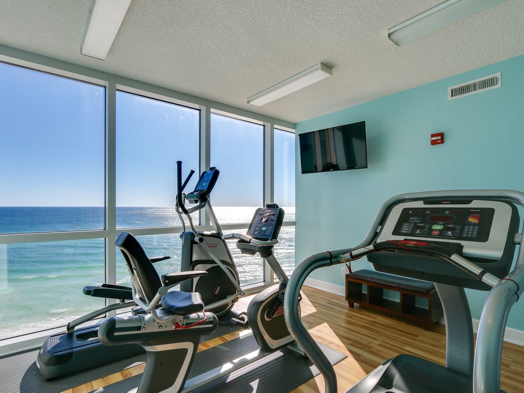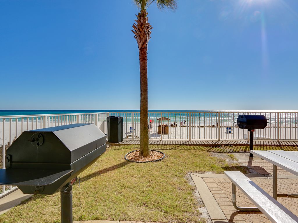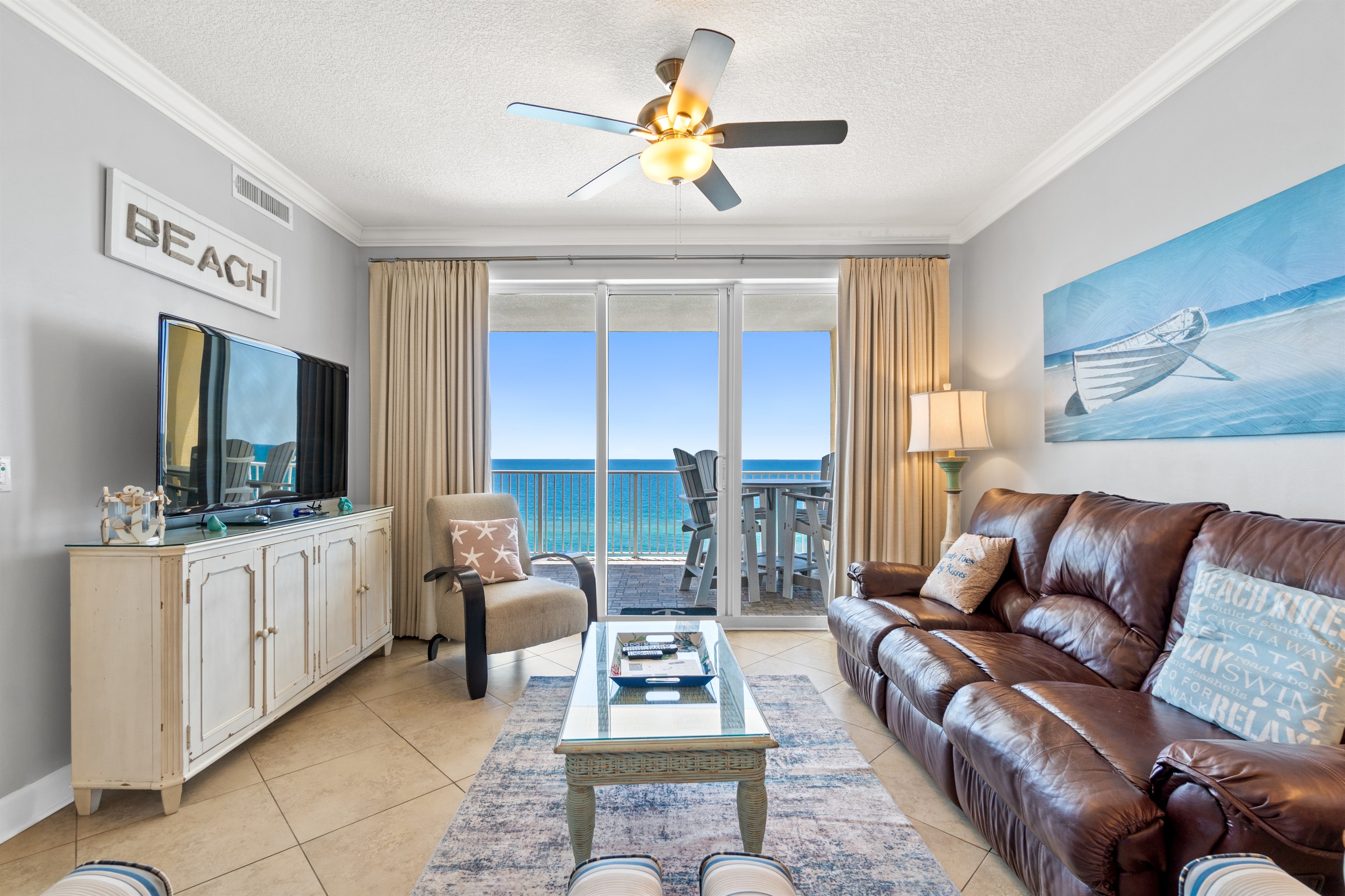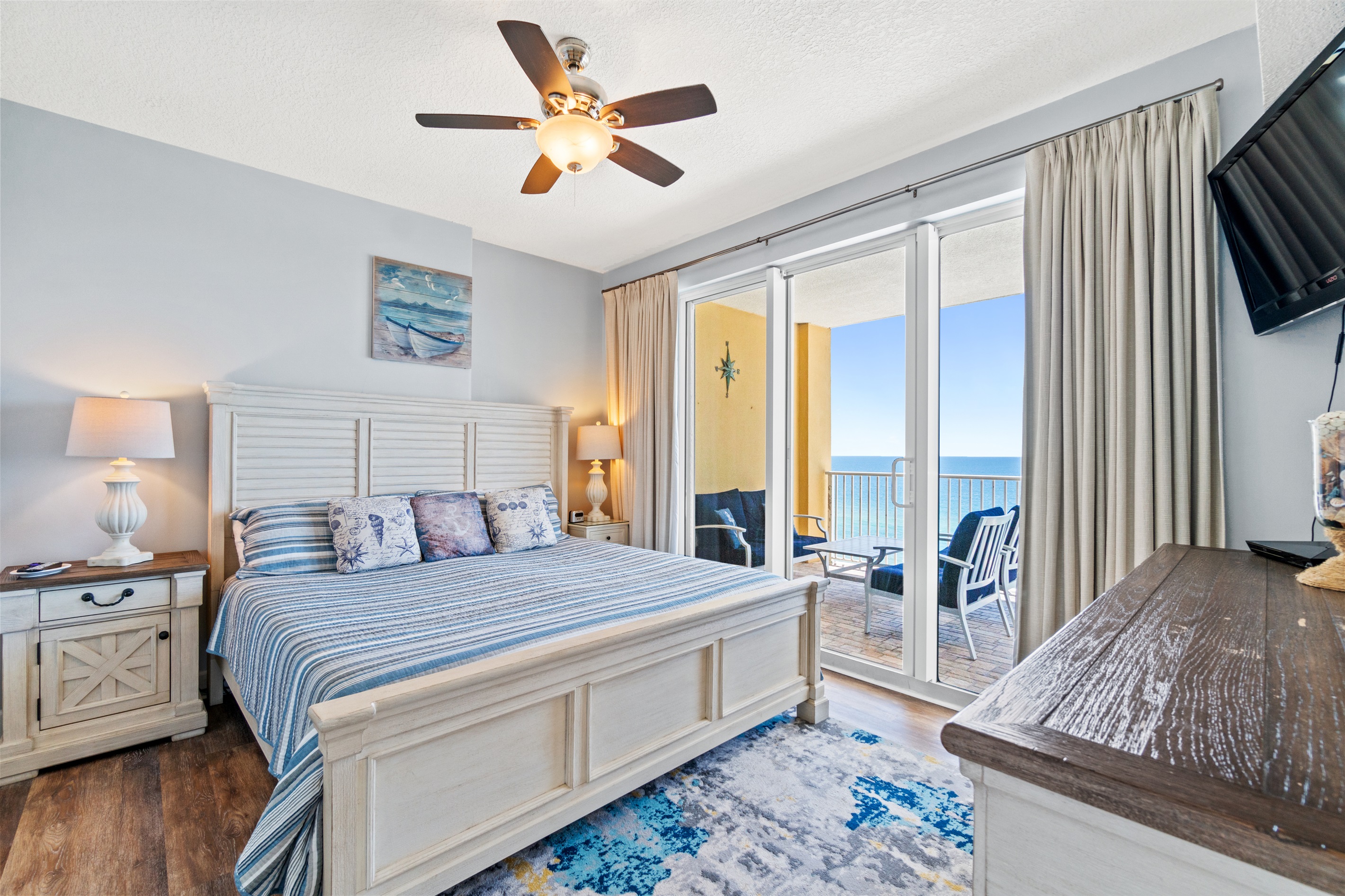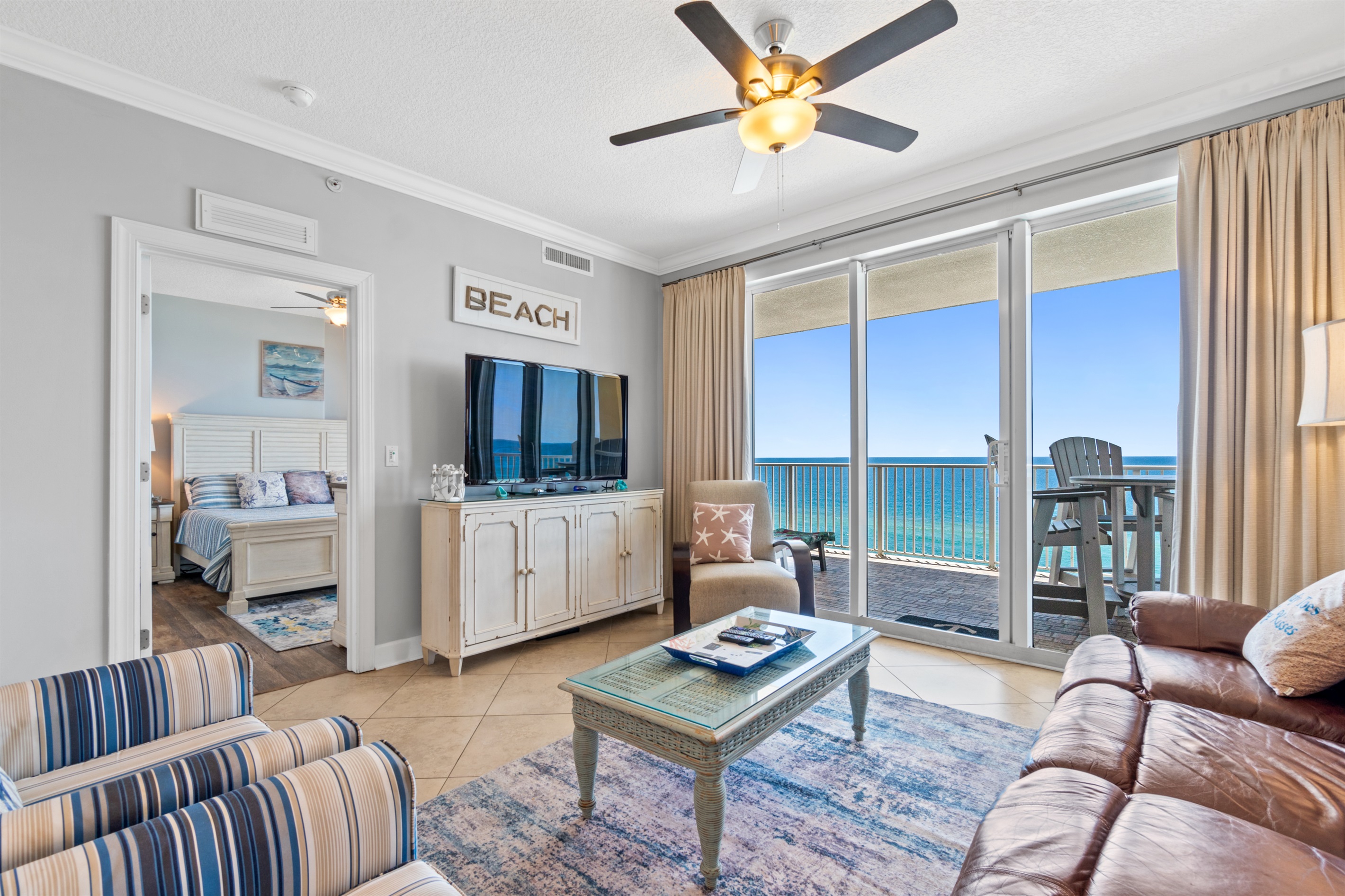 Tropic Winds Unit 1109 Outdoor Balcony Tuscan Tile - FREE Beach Serv March 15th - Oct. 2022 - End UNIT! Luxury Corner Unit! Massive views! Master Bedroom - King Bed Guest Bedroom - 2 Queen Beds Sleeps 6 - Unit 1109 - Corner Unit on the 11th Floor Transient Rental Business Tax Receipt Number 24052 City of Panama City Beach Certified Unit - Enjoy our newly purchased and renovated unit with new furniture and decor. Modern and Beachy decor. Outdoor 10x28 Balcony updated with 100% new furniture. Feel like your in the Caribbean! Relax, unwind and enjoy the perfect vacation you've been dreaming of at Tropic Winds. Tropic Winds is a 164 unit, 4 floors of private parking under condominiums, located near the prime intersection of highway 79 and Front Beach Road and close to the Northwest Florida Beaches International Airport, shopping at the fabulous Pier Park and 30A. Located on the 11th floor, Not too High and Not too Low, this contemporary professionally designed 2 bedroom, 2 full bath condo will provide you with the luxury and comfort needed to rejuvenate your mind, body and spirit. Purchased in May 2018, this unit operates on a keyless entry system. We have spared no expense with new décor and furnishings. Your condo features a well appointed kitchen with mahogany cabinets, custom granite countertops, custom backsplash and upgraded stainless steel appliances. The dining area is very spacious and will seat a total of 6 comfortably for your entertaining needs. The separate laundry room includes a stackable washer/dryer and has ample space for drying out beach towels. Condo also includes a few beach chairs for your use in the laundry room to take to the beach as well. Spend quality family time in the spacious Gulf Front living area with balcony access. Designed with luxury in mind, you will have plenty of room to relax and watch the large HD flat screen TV with DVR or surf the NET with our complimentary Wi-Fi Access. This living area is furnished with dark rich woods, glass tables and a new sofa, loveseat and chair in coastal inspired blues, grays and beige. Your 2 bedroom condo sleeps 6 comfortably and offers a scenic Gulf front master bedroom with balcony access. The master bedroom offers a King bed with a beautiful new coastal quilt. The guest bedroom offers a 2 new queen beds and mattresses. You will find your own private tile bath with walk in shower and other decor off of each bedroom. All bedrooms are equipped with HD flat screen TVS and DVD players. All areas have upgraded lighting fixtures and fans as well as black-out lined custom window coverings. This impressive Tropic Winds luxury condo offers all the comforts of home without compromising quality. Staying at our Tropic Winds condo will allow you to experience the most incredible sunsets and the most beautiful views of the Emerald Coast on the best balcony on the beach. The balcony has a new dining table set and a new love seat and 2 chairs with plush cushions and a coffee table perfect for your morning coffee or afternoon cocktail. In 2018 we have added all new Master BR new furniture. Awesome looking contemporary tile. Deluxe Balcony 10x28 balcony looks amazing! We promise you will not be disappointed! This condo has it all!! Book your fabulous vacation today. **All guests who stay between March 15th and October 31st will receive daily complimentary beach chair/umbrella service.** Keywords: Come to Panama City Beach for all it has to offer!!! you are looking for the perfect gulf-front vacation condominium, you have found it. This condo has a NEW, luxurious, contemporary bright colors that are a feast for your eyes. It has a huge balcony and everywhere you look you see water, sun and sand. The kitchen has everything you need including stainless steel appliances and high grade granite countertops. The one master King Bedroom Suite and guest Bedroom which has 2 queen beds have amazingly comfortable beds and connecting bathrooms with even more granite. Experience the relaxing sound of the Gulf of Mexico, the tropical breezes, and spectacular sunsets from the balcony of this luxury condominium. The LIVING AREA AND MASTER BEDROOM overlook sugar white sand beaches and the beautiful emerald waters of the Gulf of Mexico. Free HIGH SPEED internet! This home is located on the quiet, west-end of Panama City Beach - 1 mile west of Route 79 with easy access to Hwy. 98 (Back Beach Road) and the new Airport . This home is 1.8 miles from Pier Park -a new shopping and entertainment complex including more than 100 shops/restaurants and the 16 Screen Grand Theater. Keywords: beachfront, condominium , quiet, parking in building, assigned parking, fully equipped, Wi Fi, wireless internet, oceanfront, phone, 3 HDTVs, swimming pool, gulf-view hot tub, turquoise colors, huge balcony, laundry room, 11th floor, indoor parking, sunset views, upscale retreat