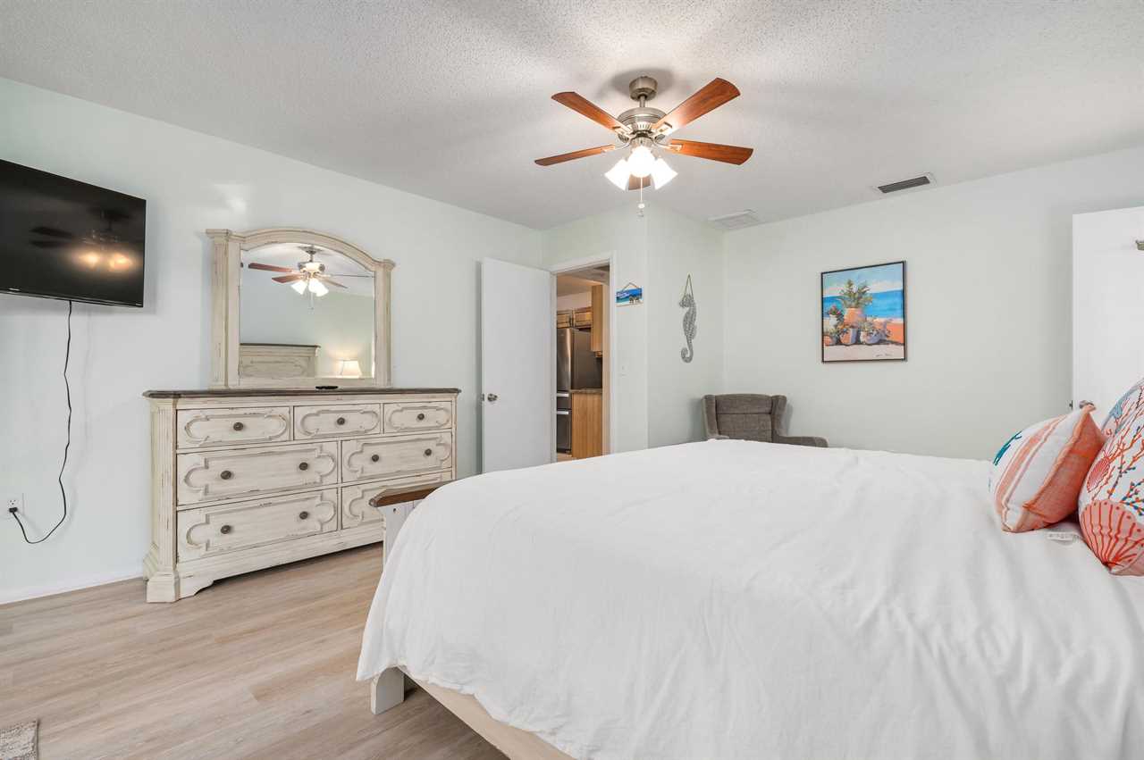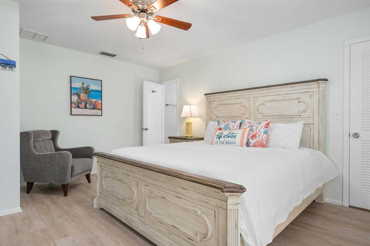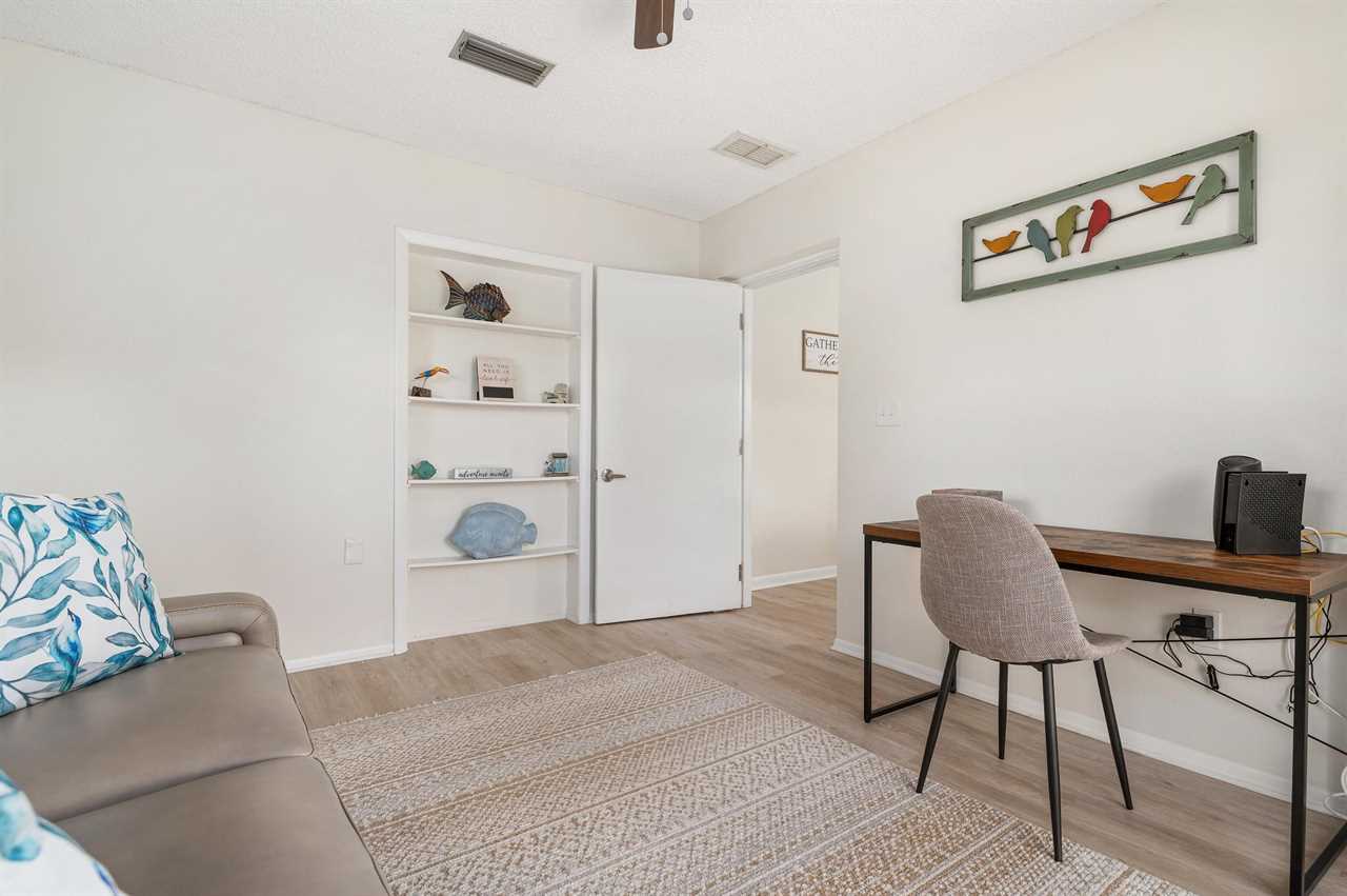 Trying to figure out sleeping arrangements? The master bedroom overlooks the pool and garden area. The room features a king-sized bed, a wall-mounted television, a walk-in closet, and an en-suite bathroom. The other guest rooms are located towards the front of the house and include one queen bedroom and another bedroom with two XL (extra long) twin beds. Both bedrooms have access to the hallway bathroom with a tub/shower combination. Office/Den - Full pullout sofa bed. This room also contains a desk if you need to do any work during your stay.
