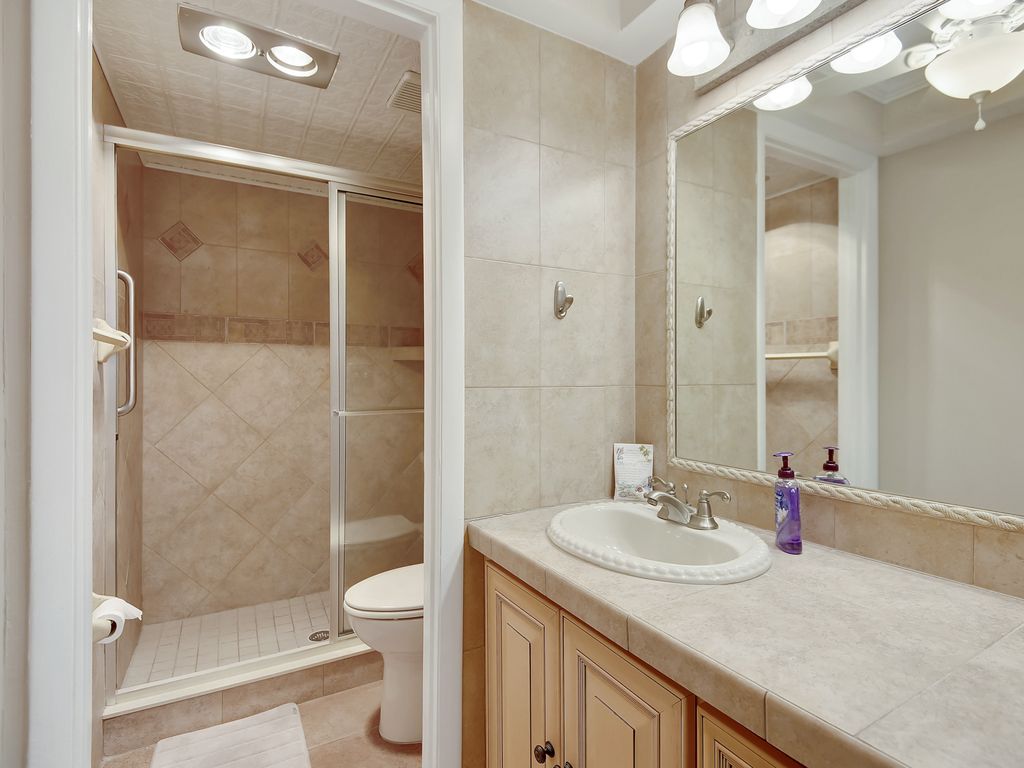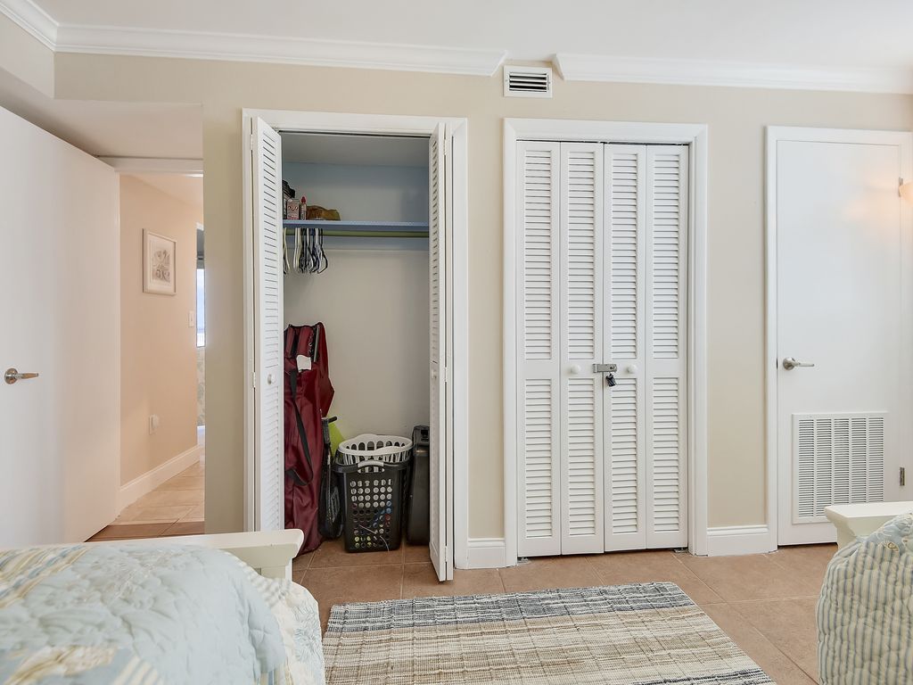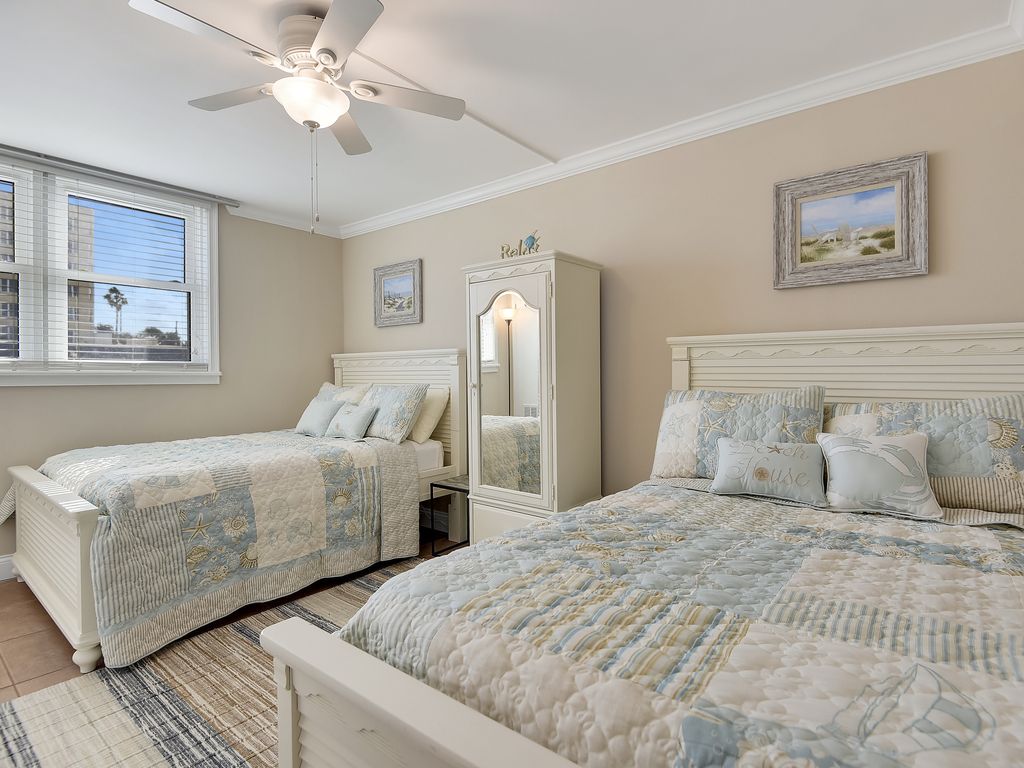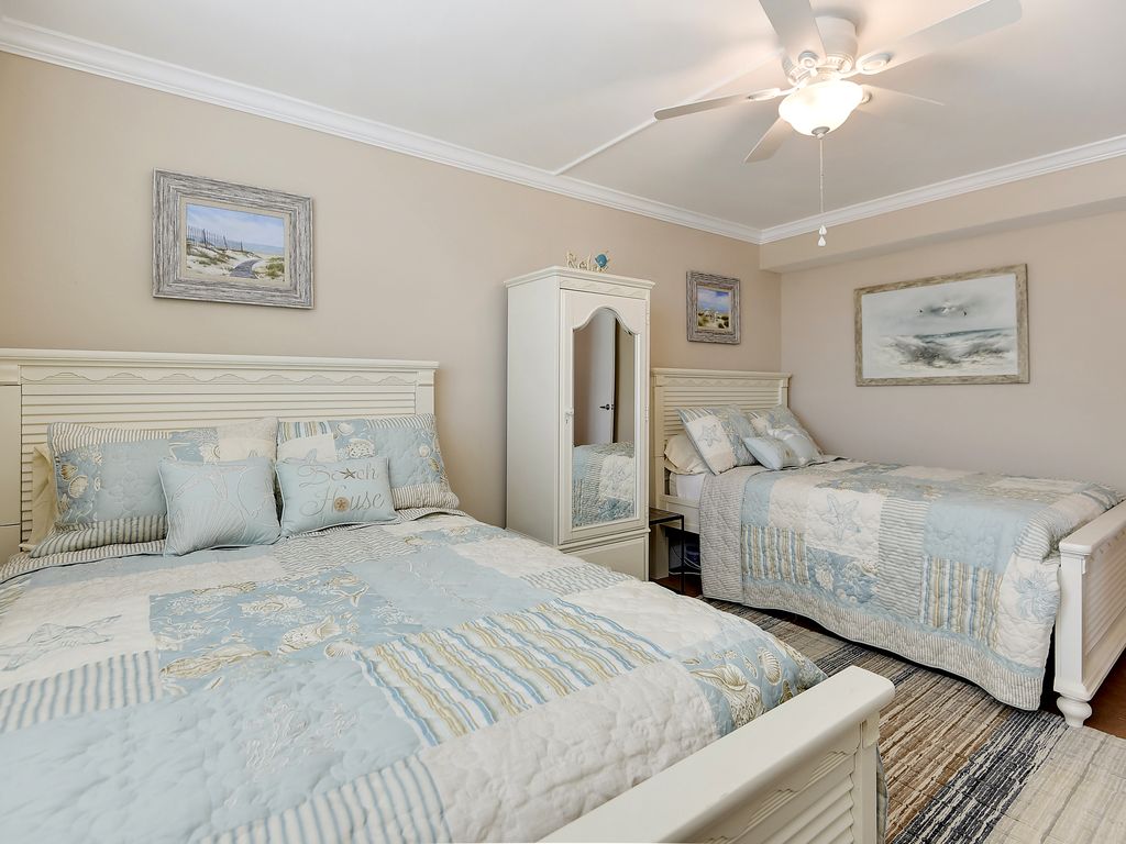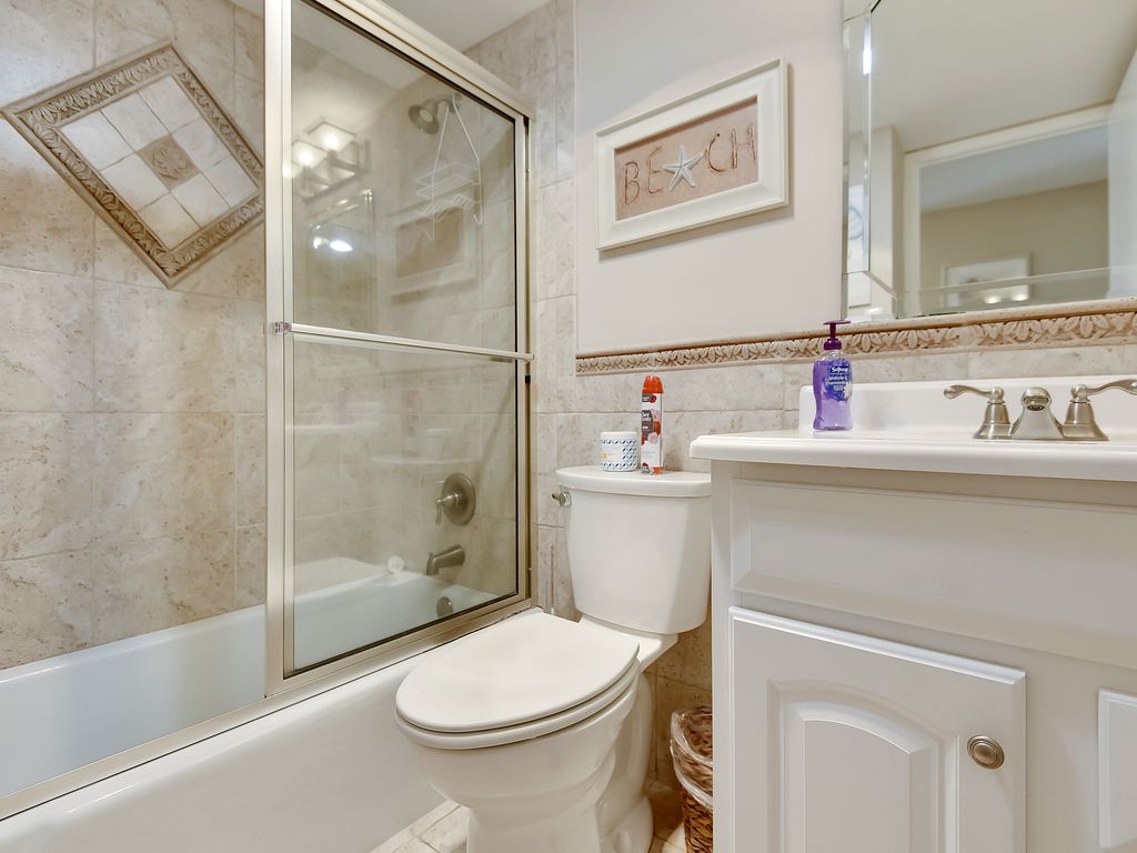 The guest bedroom includes two full beds, which allows you to fit up to four people comfortably. Just off the guest bedroom in the hallway is a private bathroom with a tub/shower. There are plenty of umbrellas and chairs in the unit, along with beach toys and (for a nominal charge) two beach bicycles located in front of the parking spot assigned to your condo.