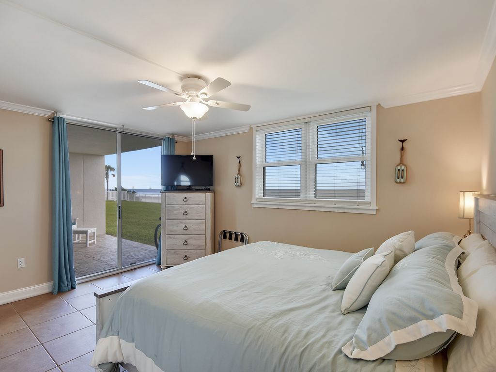 The master bedroom includes a king size bed, ceiling fan and a 37in SMART (Netflix, Hulu, Prime movies) HDMI TV and DVD player and a huge walk-in closet. Sliding glass doors in both the living room and master bedroom provide a beach-front view and access to the lanai deck, where a beautiful sunrise is yours to behold. The master bedroom also features a private bathroom and walk-in shower.