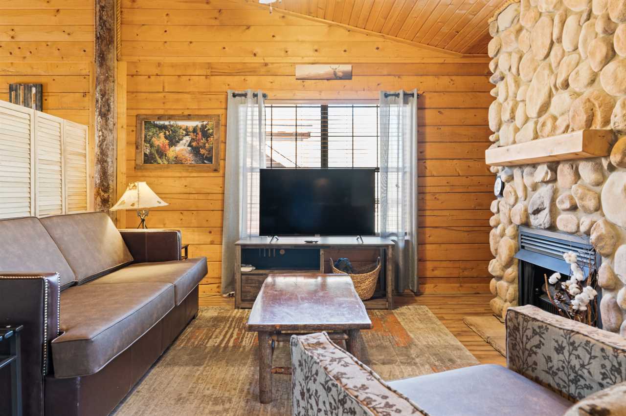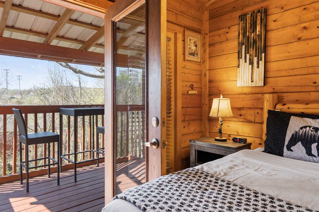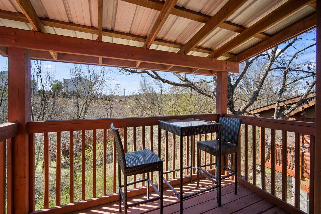 Welcome to your cozy and romantic studio-style cabin located in the heart of Branson, MO, just beside the Tanger Outlets and minutes away from the city's top shows and attractions. This cabin is the perfect spot for a private and relaxing getaway with your loved one. Upon entering the cabin, you will find a spacious and comfortable king-size bed, perfect for a great night's sleep after a day of exploring the city. The cabin also features a seasonal gas fireplace, perfect for snuggling up during the colder months. The full kitchen is equipped with everything you need to prepare a romantic meal for two, including a stove, oven, refrigerator, and microwave. You can enjoy your meal in the cozy dining area, or step outside onto your covered balcony to enjoy the fresh air and beautiful views. Cable TV and WiFi are available throughout the cabin, along with an in-unit washer and dryer. Guests also have access to a seasonal outdoor pool and can enjoy discounts on area shows, attractions, and rounds of golf at Thousand Hills.