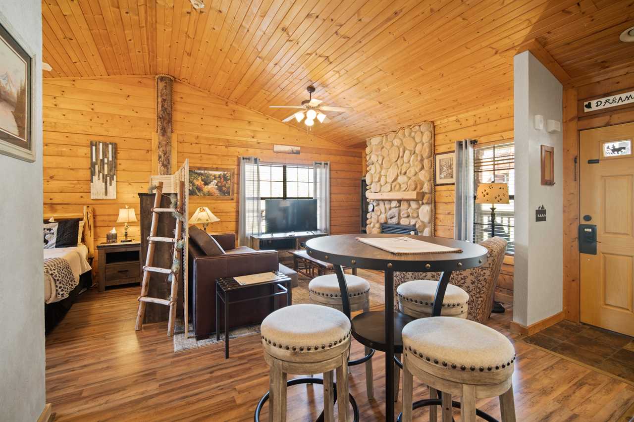 With its prime location, cozy atmosphere, and top-notch amenities, this studio-style cabin is the perfect choice for a romantic getaway in Branson, MO.