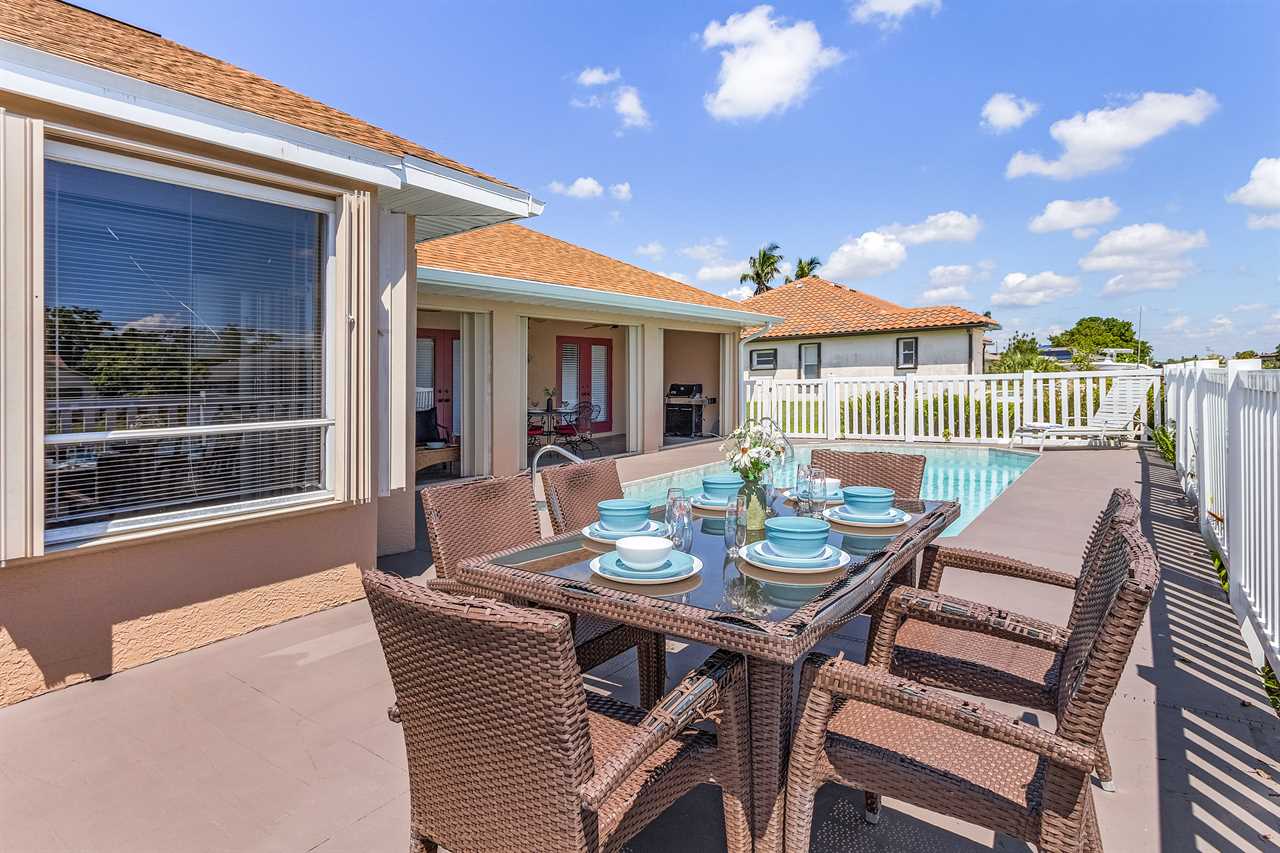 Heated Pool & Spacious Lanai: Dive into the heated pool or lounge poolside while soaking up the Florida sunshine. The large screened lanai is perfect for family meals, games, or evening cocktails overlooking the water.