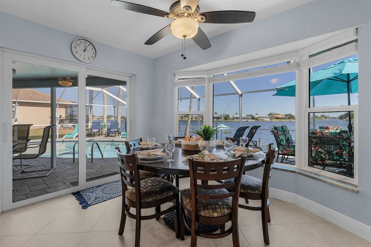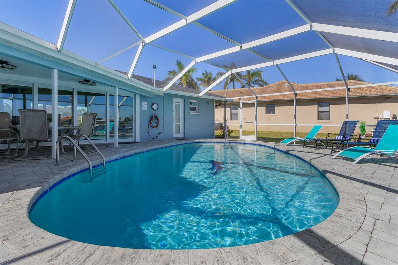 WHAT A VIEW of SHAMROCK LAKE! Home sits on the BEST FRESHWATER Canal fun for kayaking, fishing, fantastic outdoor entertainment space, and a heated pool!! Home comes equipped with beach chairs, umbrellas, and coolers for your day of fun in the sun!!! This spectacular home is located in a prime SE Cape Coral neighborhood close to shopping, restaurants, and local entertainment. Opening the front door, you will feel submersed into another world. This 3 Bedroom – 2 Bathroom villa with sleeping capabilities for 8 with queen-sized sleeper sofa - boasts just over 1700 sq ft, making Coral Palace the perfect Villa for your much-needed Southwest Florida vacation.