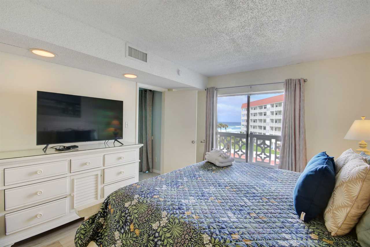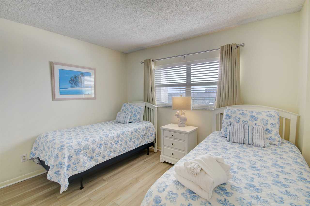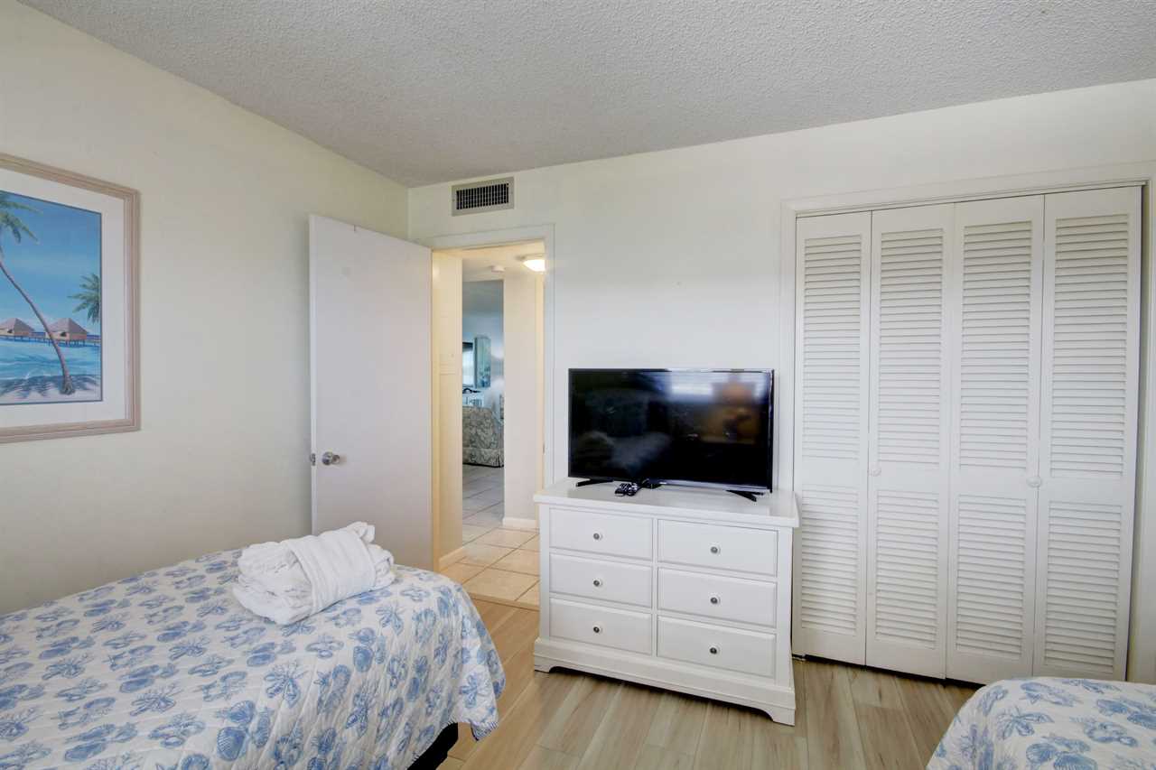 FREE BEACH SERVICE! This beautiful unit is located in building 3 on the 4th floor. Kitchen is newly renovated and living room has all new furniture. The living room and master bedrooms have beautiful views of the pool and Gulf of Mexico. The master bedroom has a king size bed and the guest bedroom has two twins. There is a super comfortable sleeper sofa with "cozy brand" mattress in the living room which will allow the unit to comfortably sleep 6. Unit has two full size bathrooms with the master bathroom having a tub/shower combo and the guest bathroom having a walk-in shower. The large balcony overlooks the pool and Gulf of Mexico. Enjoy cocktails or dinner while listening to the waves and watching the dolphins frolic in the surf. This unit has everything you need to enjoy a great vacation on the beach!