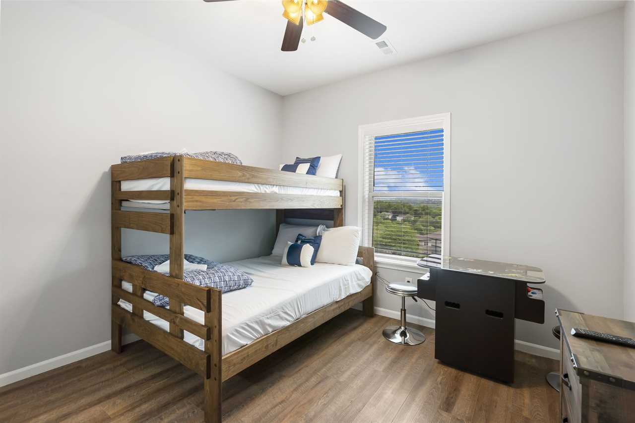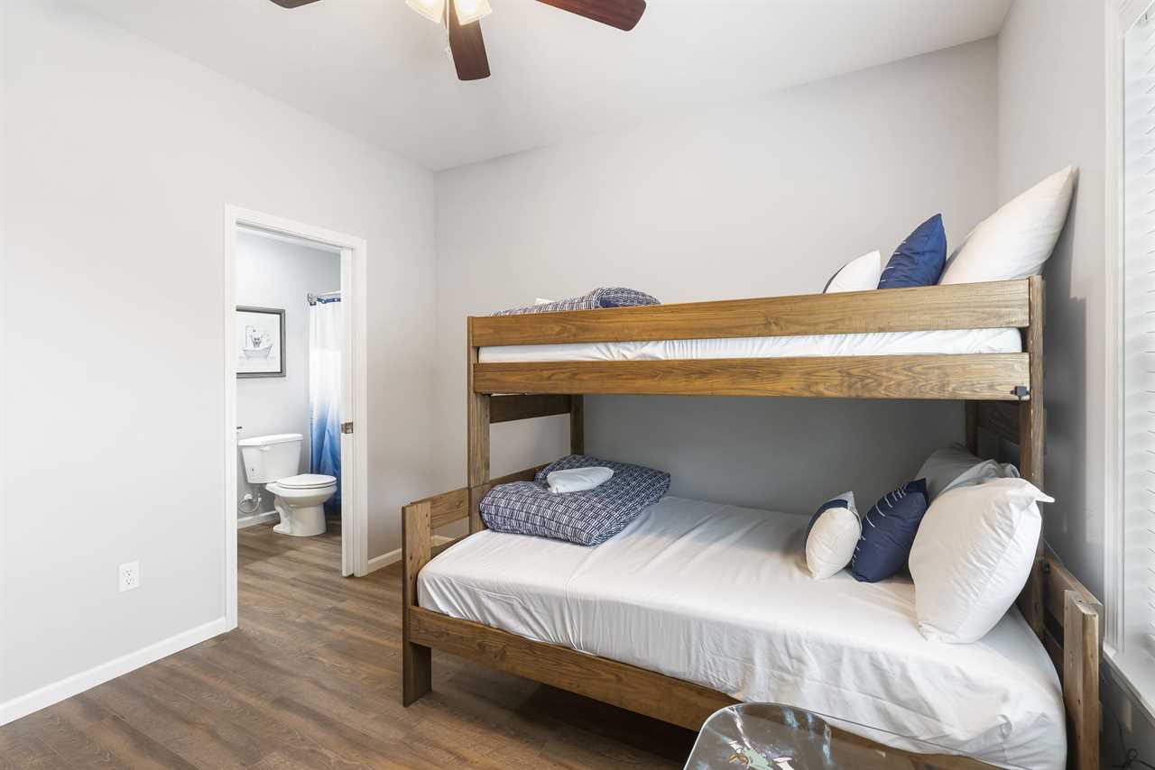 Bedroom 3: Twin over Full Bunk with a hallway bathroom with a tub/shower combo