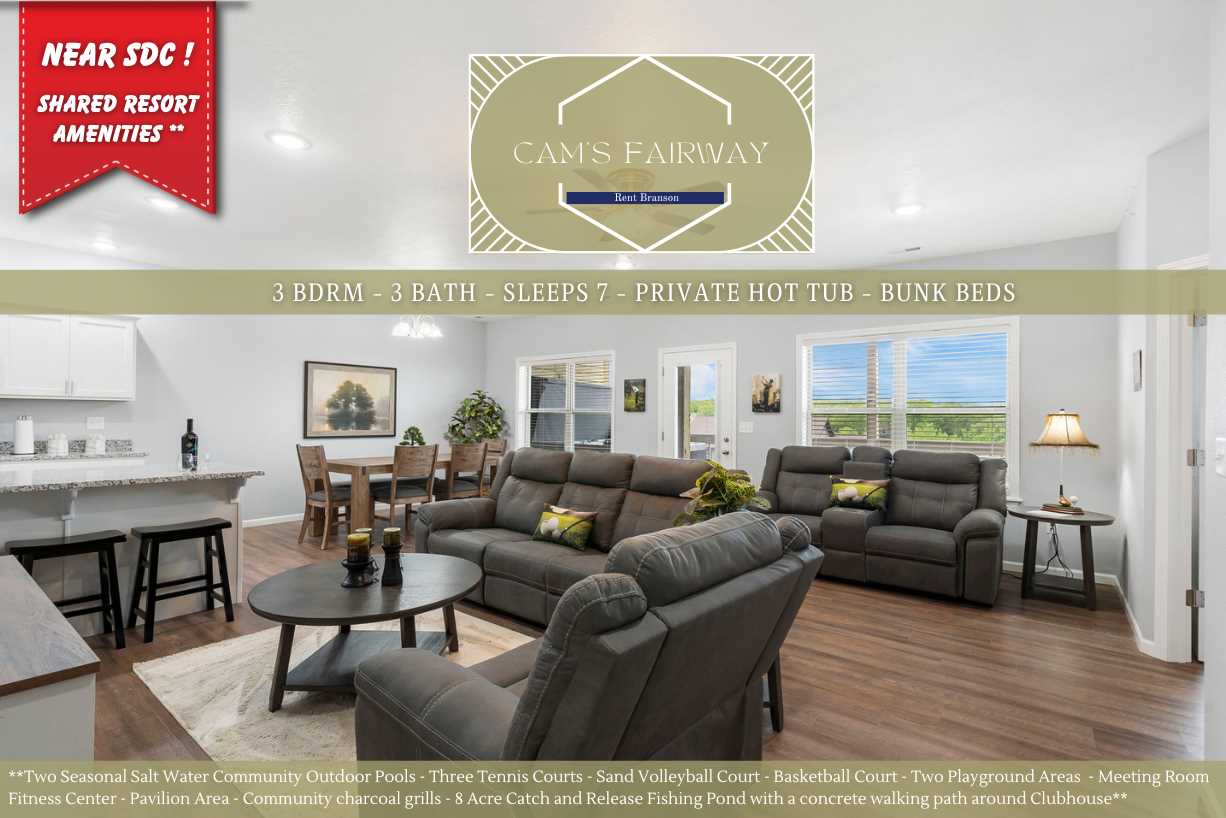 Welcome to Cam's Fairway, an exquisite three-bedroom condominium available for your next Branson vacation, situated in the beautiful Stonebridge community. This luxurious retreat offers a unique opportunity to experience the perfect blend of comfort, elegance, and convenience during your stay.