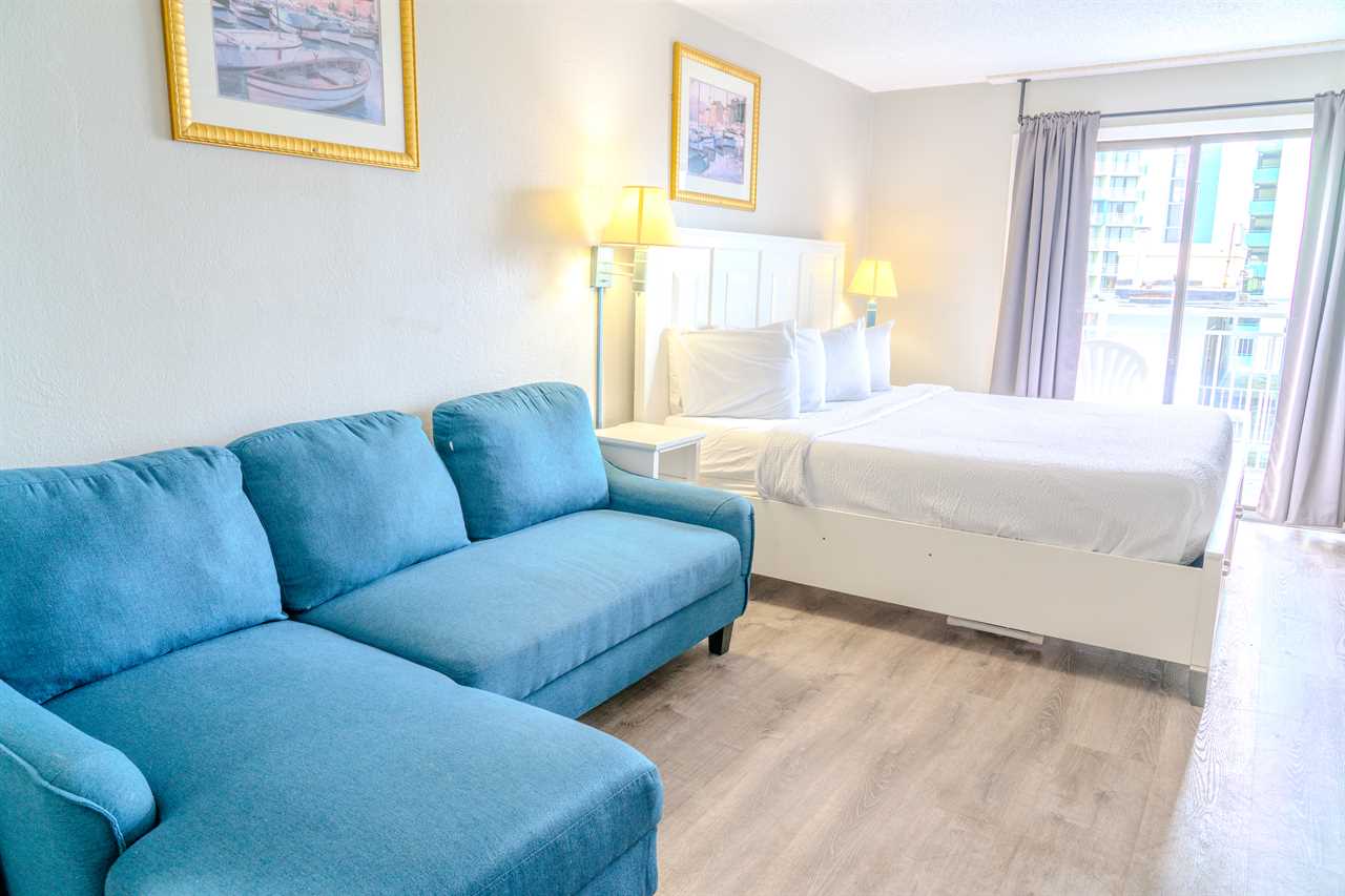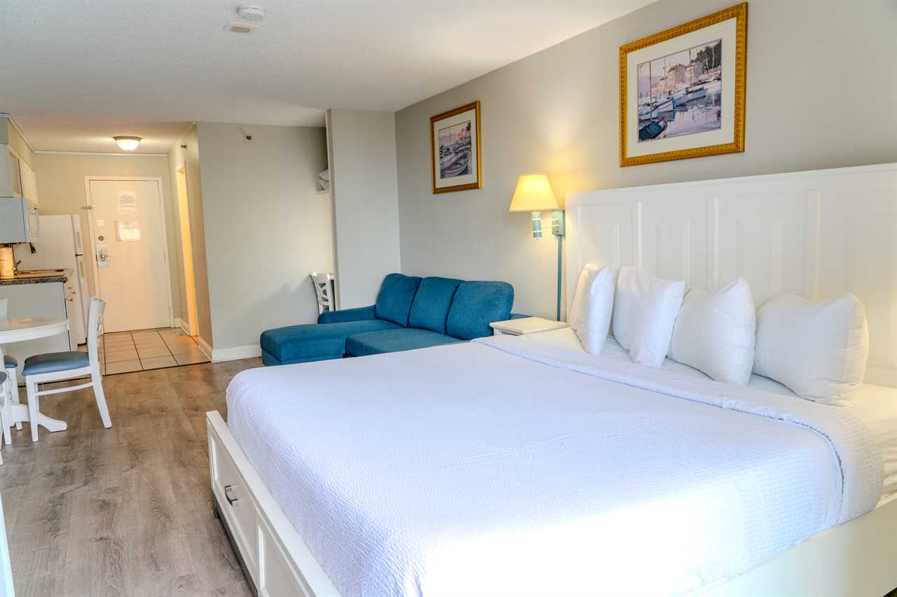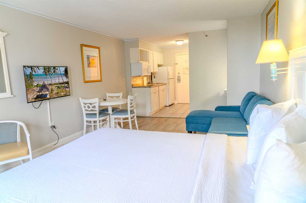 Step inside and enjoy a bright, cozy space with stunning views of the Atlantic Ocean right from your private balcony. The condo features a plush king bed and a full-size sleeper sofa, comfortably accommodating up to 4 guests. It's perfect for a couple, a small family, or a group of friends looking for a convenient, relaxing home base by the beach.