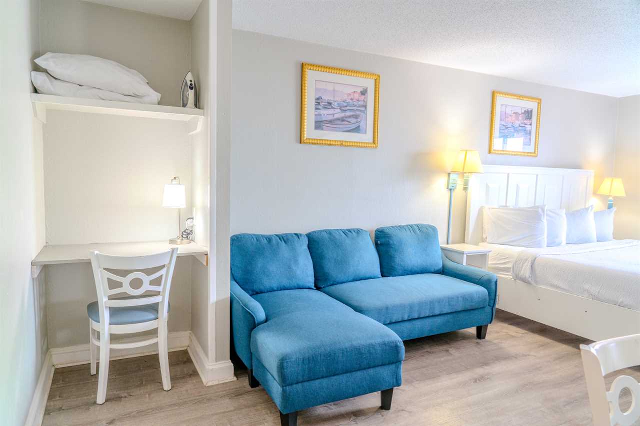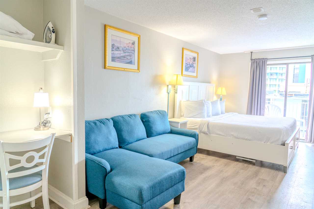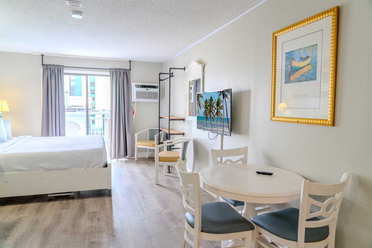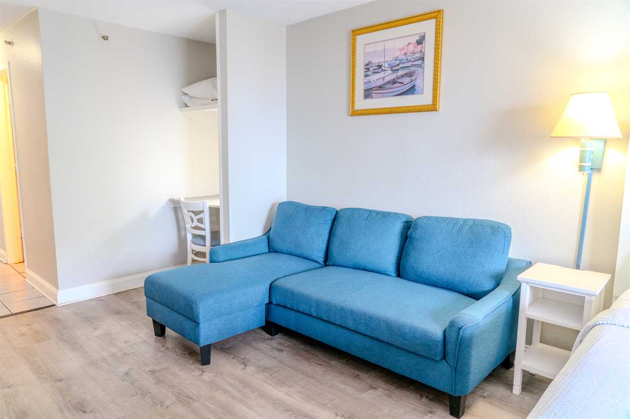 Step inside and enjoy a bright, cozy space with stunning views of the Atlantic Ocean right from your private balcony. The condo features a plush king bed and a full-size sleeper sofa, comfortably accommodating up to 4 guests. It's perfect for a couple, a small family, or a group of friends looking for a convenient, relaxing home base by the beach.