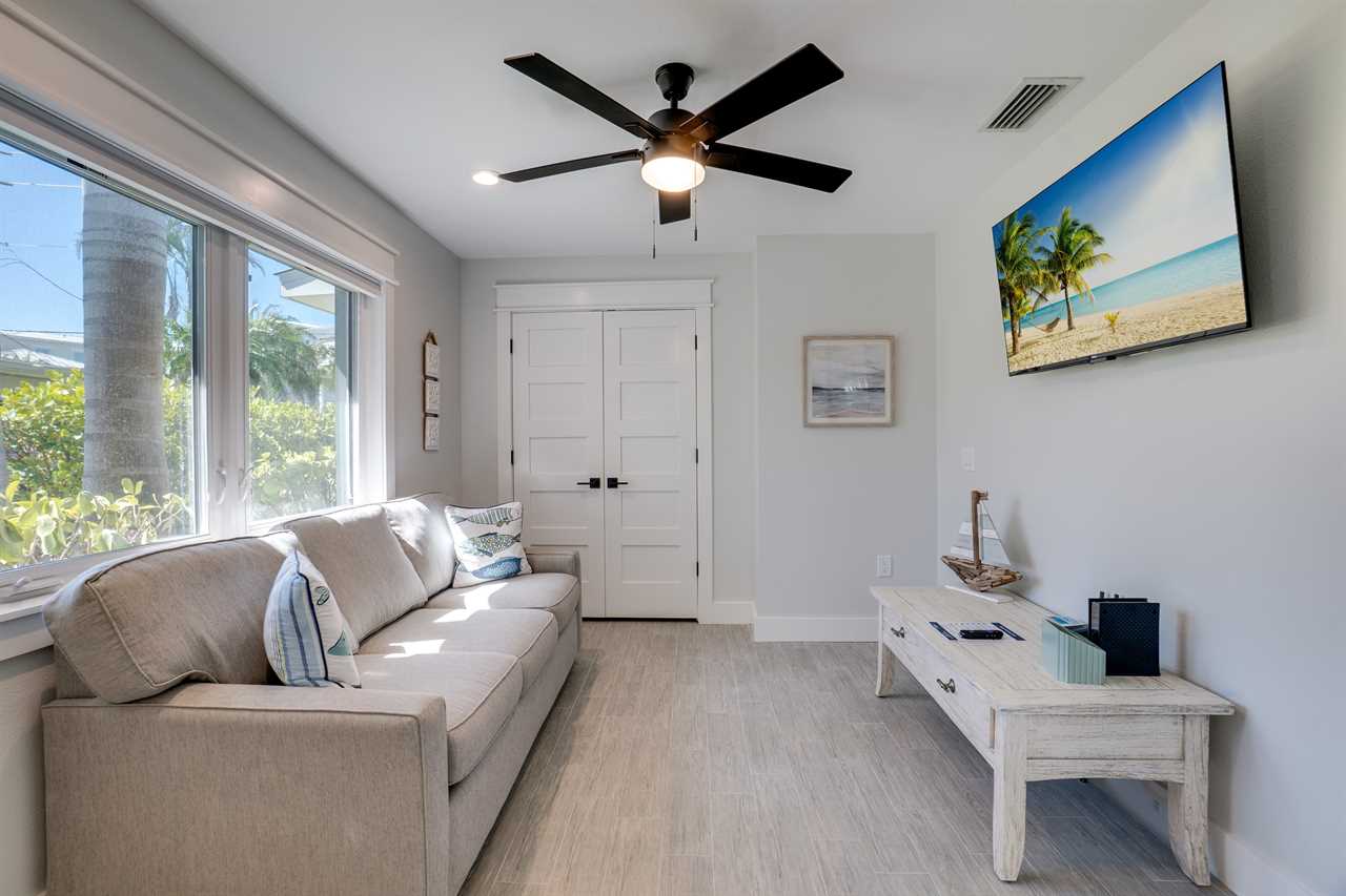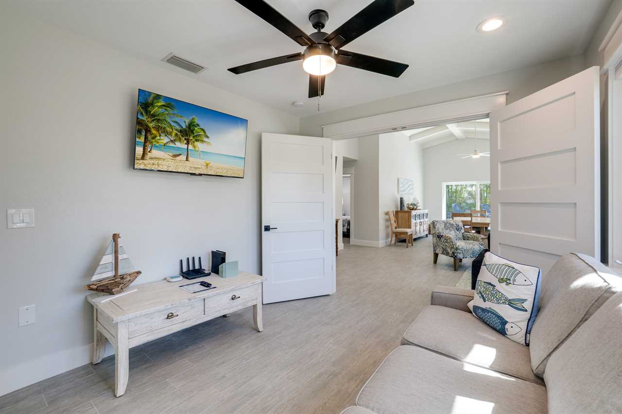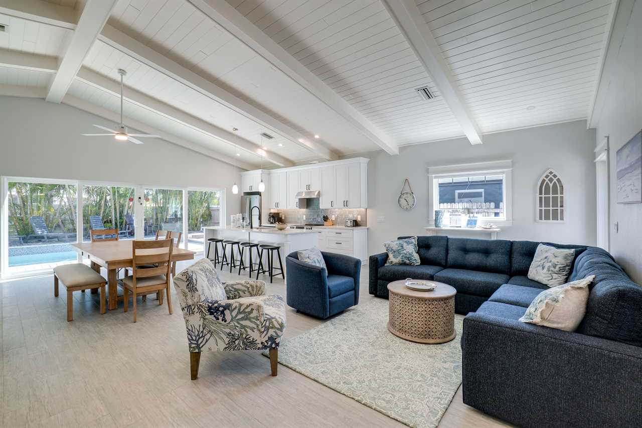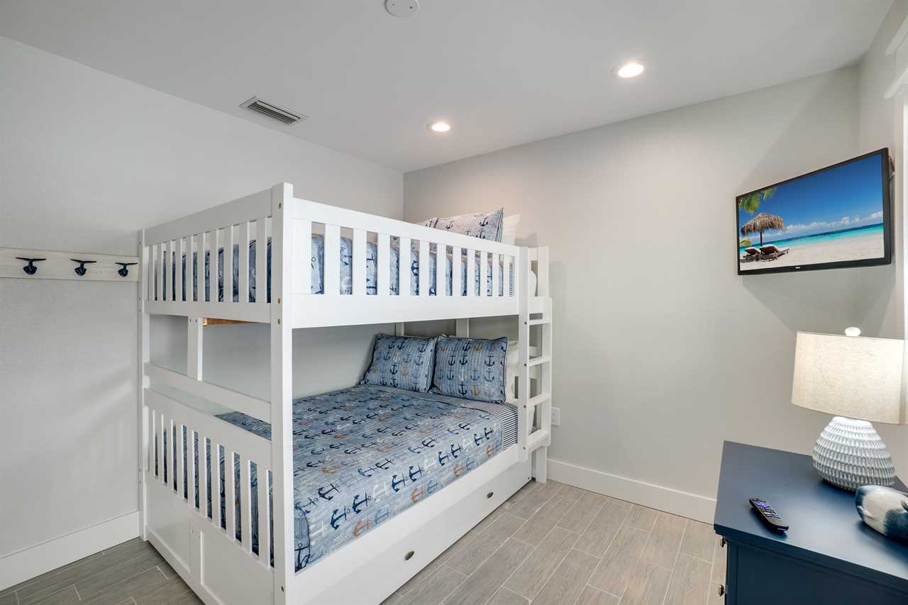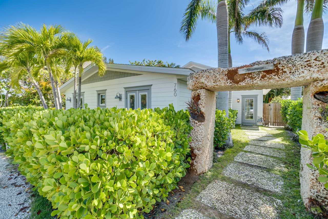 RECENTLY RENOVATED! Stonehenge is a massive stone monument in southern England. Here in the U.S. on Anna Maria Island, Stonehenge is a one floor cottage with a stone archway that welcomes you to the front door. This fully renovated 4 bedroom/3 bathroom cottage can accommodate 8 people. Located on a quiet street in Anna Maria, Stonehenge is about a 4 minute walk to the white sandy beaches of the Gulf of Mexico. Walk through the front door and view the wide sliding doors out to your own secluded backyard. Open-concept kitchen with stainless steel appliances and granite countertops allows you to hone in on your cooking skills. Plenty of seating at the island as well as around the dining room table. Open the sliding glass doors and you walk right into your private heated pool and dining/seating area. To gather at the end of the day, the living room has plenty of comfy seating as well as a queen sleeper sofa, The primary bedroom has a king bed, while bedroom 2 has a queen bed. Bedroom 3 features bunk beds with a twin trundle and bedroom 4 has two extra long twin beds. Full-size washer and dryer for your convenience too! Truly a place to call home while on vacation.