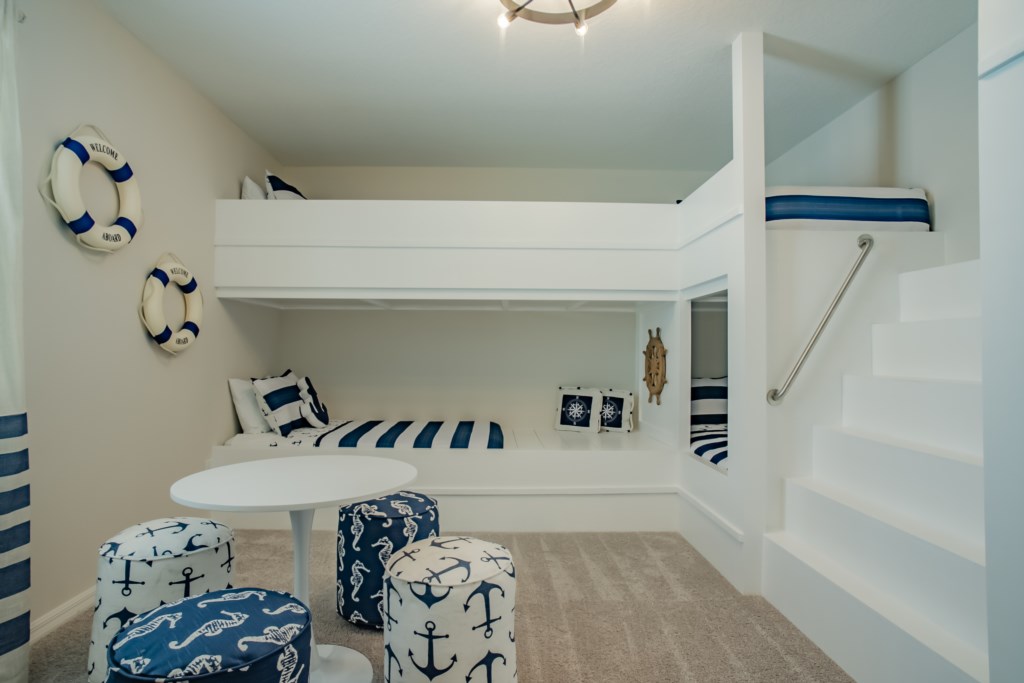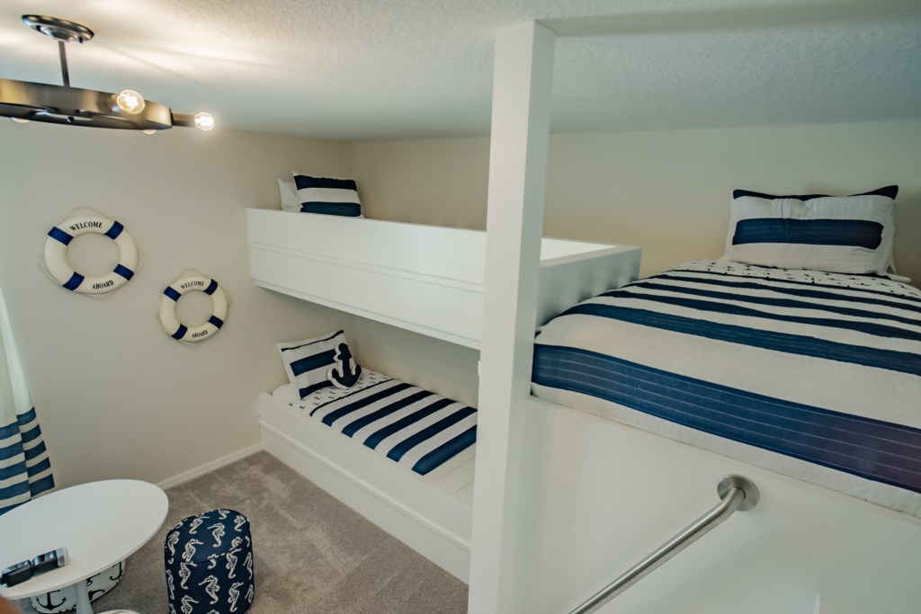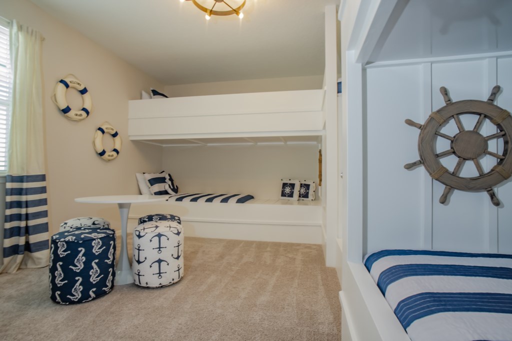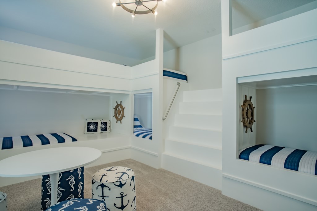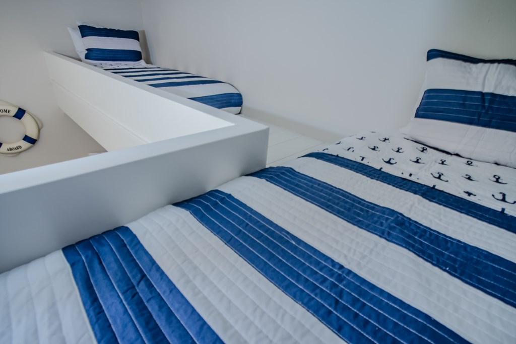 • Bedroom 3: 6 single beds (3 up + 3 down via ladder), sailor-themed