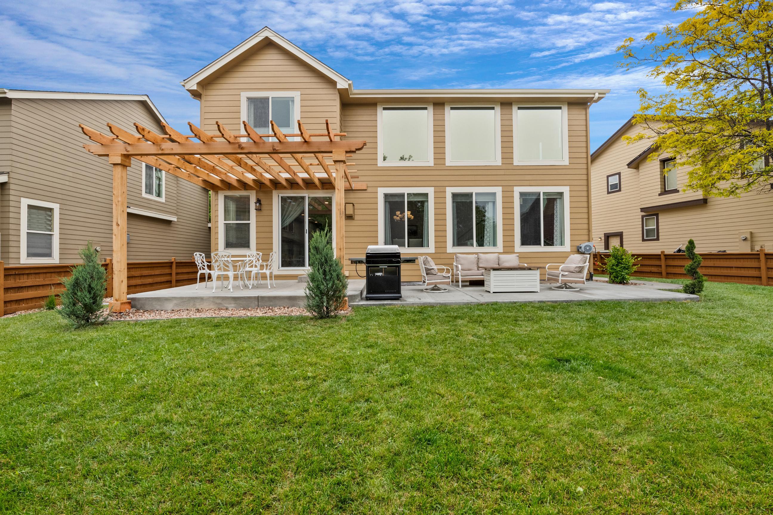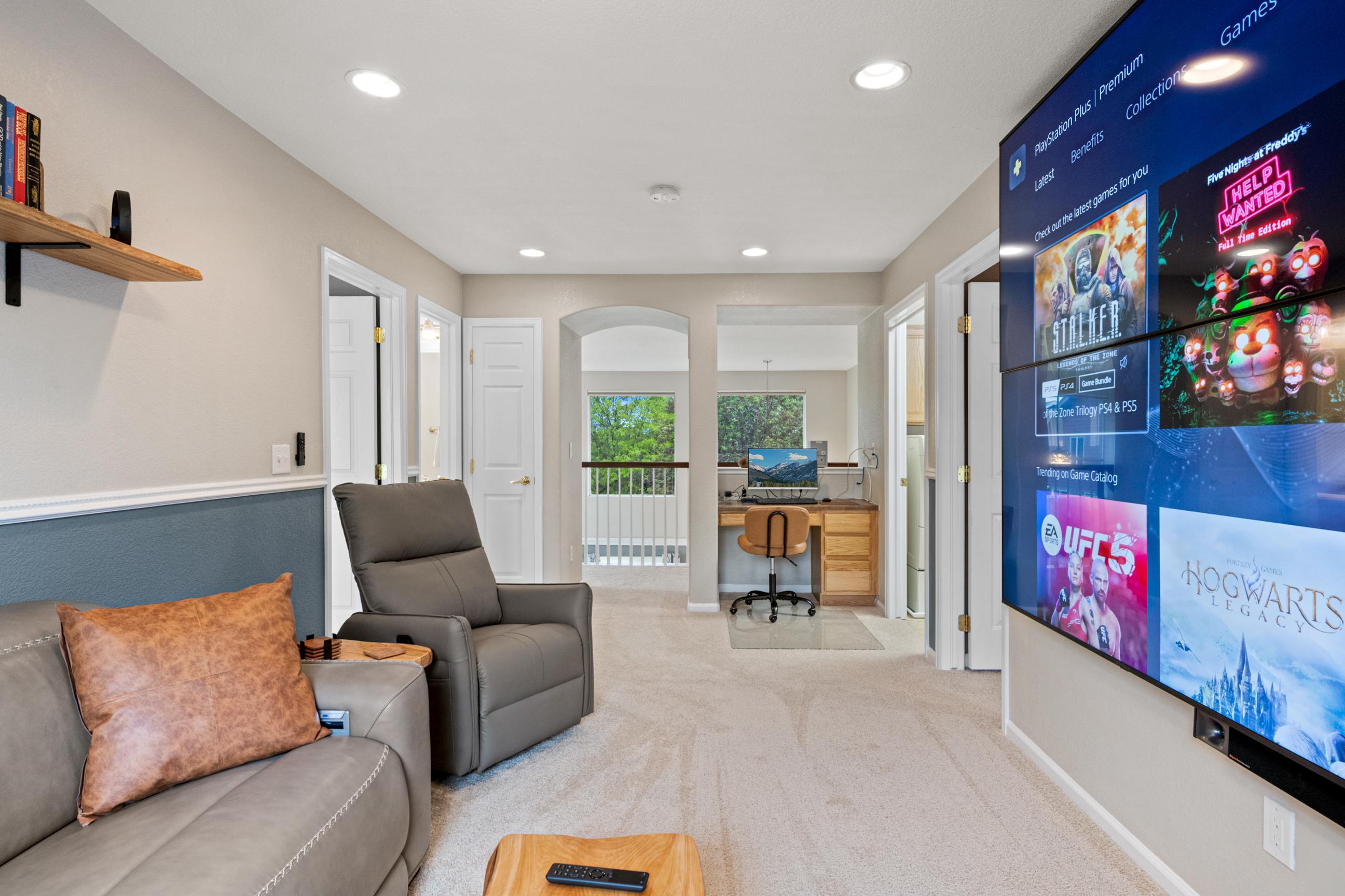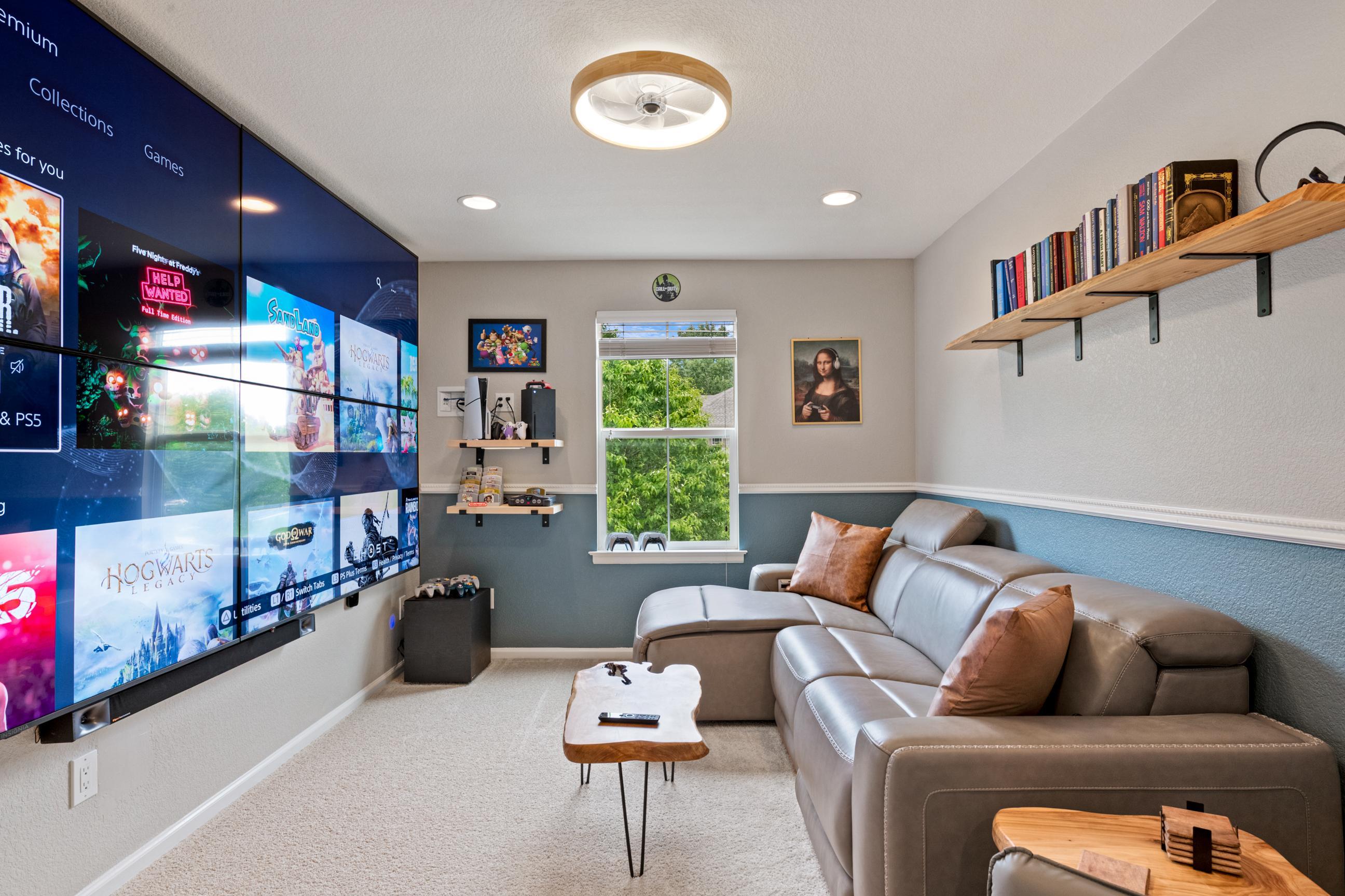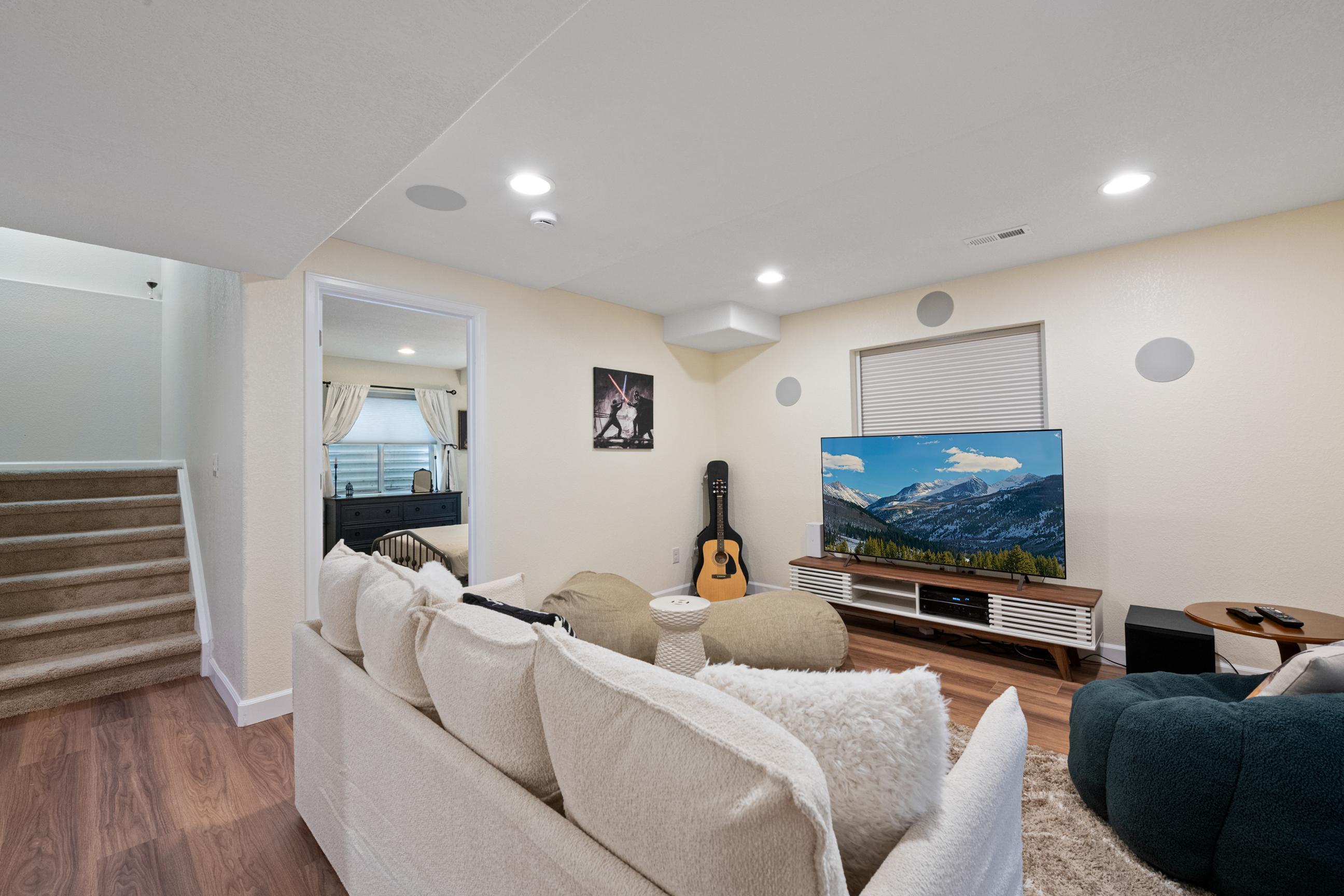This home features a stunning quadruple TV combination, providing 140 inches of immersive entertainment. Whether it's movie night, game day, or an epic gaming session, you’re covered. Choose your favorite console—PlayStation 5, Xbox Series X, or classic Nintendo 64—with plenty of preloaded games ready to go. The only question is, what will you play first? - Quiet Hours: 8:00 pm - 8:00 am. Noise detection device equipped. Do not cause noise exceeding 60 decibels outside during quiet hours. Feel at home in the elegant family room featuring vaulted ceilings and plenty of natural light. Gas fireplace. Fully equipped kitchen. Smart TV's throughout. Step outside to enjoy the large fenced-in backyard, complete with a pergola, outdoor seating, and BBQ grill—perfect for relaxing evenings. Get active in your in home workout room. Or enjoy a visit to the neighborhood coffee shop. You will have access to the entire home. - Noise decibel detection device located in family room. As well as back patio. - Quadruple TV combination provides 140 inches of immersive entertainment within the entertainment room. - PlayStation 5. - Xbox Series X. - Nintendo 64. - Preloaded games ready to play. - Apple TV 4K streaming device There is a smart TV in each bedroom & family room: - Oversized 140 inch Smart TV in the entertainment room. - 75 inch smart TV in family room. - 43 inch QLED smart TV near interior gas fireplace. - 65 inch OLED smart TV in basement entertainment room, features surround sound. - 55 inch smart TV in master bedroom. - 40 inch smart TV in each guest bedroom. - Hi-Speed Wi-Fi throughout, plus ethernet computer hook up. - 3 Separate computers. - 2 of 3 computers feature dual monitor screens. - Neighborhood Pool & Waterpark is open during Summer months. - Large fenced in backyard. - BBQ Grill. - Outdoor Pergola and furniture. - Exterior gas fireplace. - Dry Bar - Workout room includes a treadmill, indoor cycling bike, & adjustable weight dumbbells. - 2 Car Garage. - Interior Gas fireplace. - Guitar instrument. - Five bedrooms. - 1 California king size. - 1 Full size. - 2 queen size. - 1 murphy bed, queen size. - 1 Sofa bed, queen size. - 4 additional couches for sleeping if you choose. THINGS TO DO: - Barr Lake State Park (7 miles) Lake & wetlands with miles of nature trails, birdwatching, boating & fishing, plus a Nature Center. - Denver Zoo (15 miles) Sprawling facility with animal exhibits, shows & demonstrations, plus venues for eating & shopping. - Confluence Park (18 miles) Placid riverside park featuring benches, grassy lawns, biking & walking trails, plus a kayak run. - National Ballpark Museum (18 miles) Small hole in the wall with an incredible collection of baseball artifacts and memorabilia. - Wings Over the Rockies Air & Space Museum (19 miles) Wartime aircraft, WWII uniform collection & aviation art on the former site of Lowry Air Force Base. - Forney Museum of Transportation (19 miles) Vintage cars, locomotives, motorcycles & other exotic vehicles on display, with rotating exhibits. PLACES TO EAT: - Yum Asian Fusion Cuisine and Sushi (1 mile) Breezy eatery featuring Chinese, Japanese, Vietnamese & Thai food in a colorful, modern atmosphere. - State House (1.8 miles) Casual sports bar with a warehouse vibe featuring pub eats & mains, plus a patio & a fire pit. - Las Margs at Reunion (2 miles) Enjoy a wide selection of authentic, delicious Mexican dishes from tacos to salads and tortas to burritos. - Dion’s Pizza & more (2.2 miles) Casual Southwestern counter-serve chain, offering specialty pies, subs & salads, plus soft drinks.