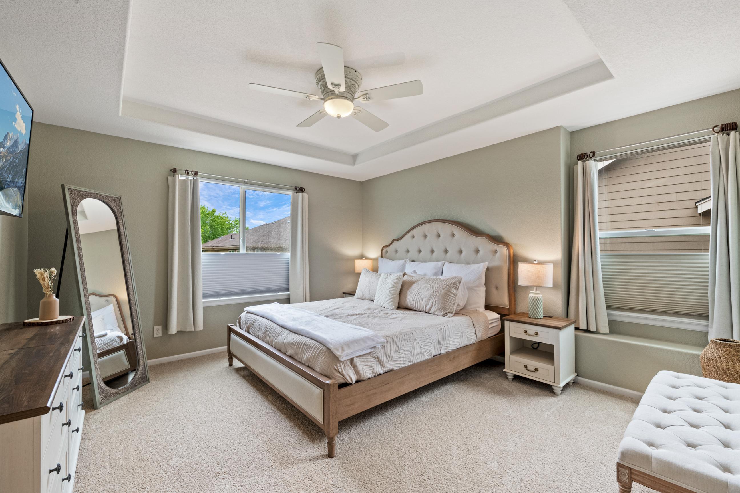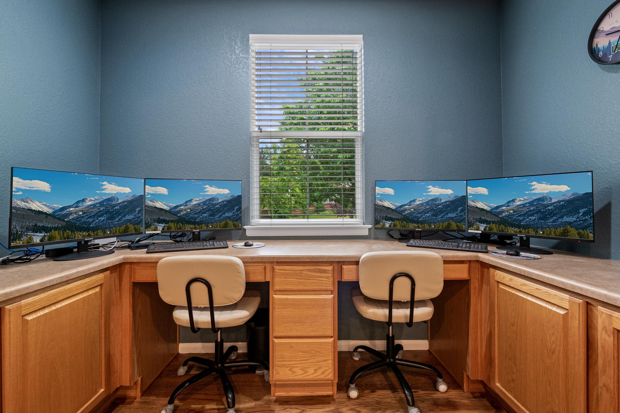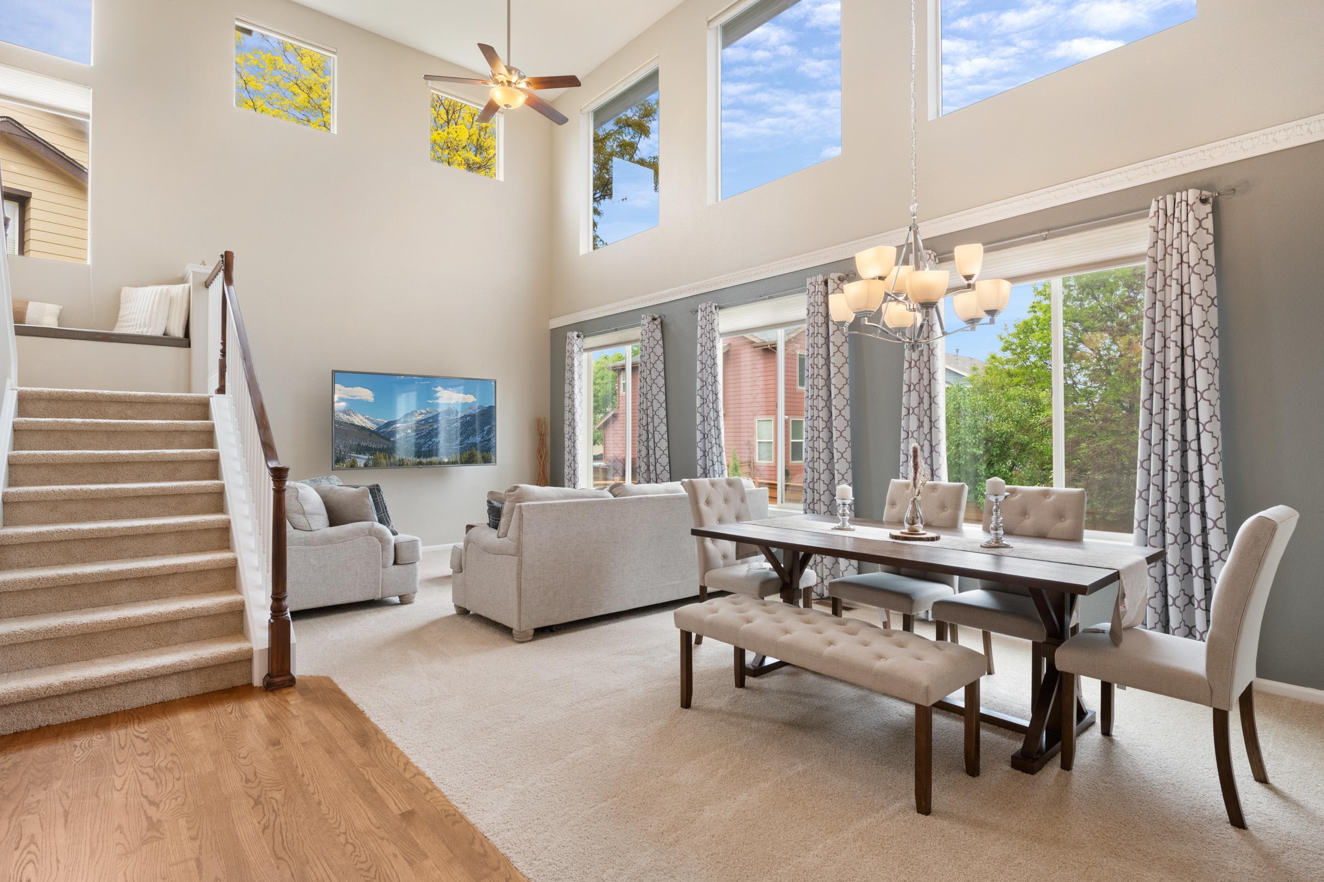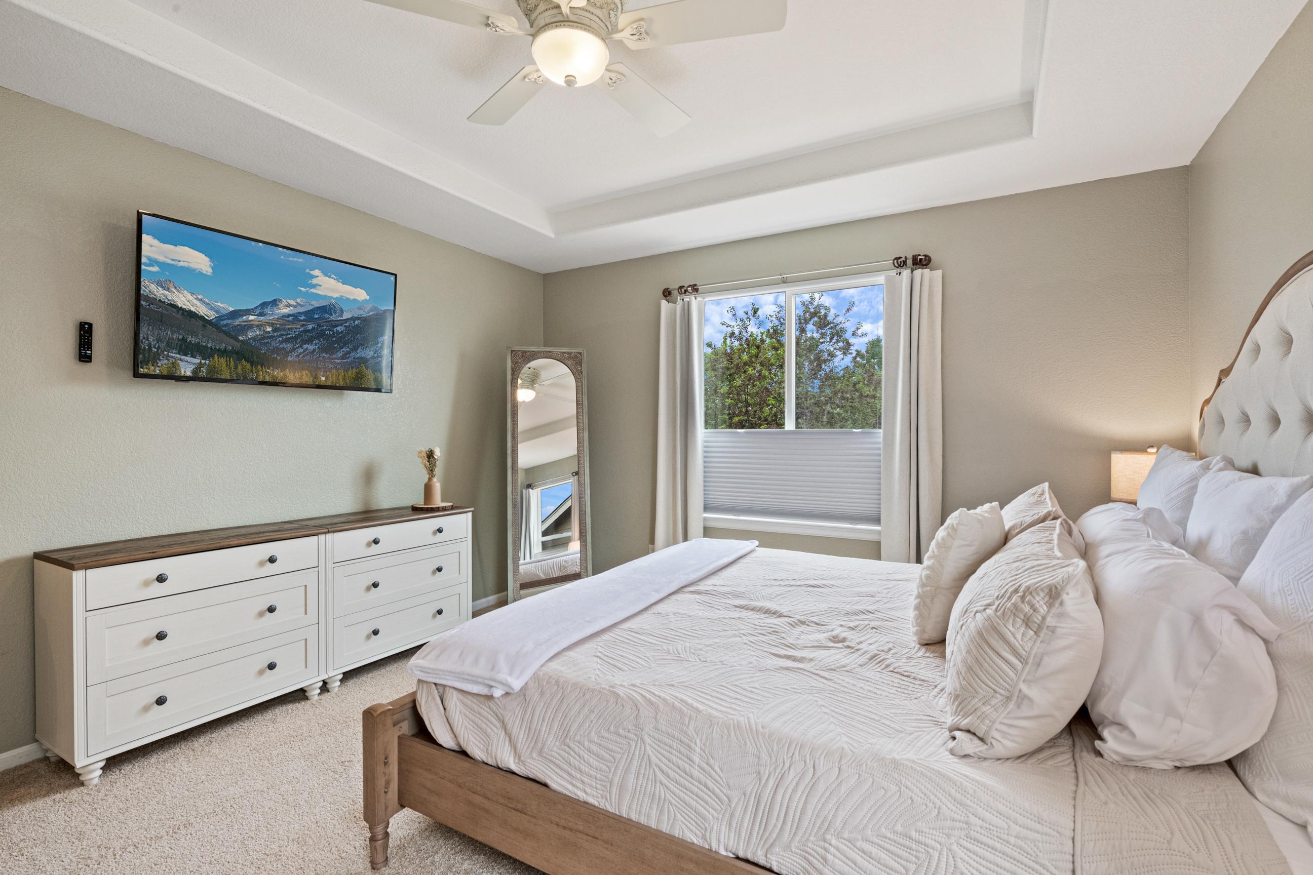 This home features a stunning quadruple TV combination, providing 140 inches of immersive entertainment. Whether it's movie night, game day, or an epic gaming session, you’re covered. Choose your favorite console—PlayStation 5, Xbox Series X, or classic Nintendo 64—with plenty of preloaded games ready to go. The only question is, what will you play first? - Quiet Hours: 8:00 pm - 8:00 am. Noise detection device equipped. Do not cause noise exceeding 60 decibels outside during quiet hours. Feel at home in the elegant family room featuring vaulted ceilings and plenty of natural light. Gas fireplace. Fully equipped kitchen. Smart TV's throughout. Step outside to enjoy the large fenced-in backyard, complete with a pergola, outdoor seating, and BBQ grill—perfect for relaxing evenings. Get active in your in home workout room. Or enjoy a visit to the neighborhood coffee shop. You will have access to the entire home. - Noise decibel detection device located in family room. As well as back patio. - Quadruple TV combination provides 140 inches of immersive entertainment within the entertainment room. - PlayStation 5. - Xbox Series X. - Nintendo 64. - Preloaded games ready to play. - Apple TV 4K streaming device There is a smart TV in each bedroom & family room: - Oversized 140 inch Smart TV in the entertainment room. - 75 inch smart TV in family room. - 43 inch QLED smart TV near interior gas fireplace. - 65 inch OLED smart TV in basement entertainment room, features surround sound. - 55 inch smart TV in master bedroom. - 40 inch smart TV in each guest bedroom. - Hi-Speed Wi-Fi throughout, plus ethernet computer hook up. - 3 Separate computers. - 2 of 3 computers feature dual monitor screens. - Neighborhood Pool & Waterpark is open during Summer months. - Large fenced in backyard. - BBQ Grill. - Outdoor Pergola and furniture. - Exterior gas fireplace. - Dry Bar - Workout room includes a treadmill, indoor cycling bike, & adjustable weight dumbbells. - 2 Car Garage. - Interior Gas fireplace. - Guitar instrument. - Five bedrooms. - 1 California king size. - 1 Full size. - 2 queen size. - 1 murphy bed, queen size. - 1 Sofa bed, queen size. - 4 additional couches for sleeping if you choose. THINGS TO DO: - Barr Lake State Park (7 miles) Lake & wetlands with miles of nature trails, birdwatching, boating & fishing, plus a Nature Center. - Denver Zoo (15 miles) Sprawling facility with animal exhibits, shows & demonstrations, plus venues for eating & shopping. - Confluence Park (18 miles) Placid riverside park featuring benches, grassy lawns, biking & walking trails, plus a kayak run. - National Ballpark Museum (18 miles) Small hole in the wall with an incredible collection of baseball artifacts and memorabilia. - Wings Over the Rockies Air & Space Museum (19 miles) Wartime aircraft, WWII uniform collection & aviation art on the former site of Lowry Air Force Base. - Forney Museum of Transportation (19 miles) Vintage cars, locomotives, motorcycles & other exotic vehicles on display, with rotating exhibits. PLACES TO EAT: - Yum Asian Fusion Cuisine and Sushi (1 mile) Breezy eatery featuring Chinese, Japanese, Vietnamese & Thai food in a colorful, modern atmosphere. - State House (1.8 miles) Casual sports bar with a warehouse vibe featuring pub eats & mains, plus a patio & a fire pit. - Las Margs at Reunion (2 miles) Enjoy a wide selection of authentic, delicious Mexican dishes from tacos to salads and tortas to burritos. - Dion’s Pizza & more (2.2 miles) Casual Southwestern counter-serve chain, offering specialty pies, subs & salads, plus soft drinks.